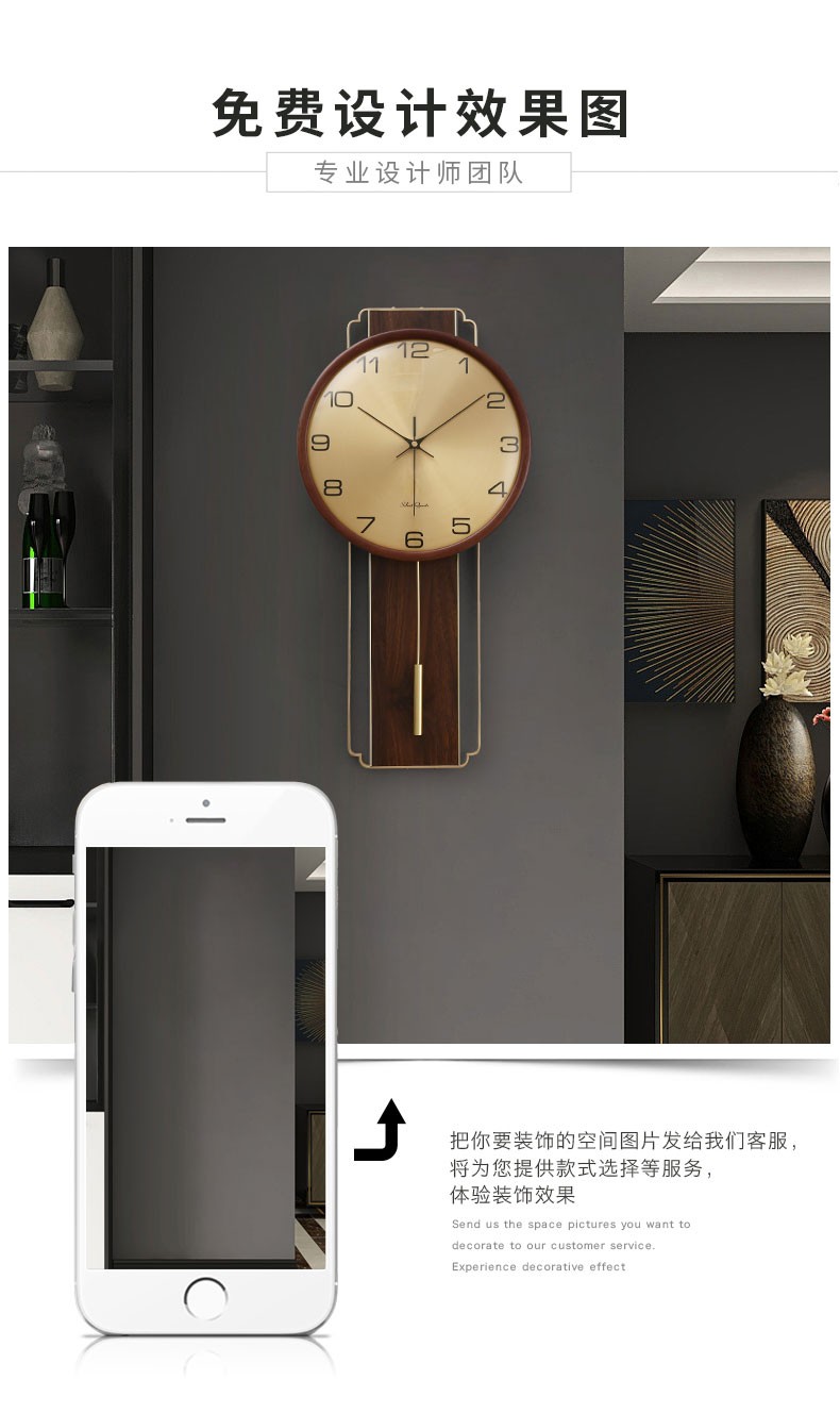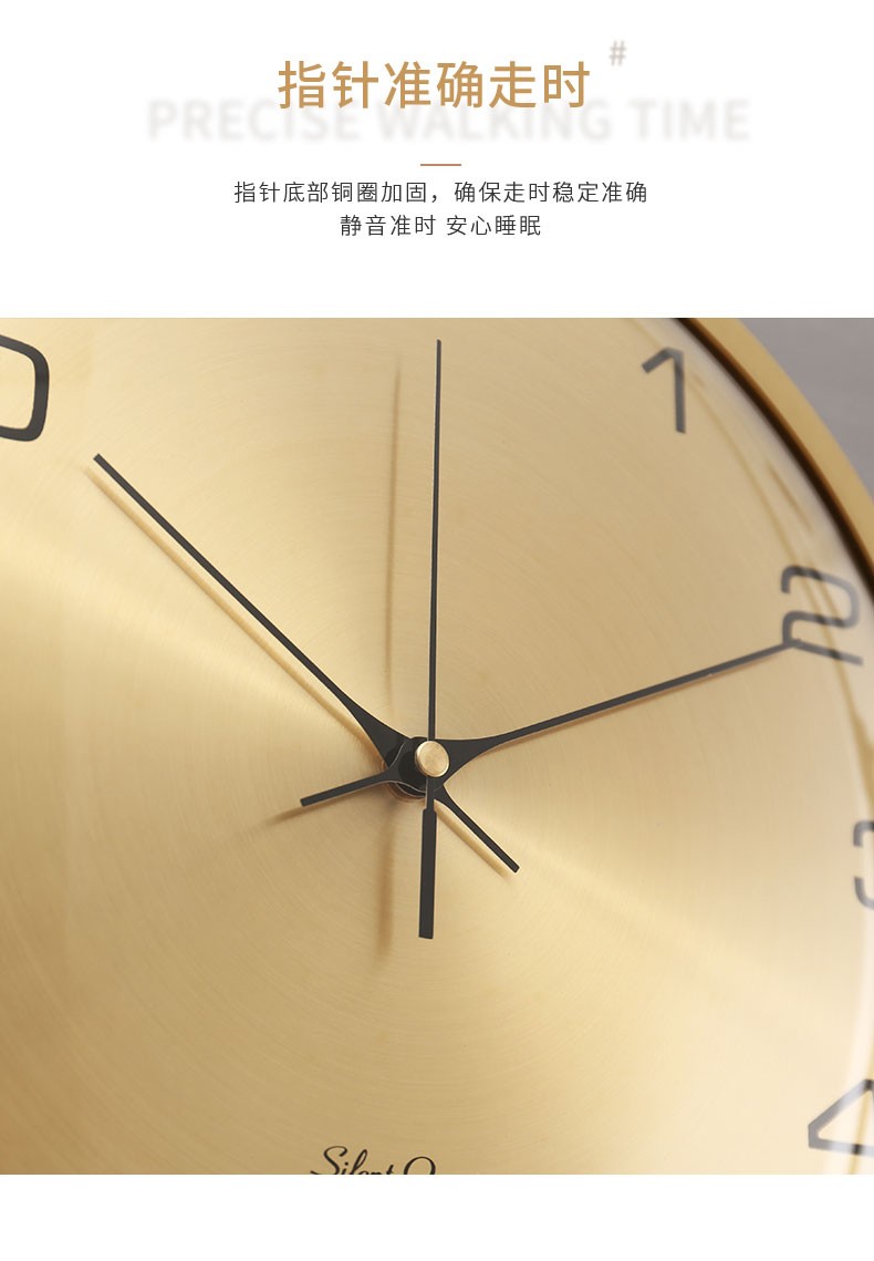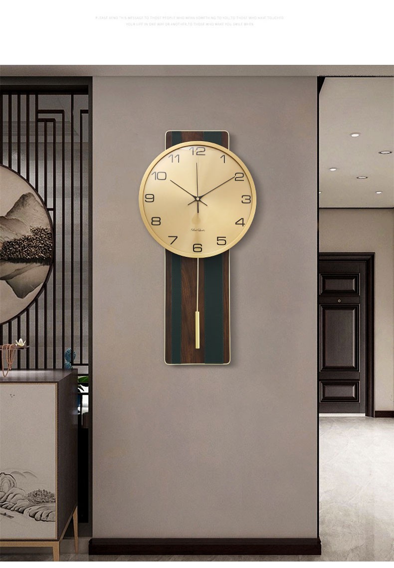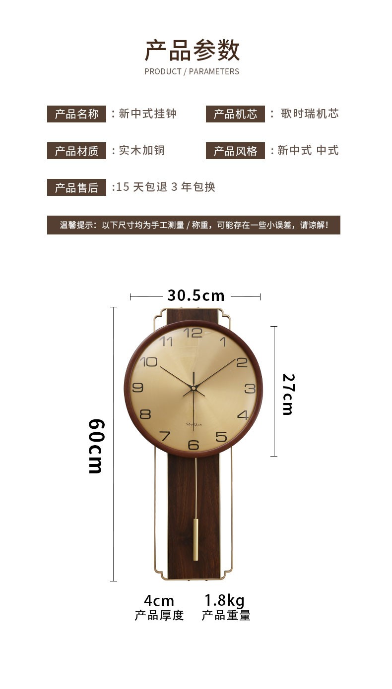 Seven Seconds Impression Seven New Chinese Style Solid Wood Light Luxury Wall Clock Living Room Fashion Wall-Mounted Silent Clock Home Simple and Atmospheric Decorative Quartz Clock Copper Clock Frame with Copper Frame - Style 4