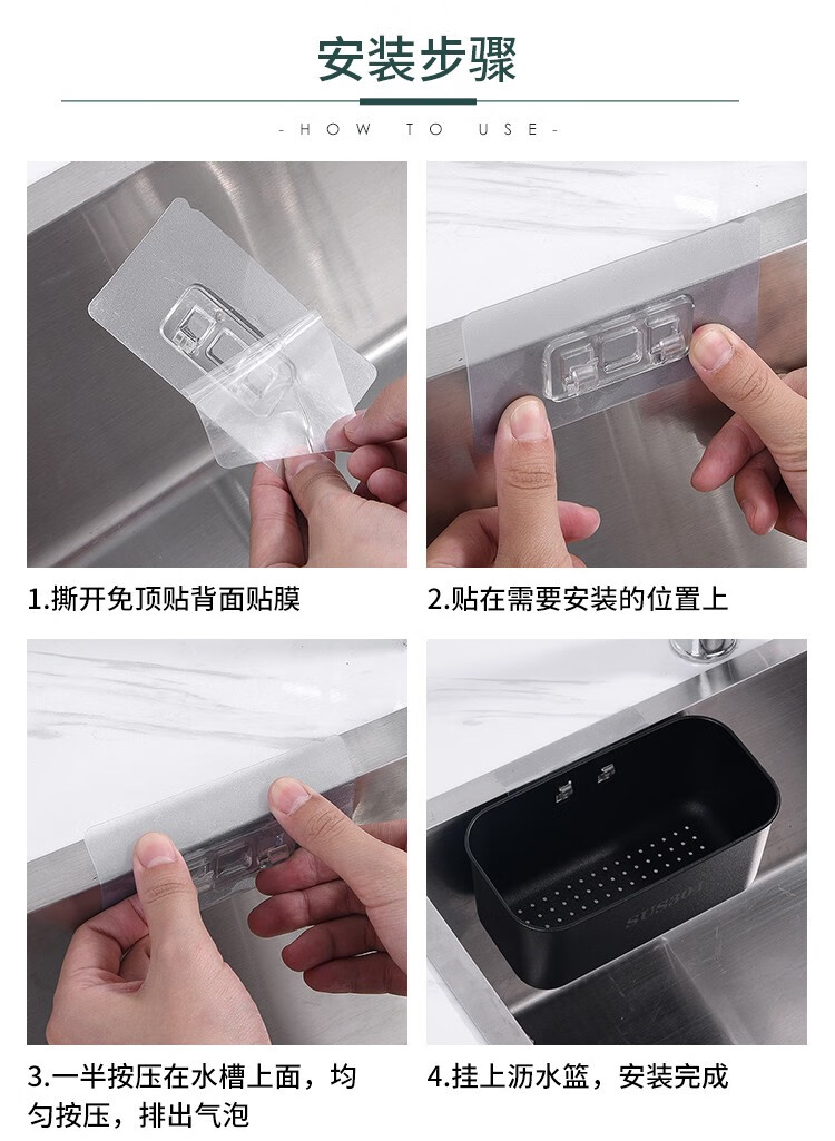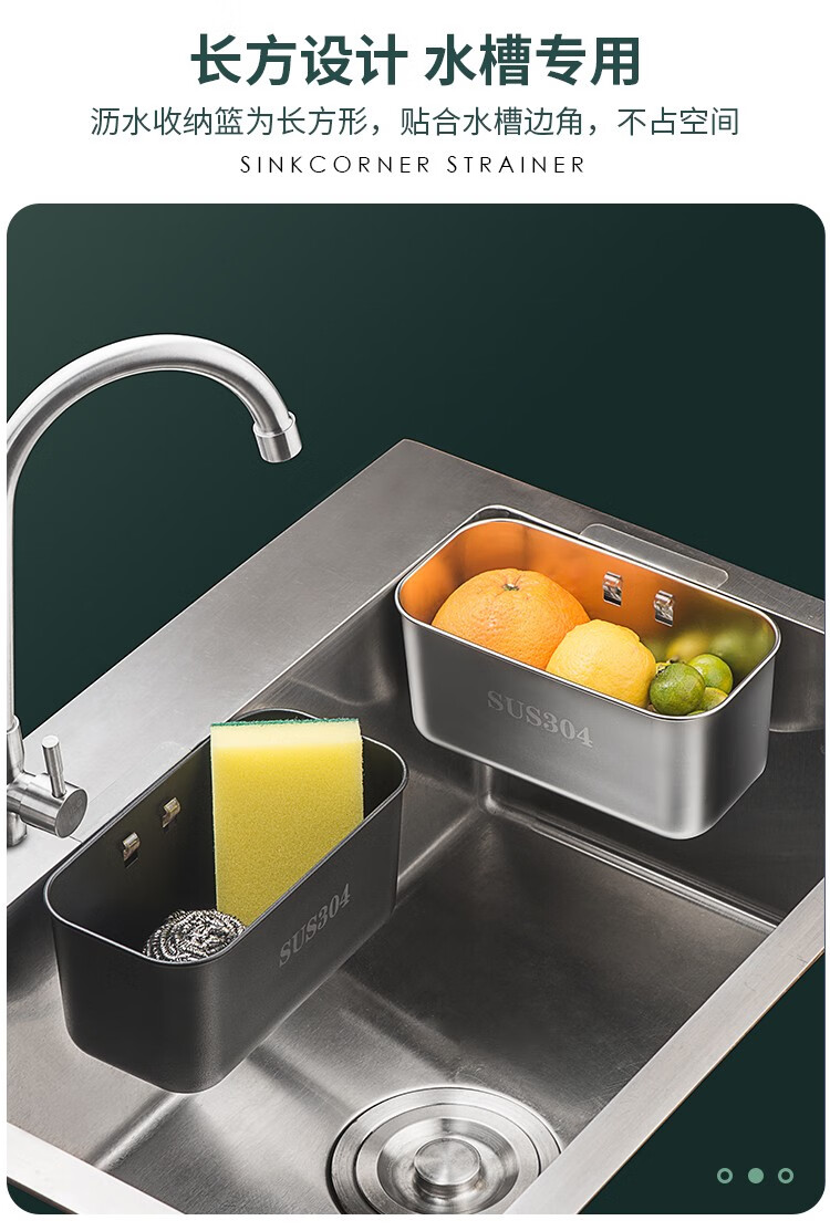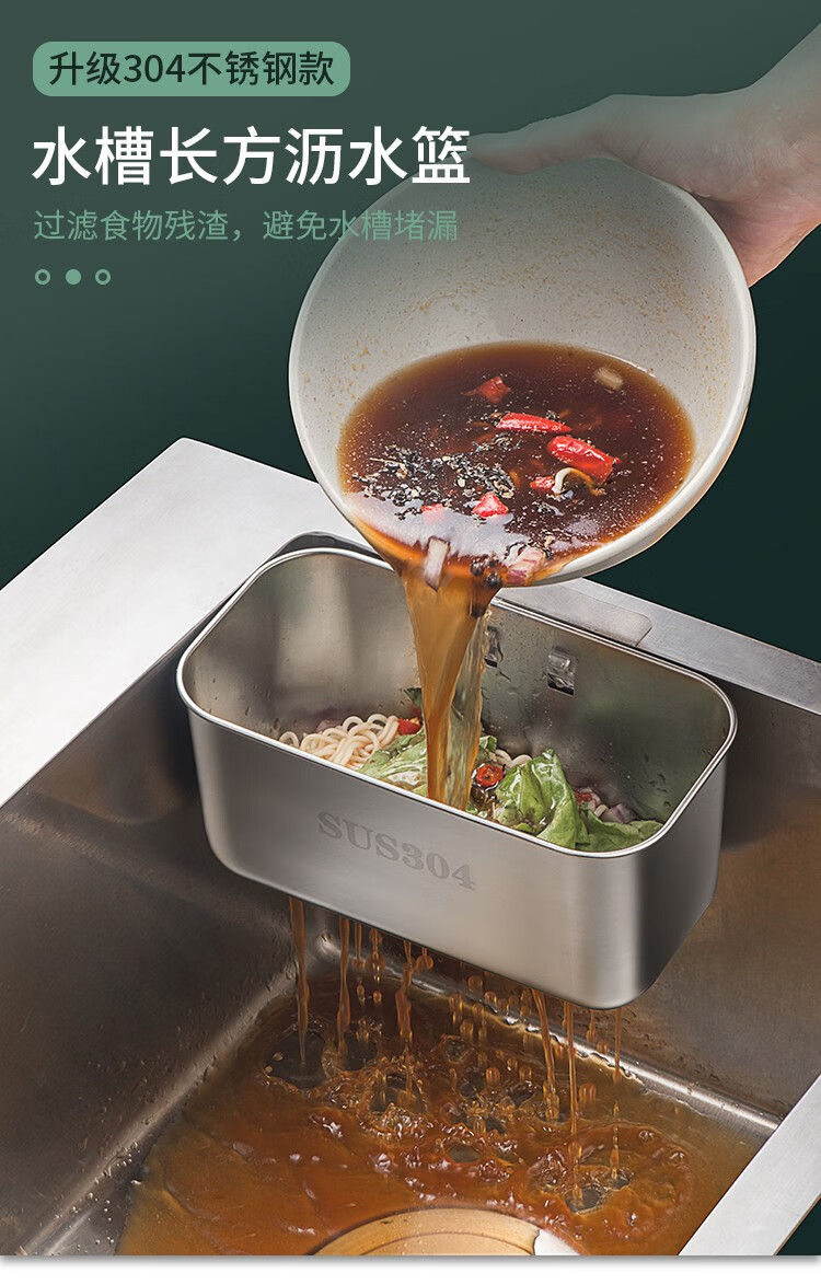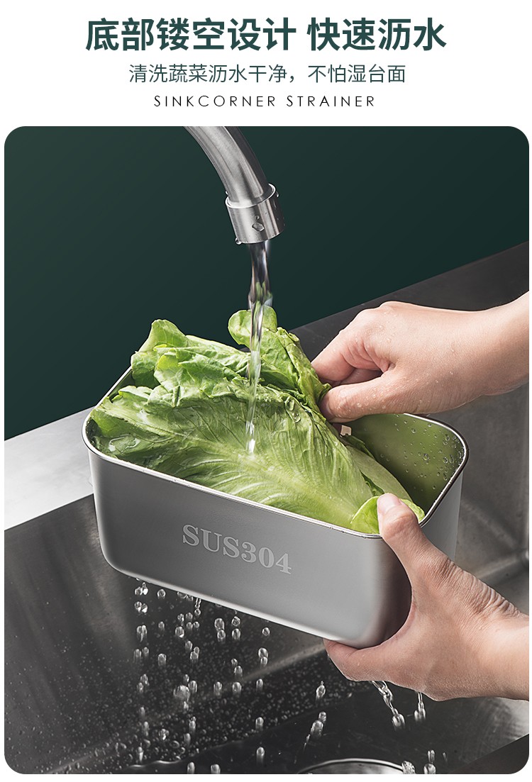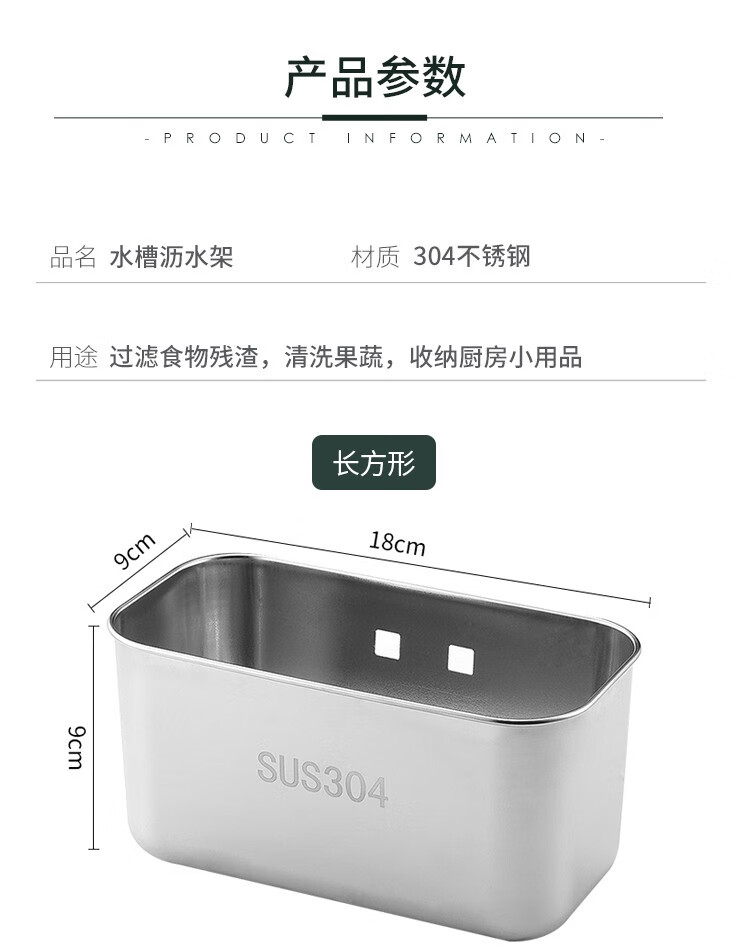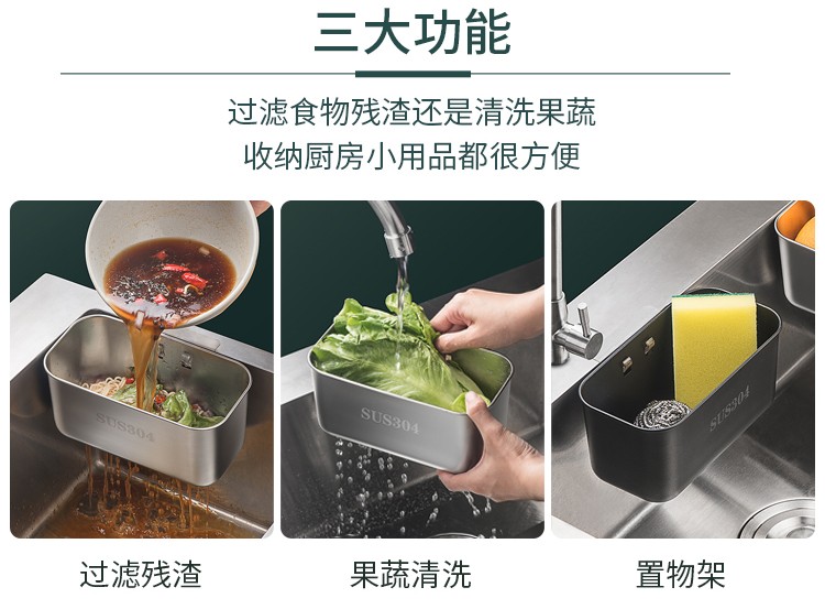 Lan Ai sink drain basket garbage filter 304 stainless steel drain leftovers suction cup rag storage hanging basket 304 stainless steel natural color rectangular drain rack