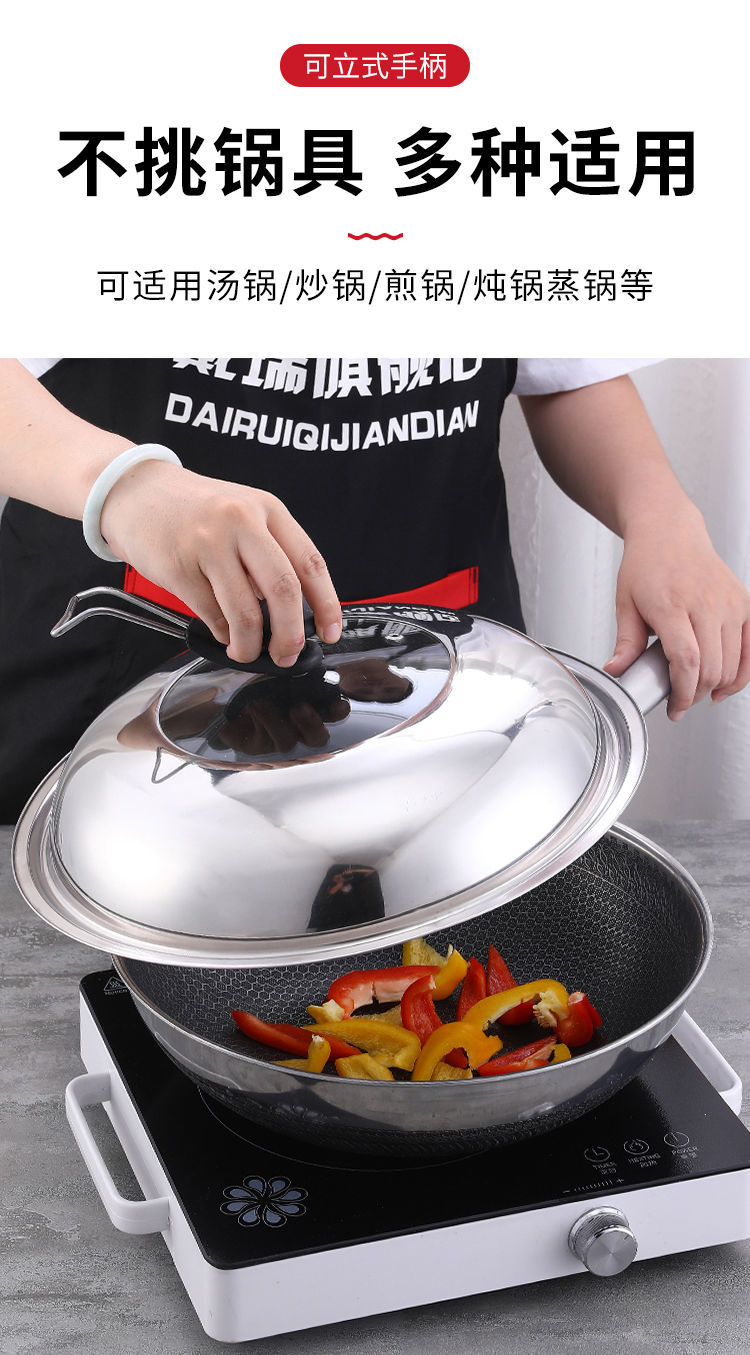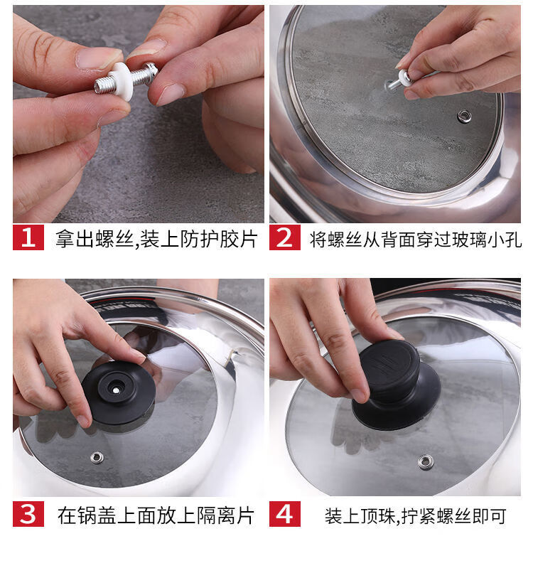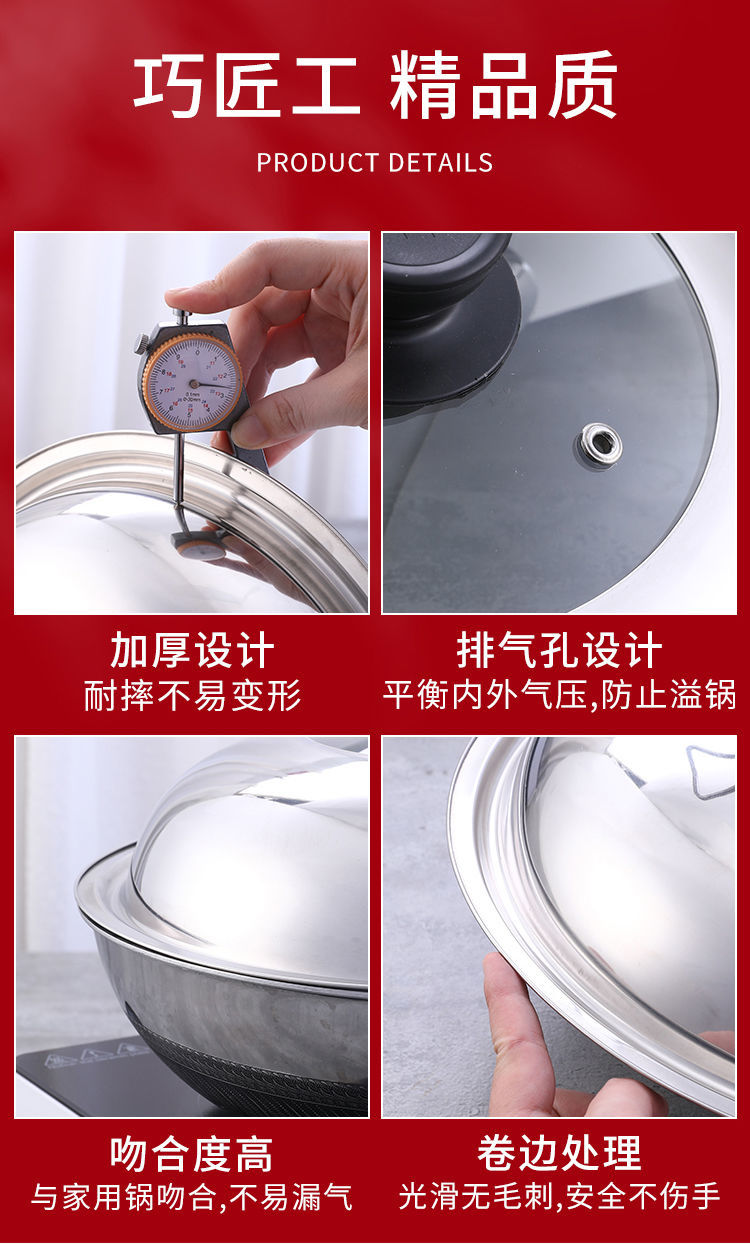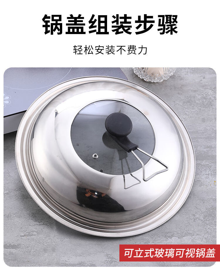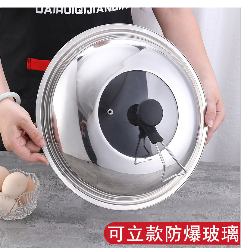 Kaiyao stainless steel pot lid, universal small pot lid for cooking pot, household tempered glass pot lid, high temperature resistance for cooking, glass-free version, suitable for inner diameter 31.8-33, lid 34cm