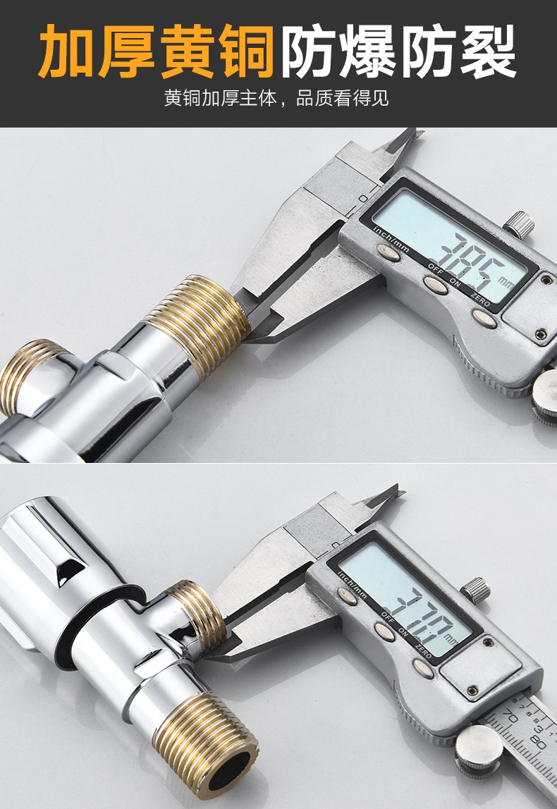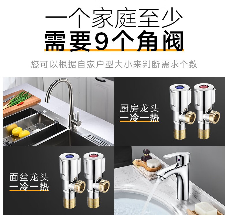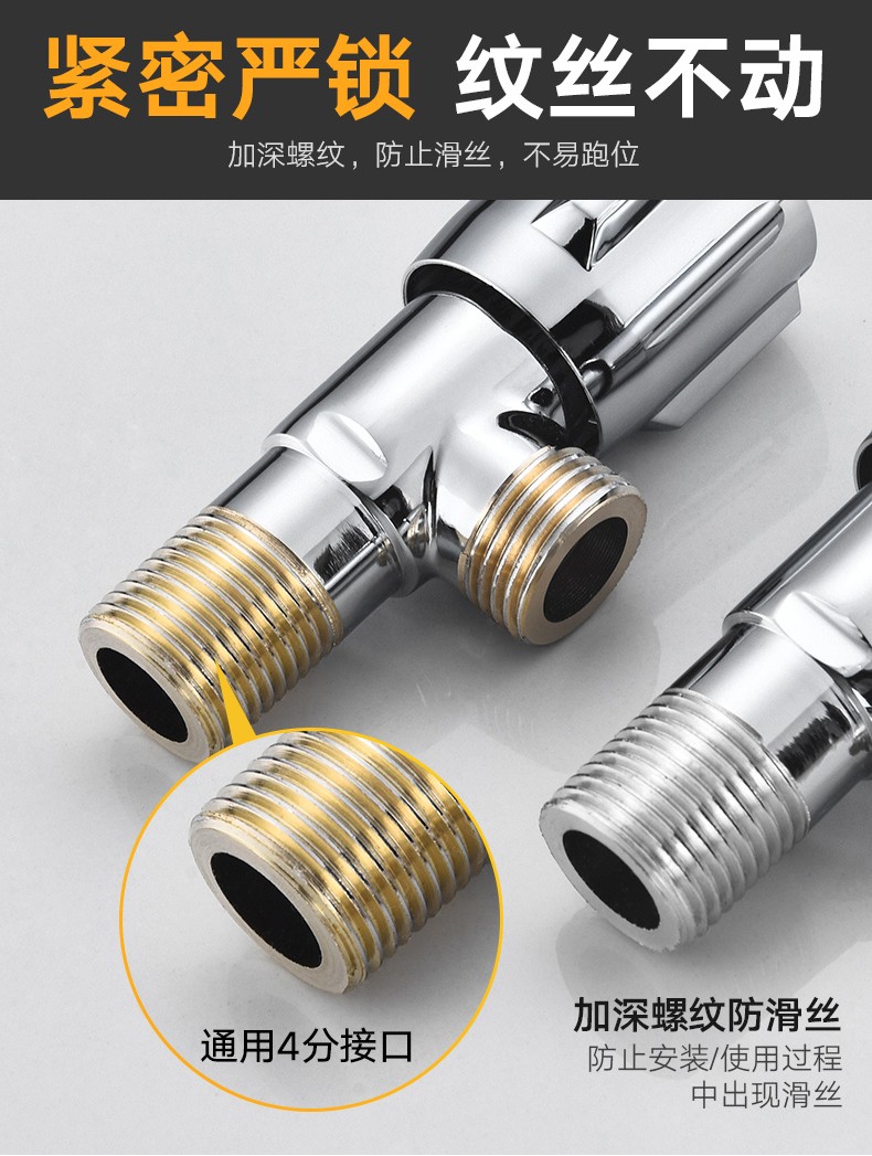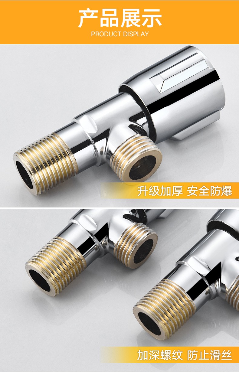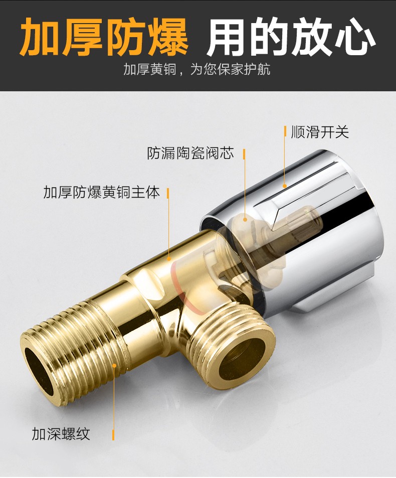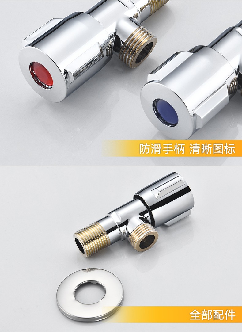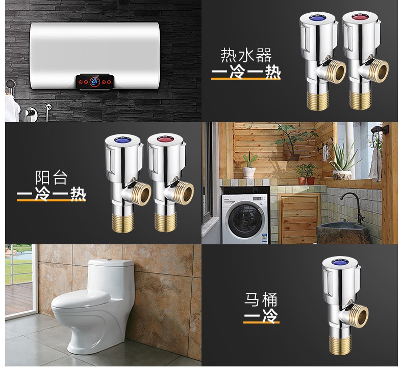Yuante household three-way one in and two out water stop valve water heater toilet triangular valve eight-character valve hot and cold quick opening water stop valve triangular valve full copper hot and cold water valve switch water brass material (red label 1)