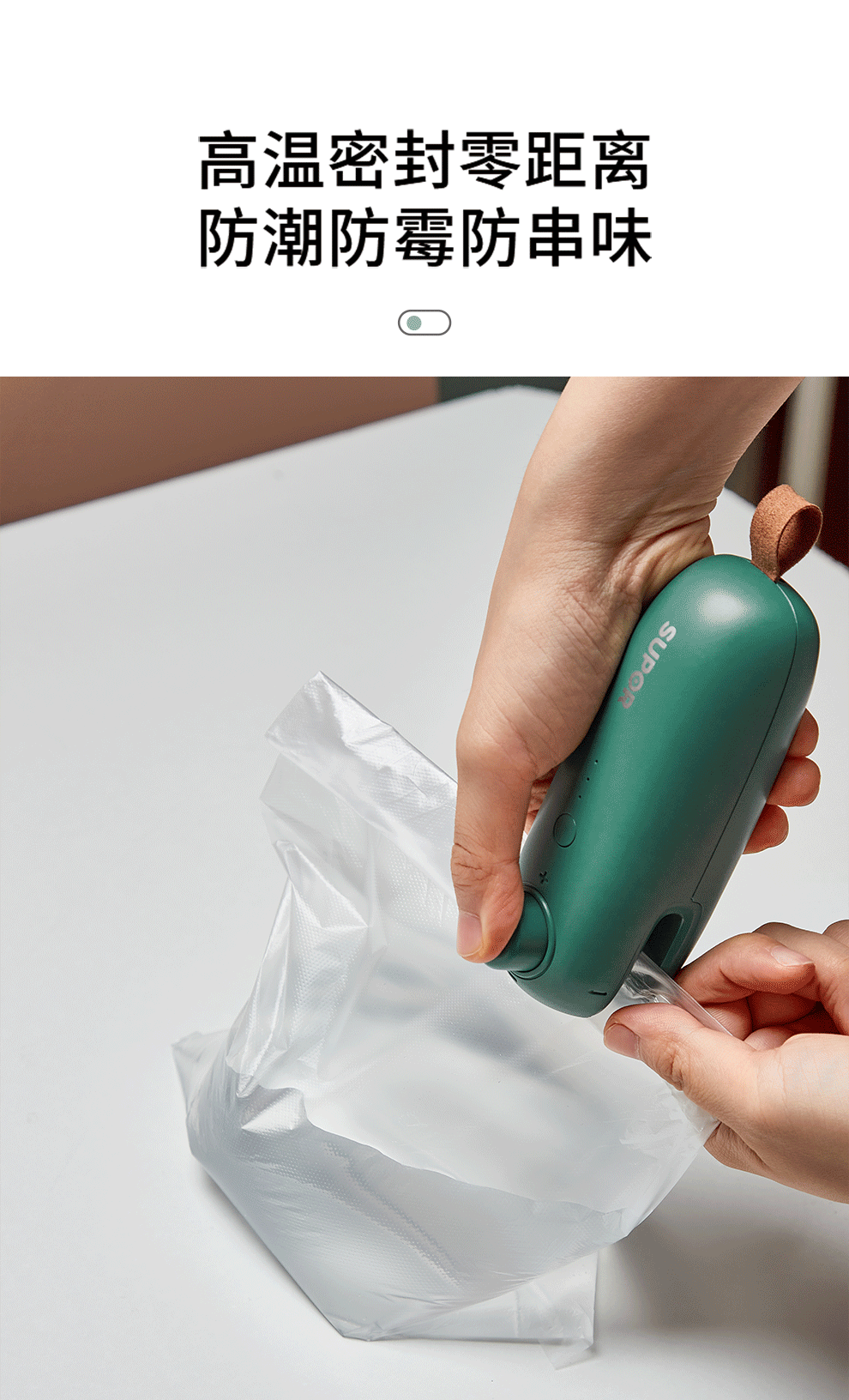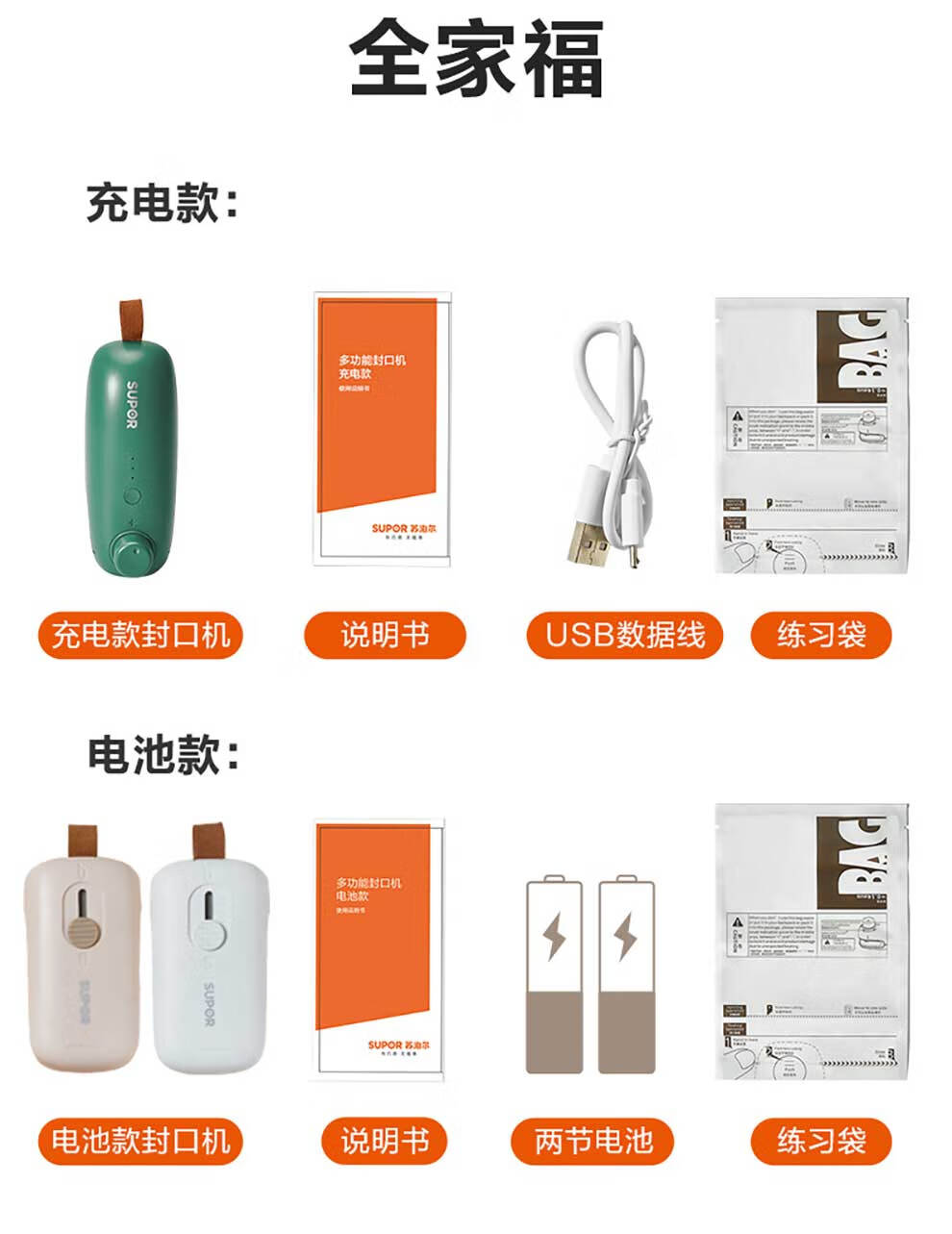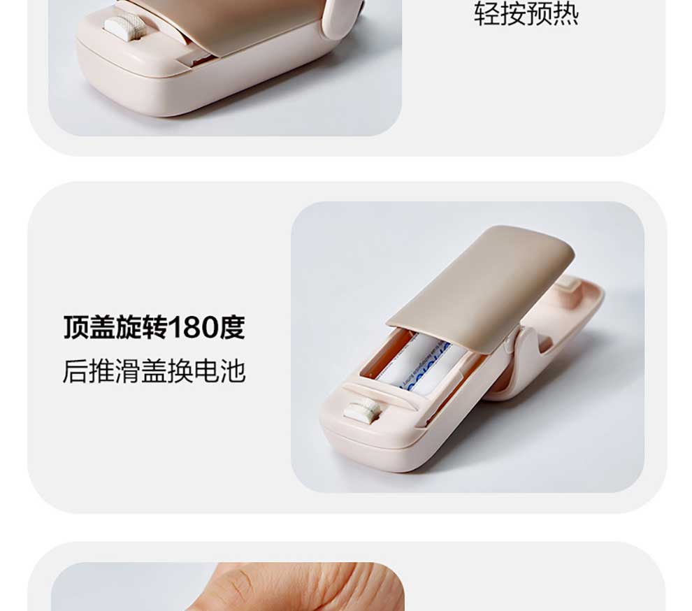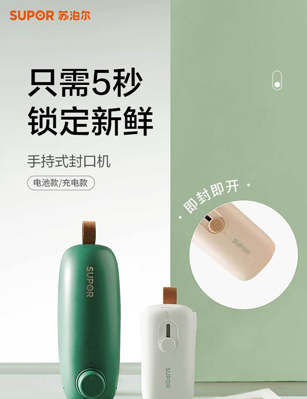 SUPOR sealing machine mini portable sealing clip household snack sealing machine sealing machine plastic sealing machine hand pressure heat sealing machine battery style fog white practice bag + battery