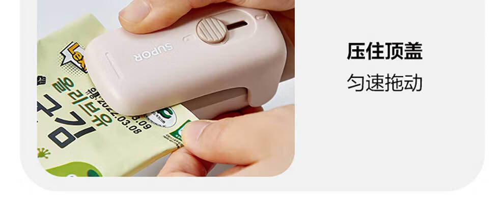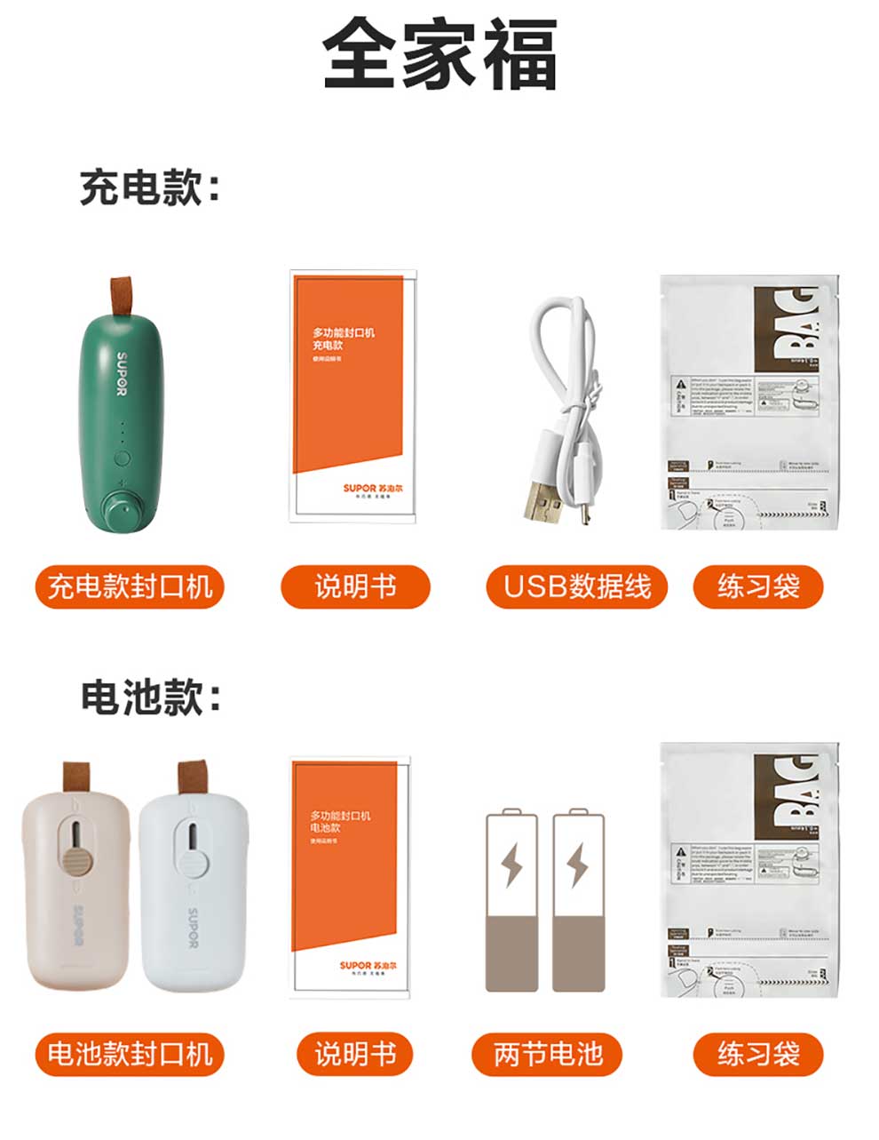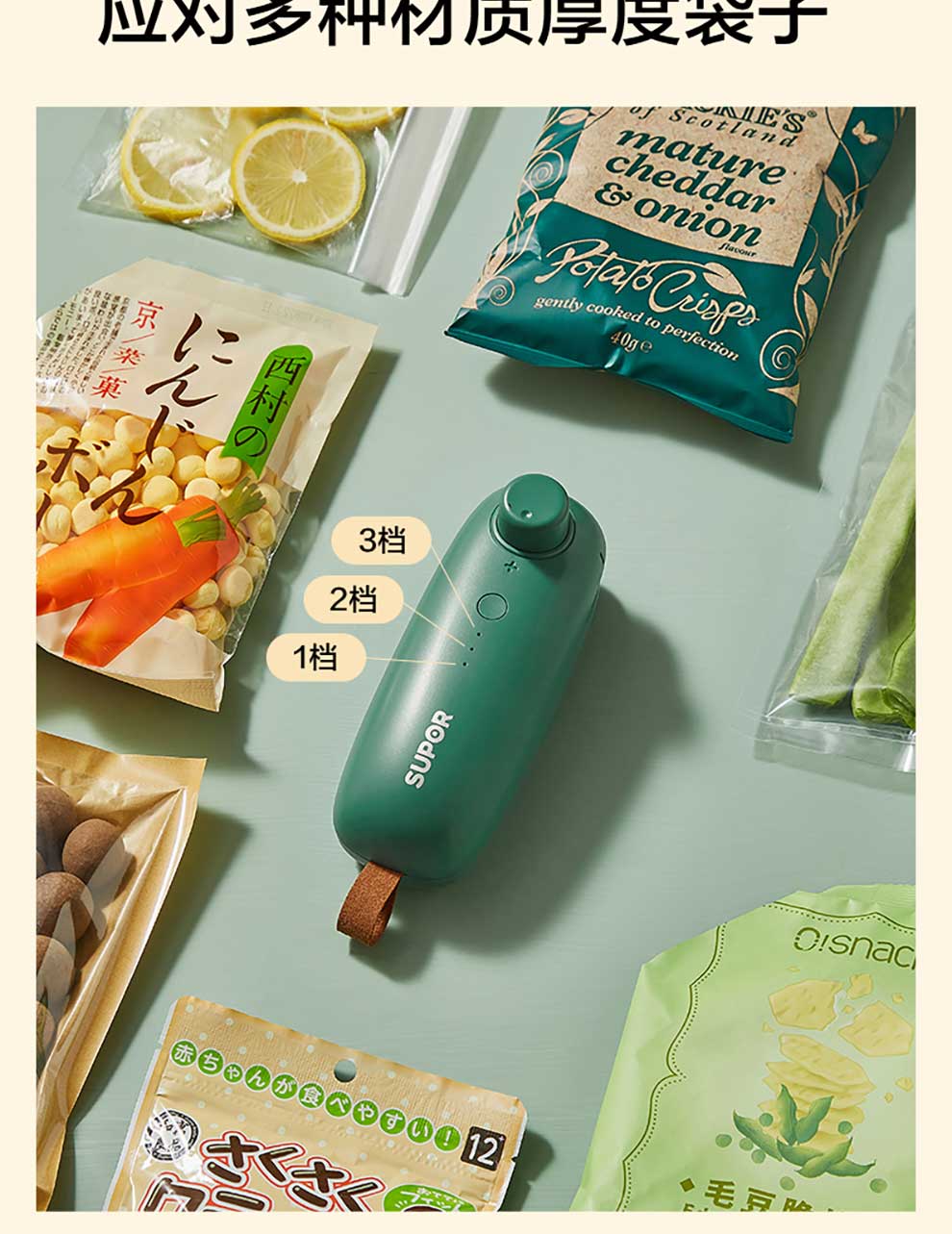 SUPOR sealing machine mini portable sealing clip household snack sealing machine tea bag sealer sealing machine plastic sealing machine hand pressure heat sealing machine snack sealing god battery style fog white practice bag + battery