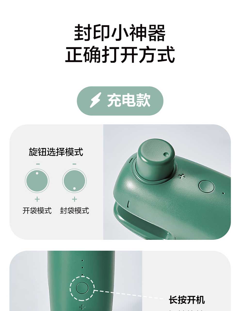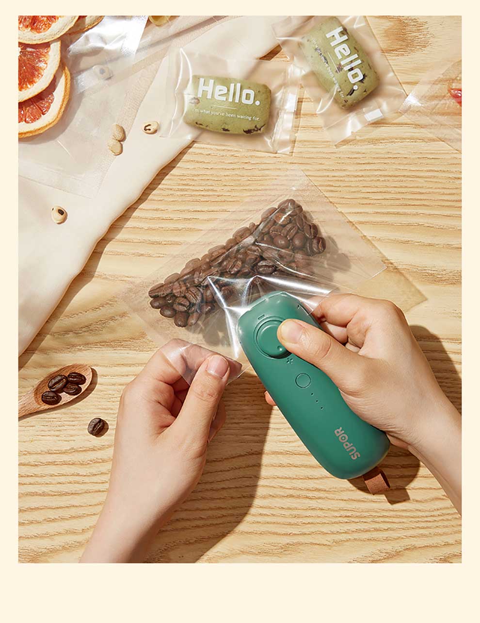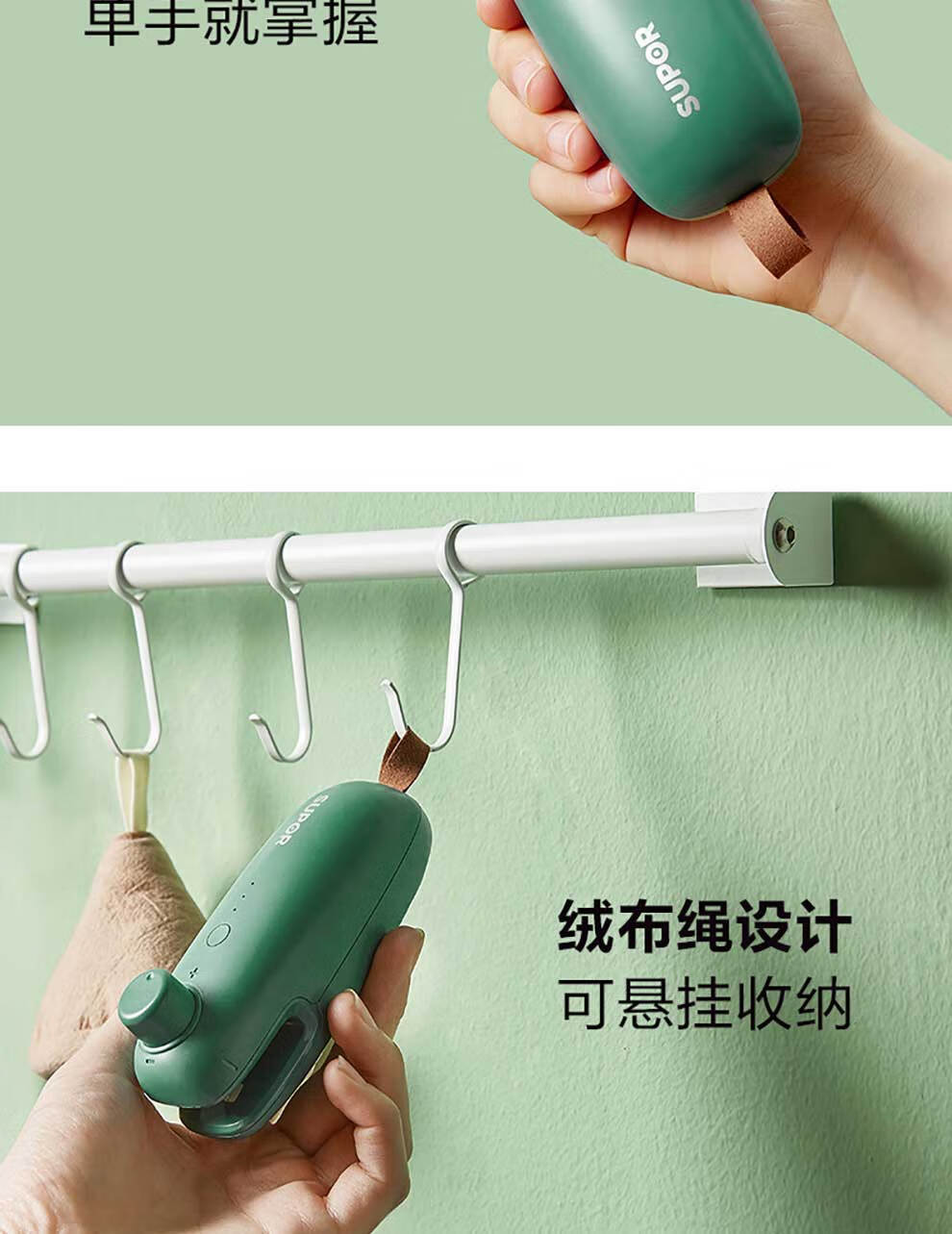 SUPOR sealing machine mini portable sealing clip household snack sealing machine tea bag sealer sealing machine plastic sealing machine hand pressure heat sealing machine snack sealing god battery style fog white practice bag + battery