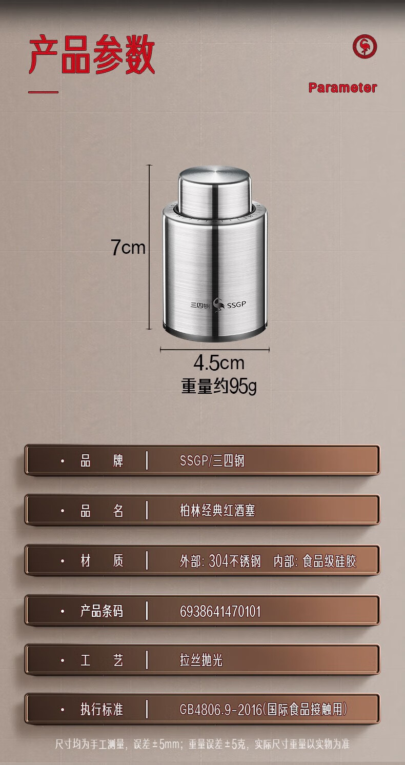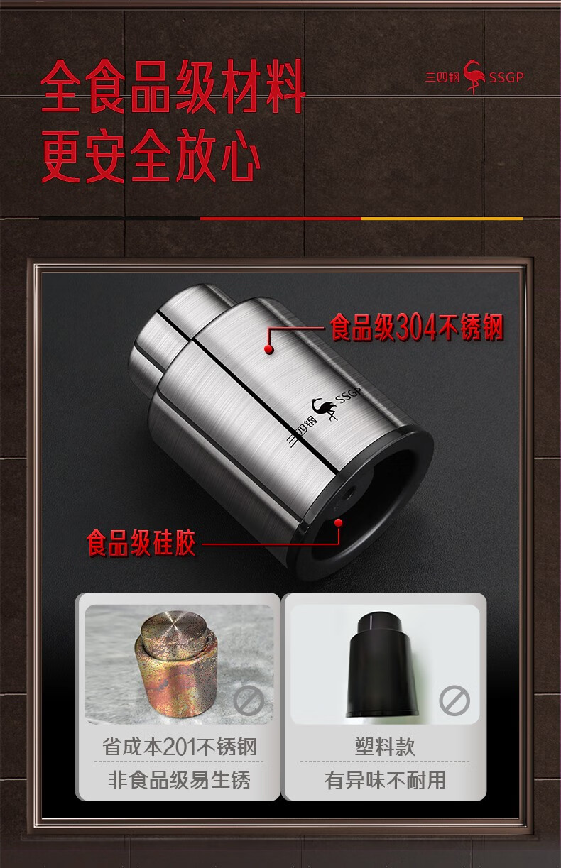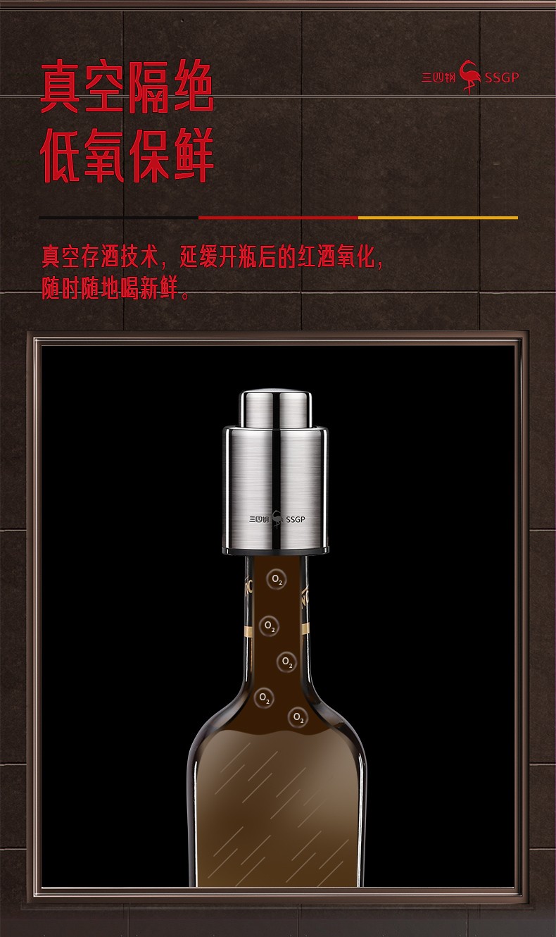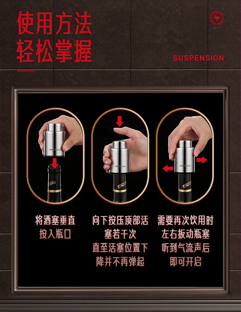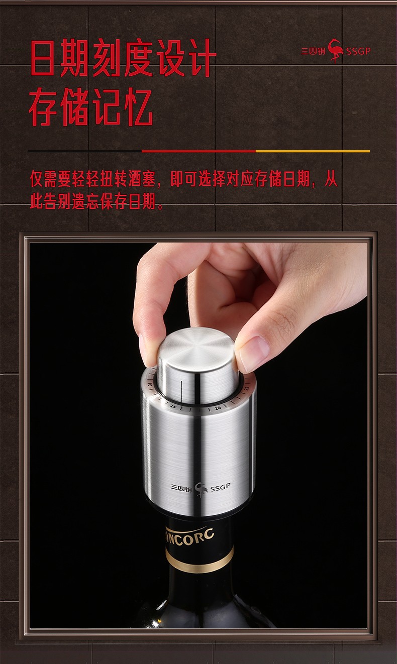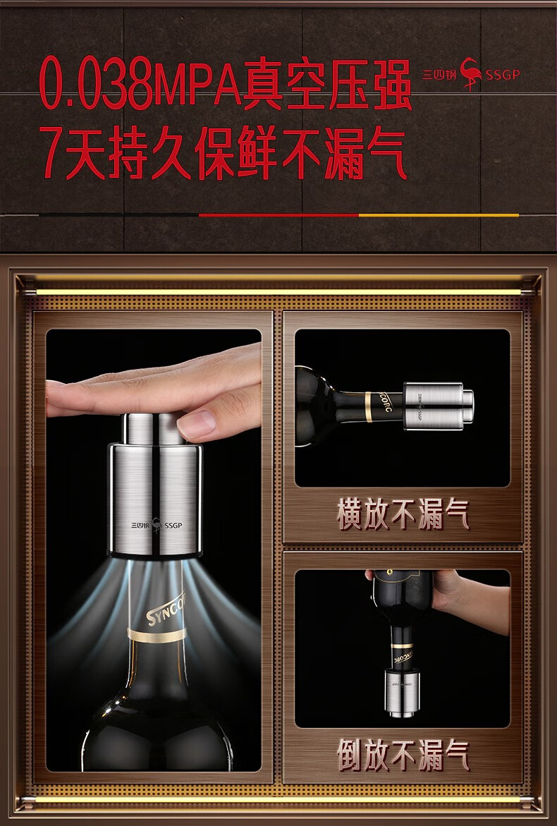 Sansi Steel Vacuum Wine Stopper, Wine Household Stopper, Universal Sealer, Red Wine Bottle Stopper, 1 piece