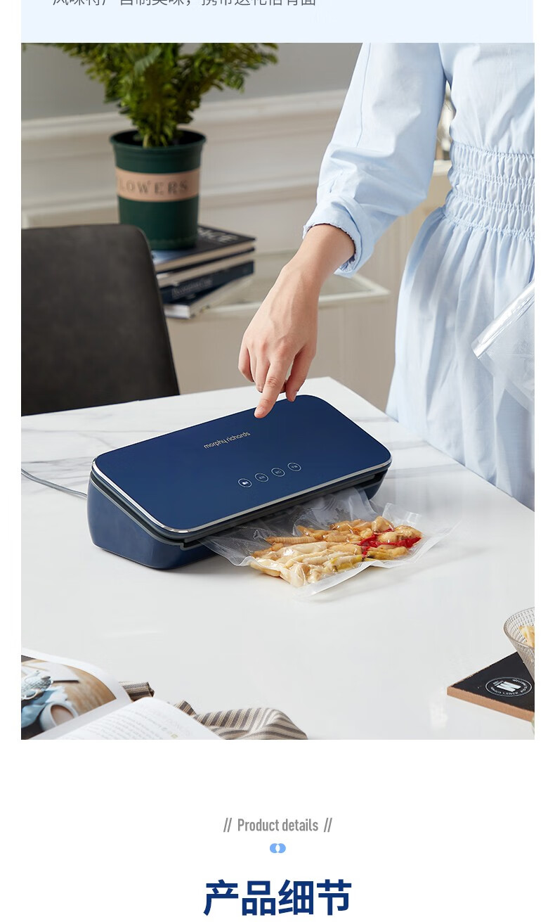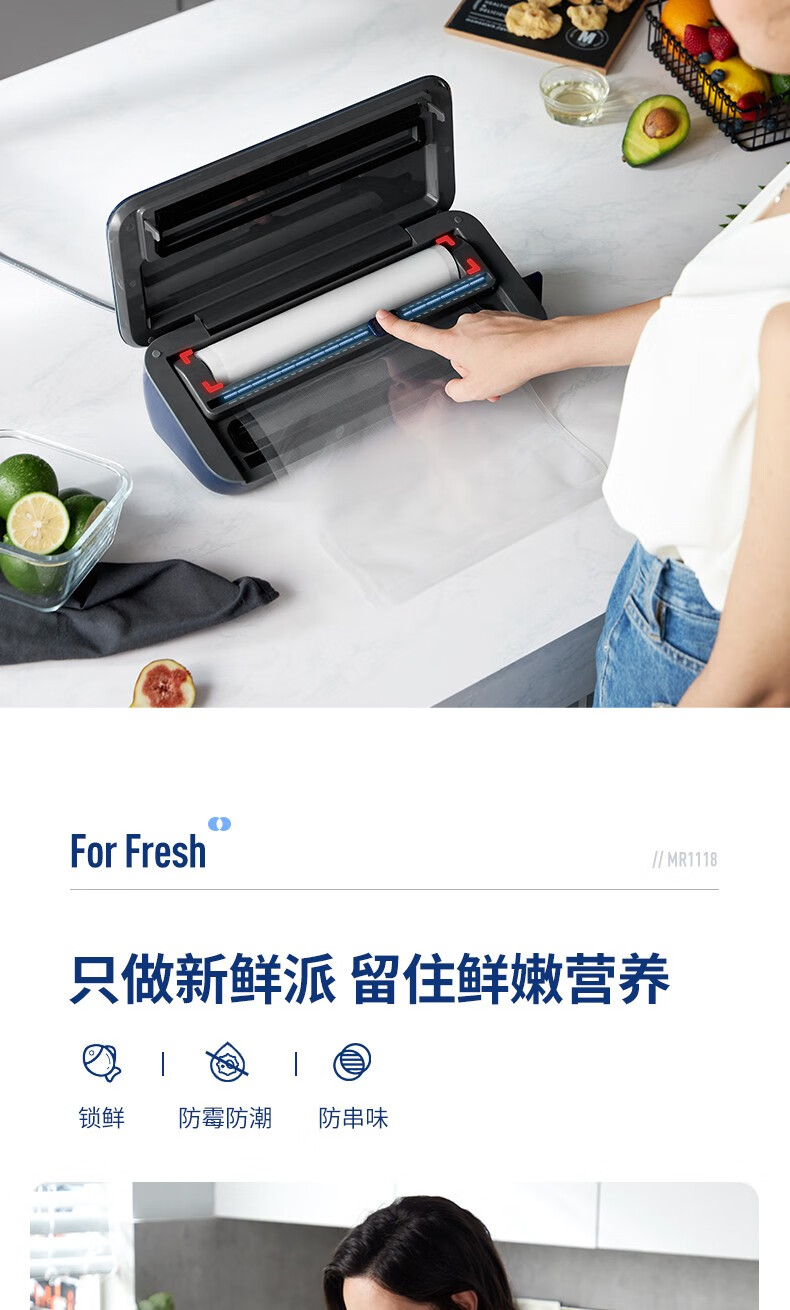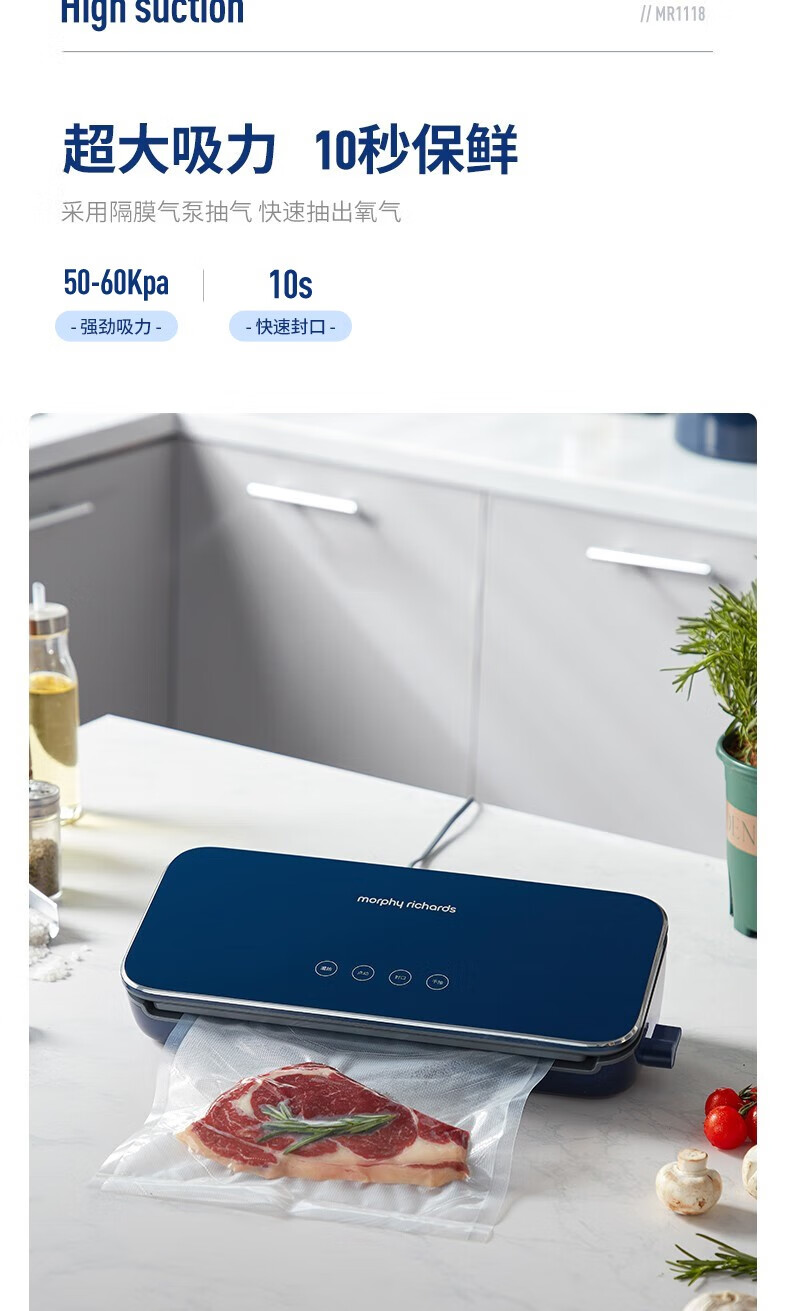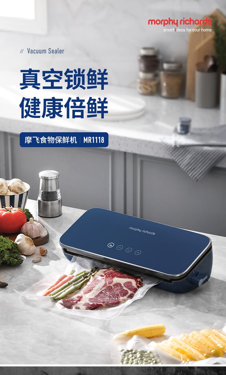 Morphyrichards fully automatic vacuum sealing machine household food packaging machine snack sealing machine fruit and vegetable meat preservation machine wet and dry plastic sealing machine MR1118 Morphyrichards vacuum preservation roll MR1074
