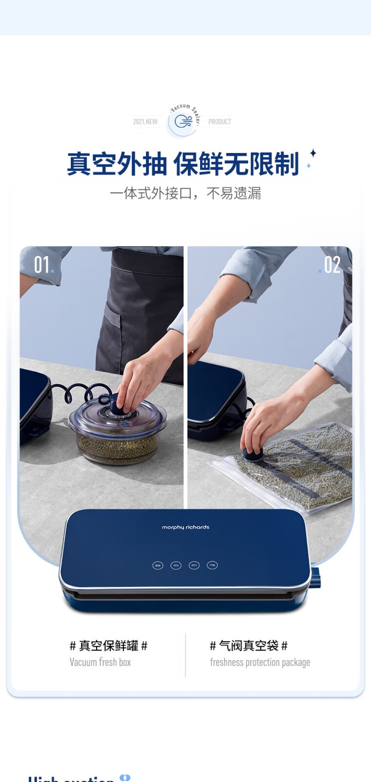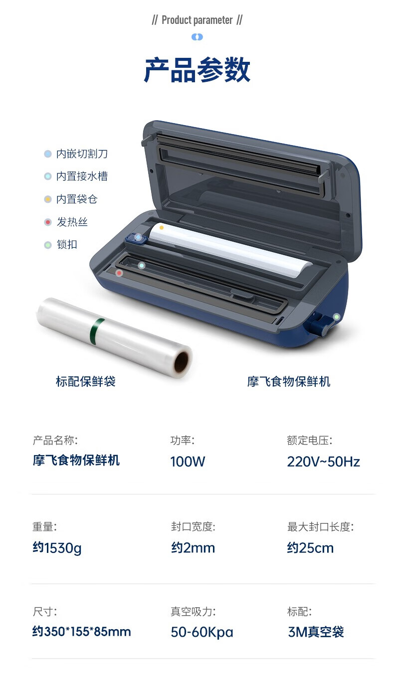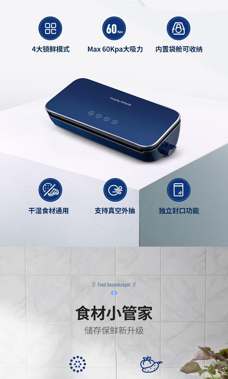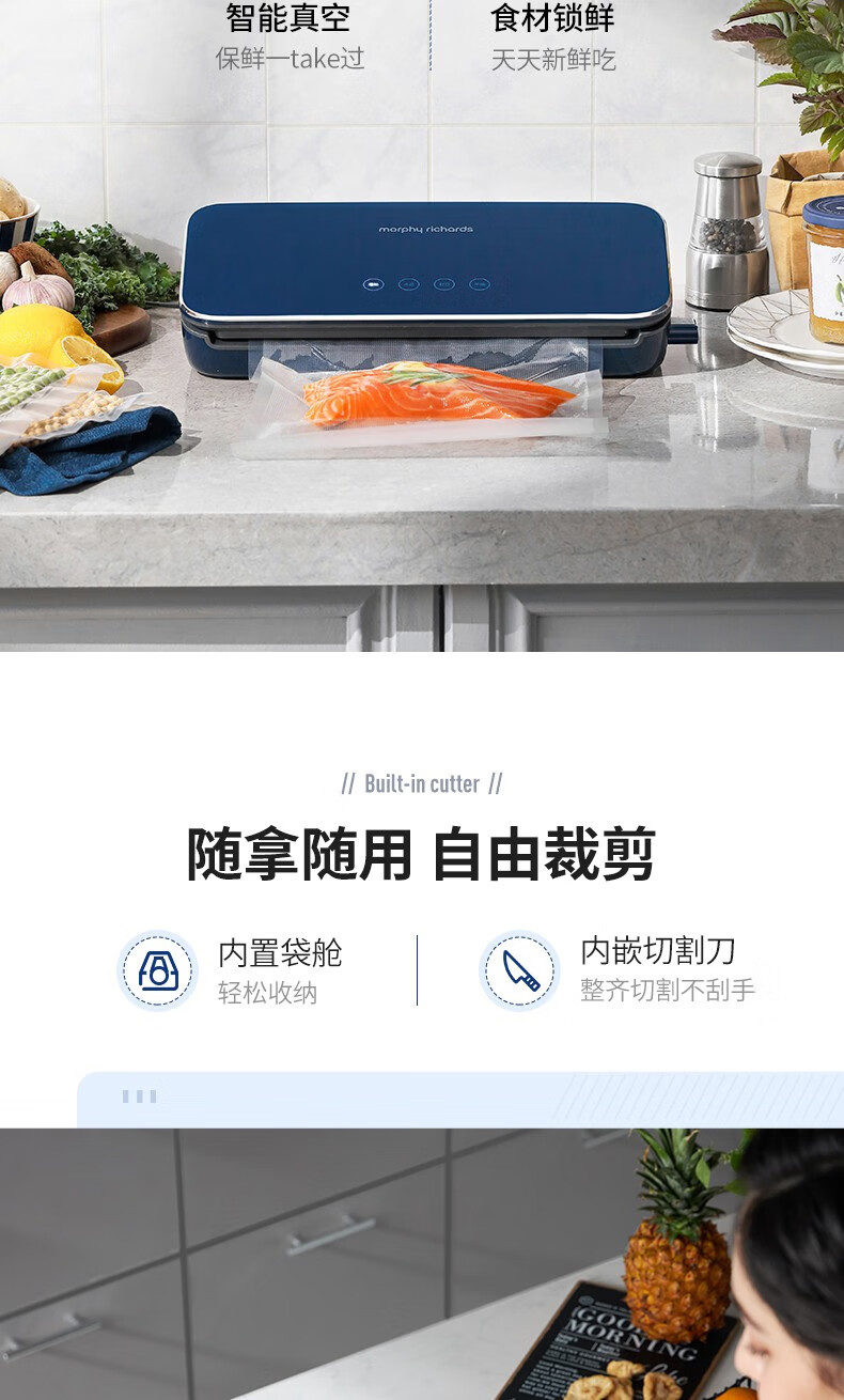 Morphyrichards fully automatic vacuum sealing machine household food packaging machine snack sealing machine fruit and vegetable meat preservation machine wet and dry plastic sealing machine MR1118 Morphyrichards vacuum preservation roll MR1074
