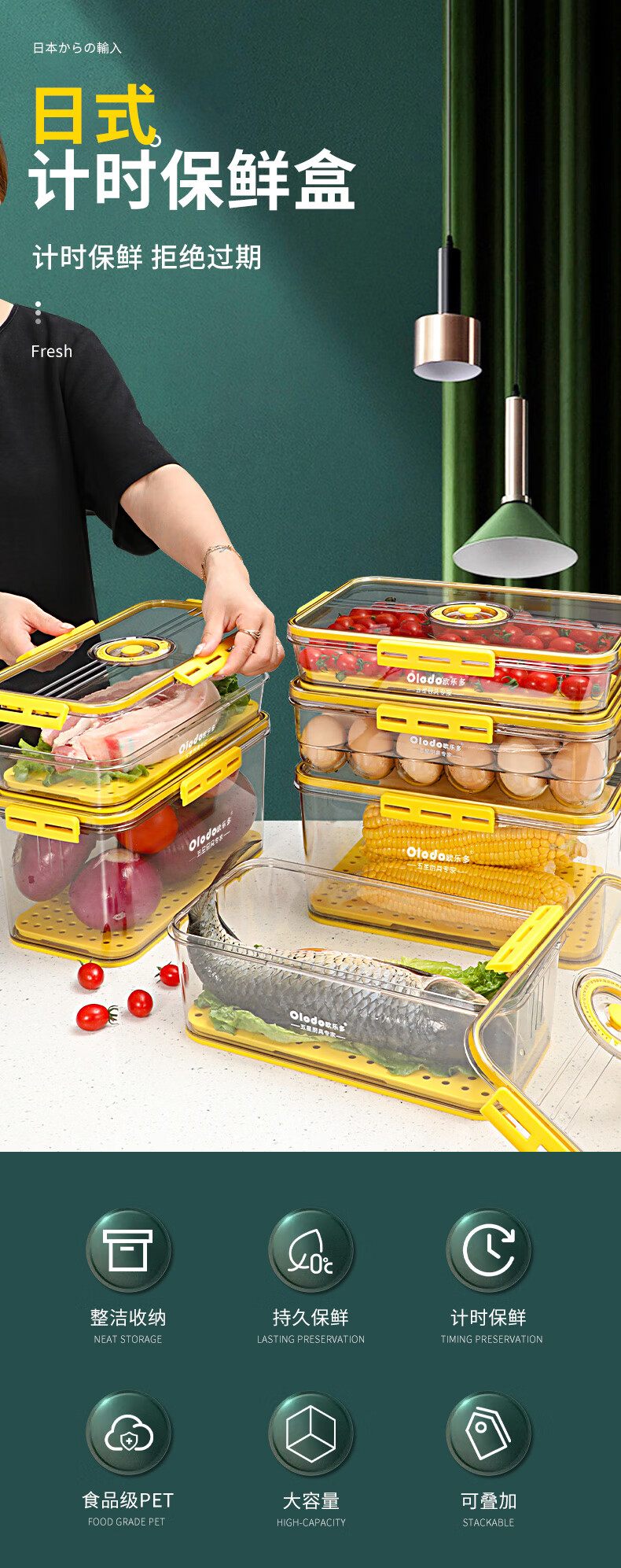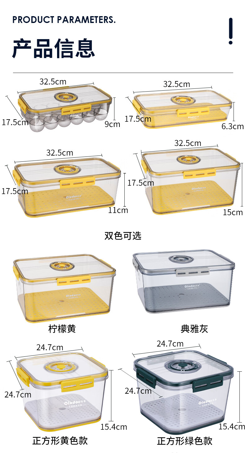 Oraldo refrigerator crisper food-grade dumpling box anti-flavor preservation fruit box dumpling box frozen meat refrigerator storage box crisper rectangular high style medium gray 1 layer