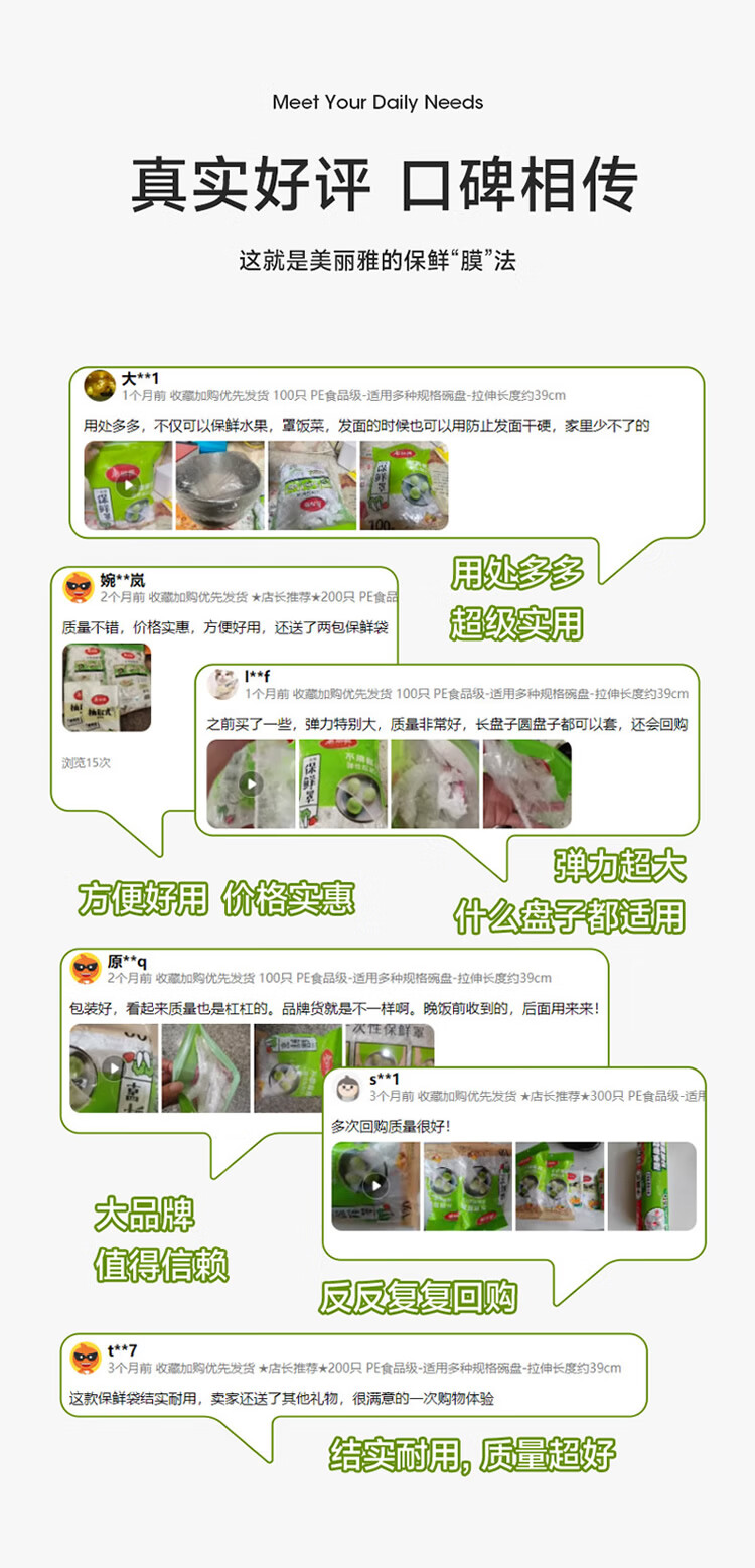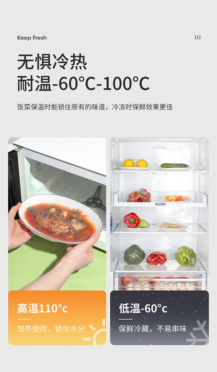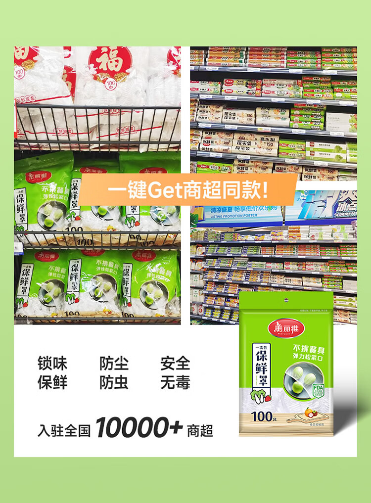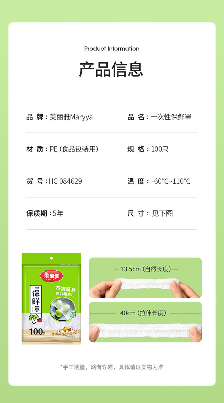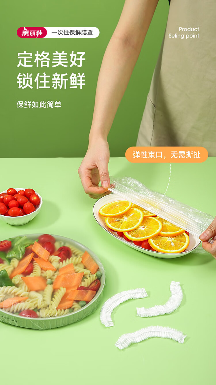 Meiya disposable plastic wrap food grade kitchen refrigerator elastic bag self-sealing dish dust cover insurance film cover bagged disposable plastic wrap 200 pieces one size fits all