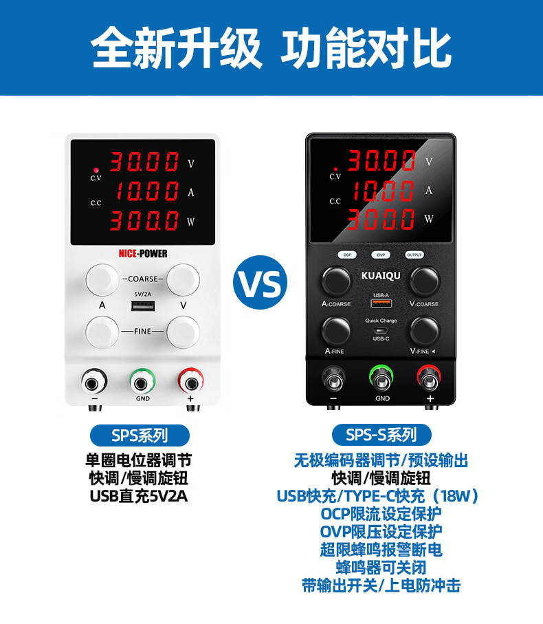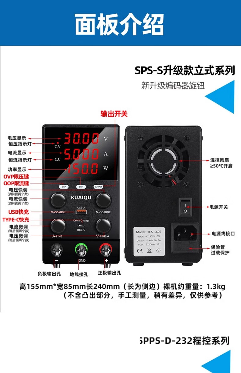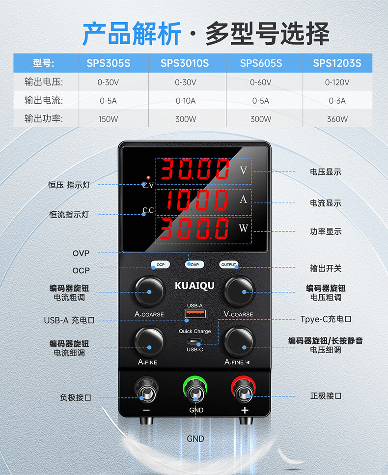 KUAIQU adjustable DC power supply 24V48V200V mobile phone repair power supply adjustable power supply constant current regulated power supply regulator 30V5A SPS305