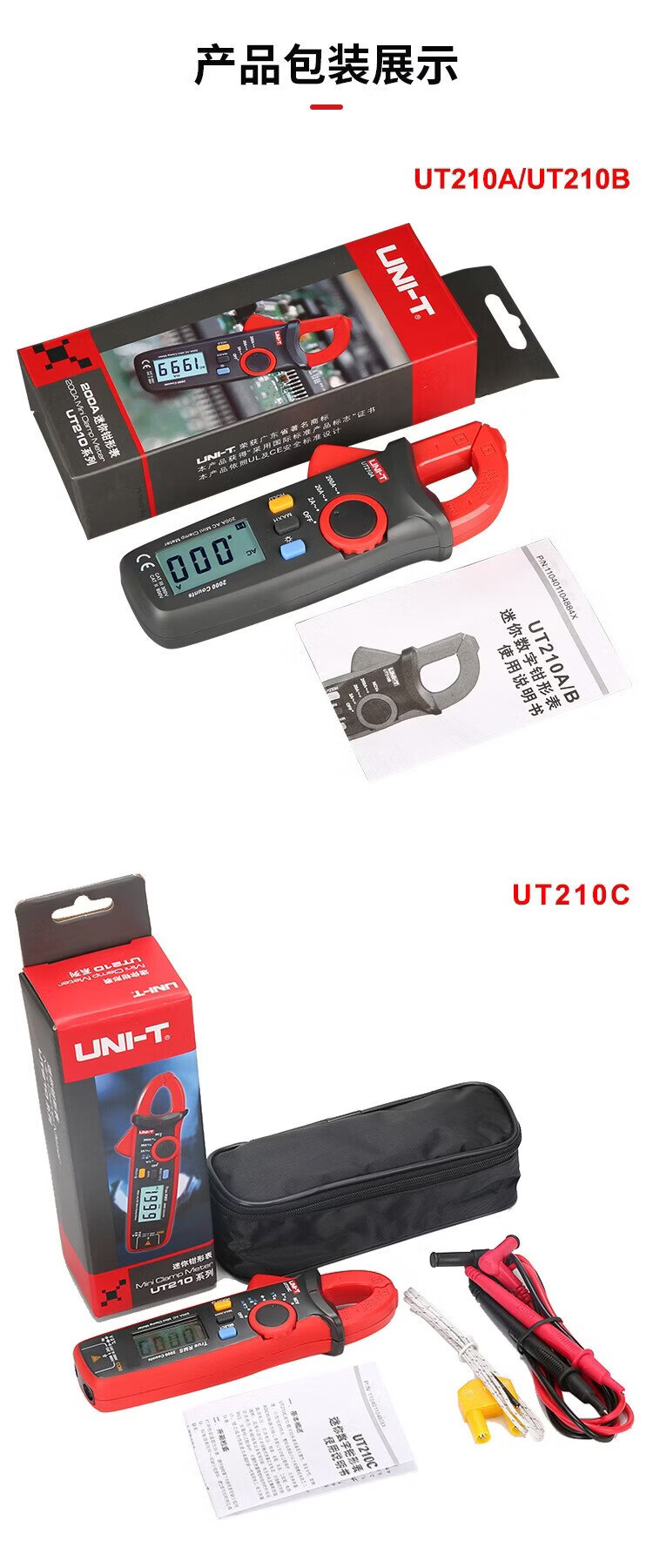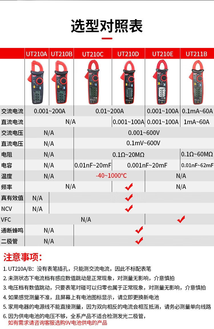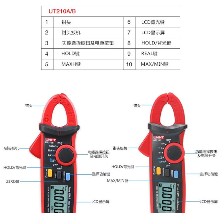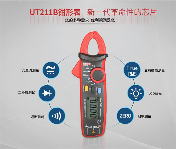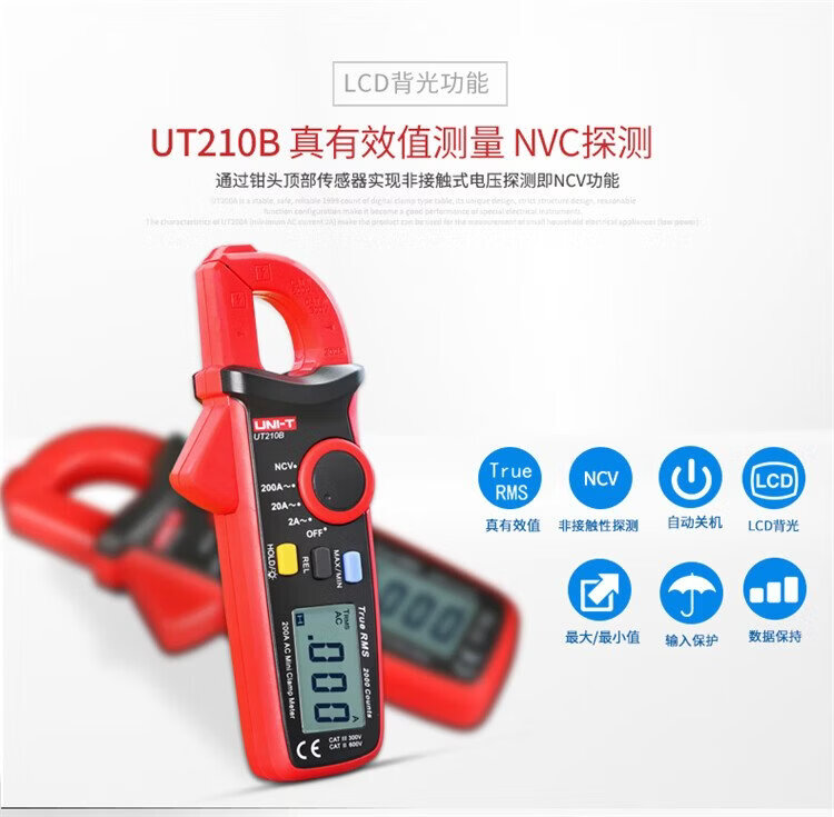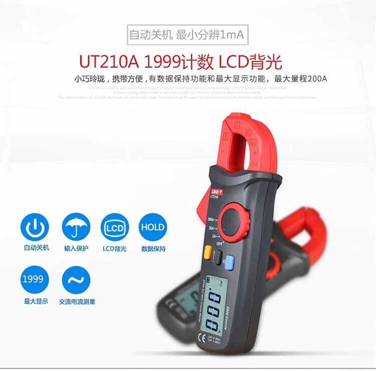 UNI-T mini digital clamp multimeter, smart burn-proof multimeter, high-precision multi-functional electrician-specific ammeter UT211B (DC current 600mA/resistance)
