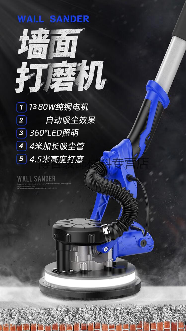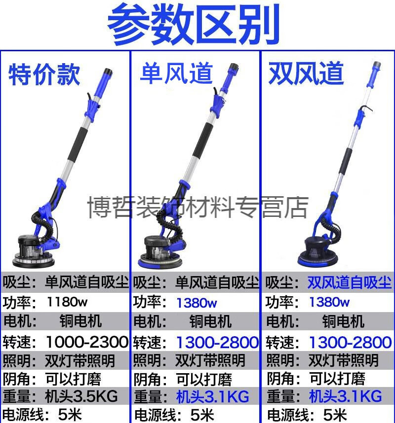 Zemai wall grinder putty self-priming long pole dust-free wall grinder putty machine vacuum cleaner double suction polisher sandpaper 2.2 meters double suction double light 6 sandpaper storage bag
