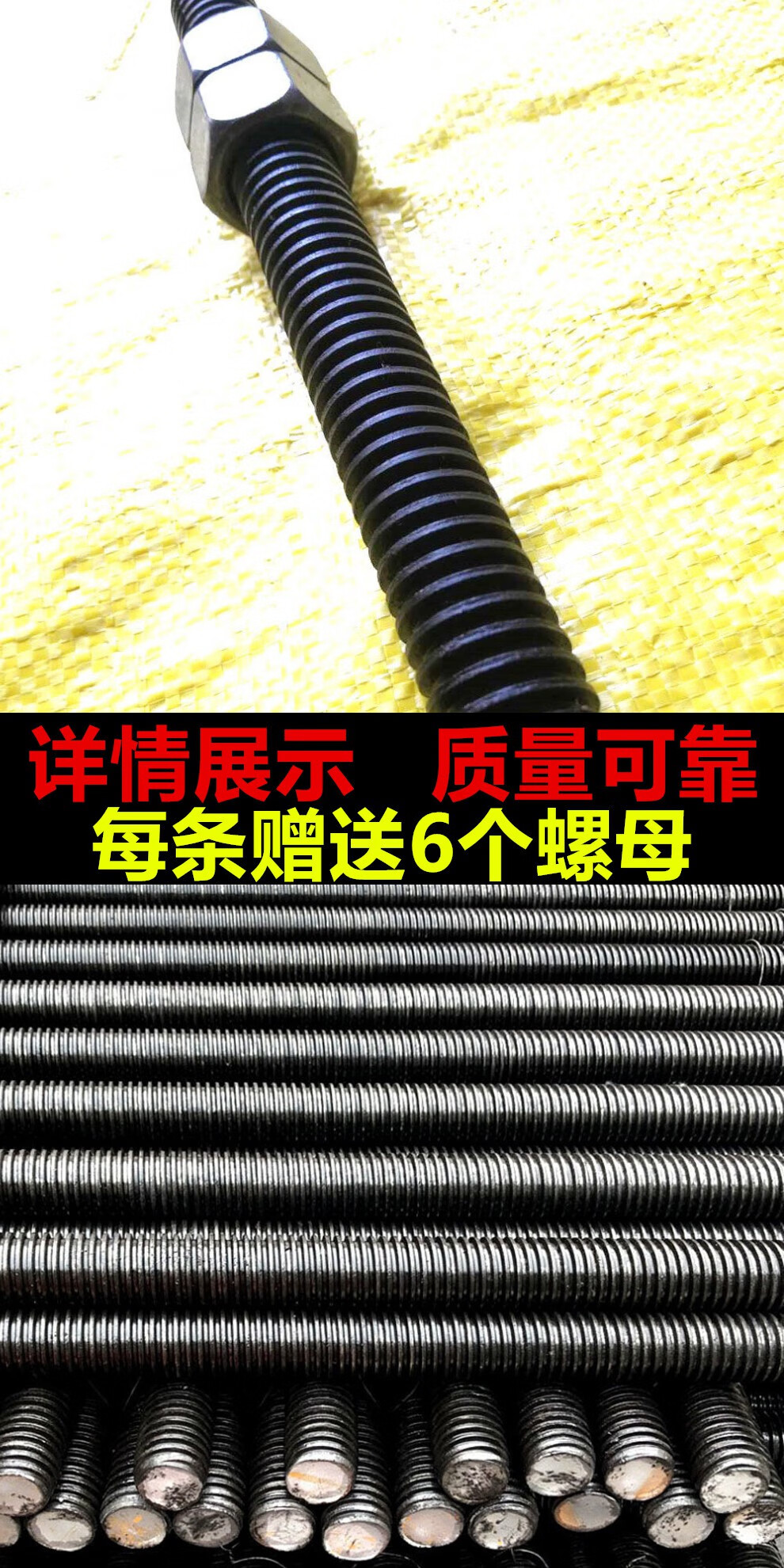 Beijing Times Spot 45 Steel Trapezoid Screw Full Thread T Thread Screw Nut Set Orthodontic Reverse Thread Coarse Thread Screw T-shaped Buckle Rod High Strength Orthodontic T12*3*1 Meter (Add 6 Nuts)