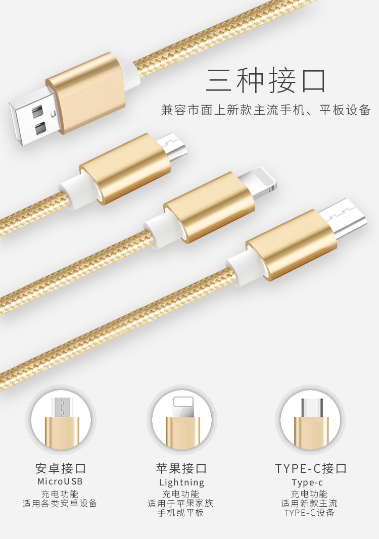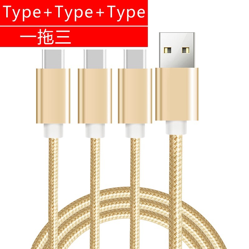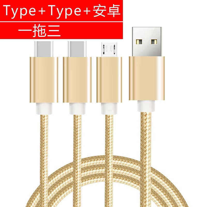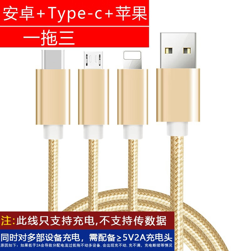 Ulaige data cable three-in-one multi-head charging cable one to three mobile phone fast charging three heads suitable for dual Apple Huawei 3 Android dual typec multi-function car multi-head gold one to three 1.2 meters Android+Type+Apple