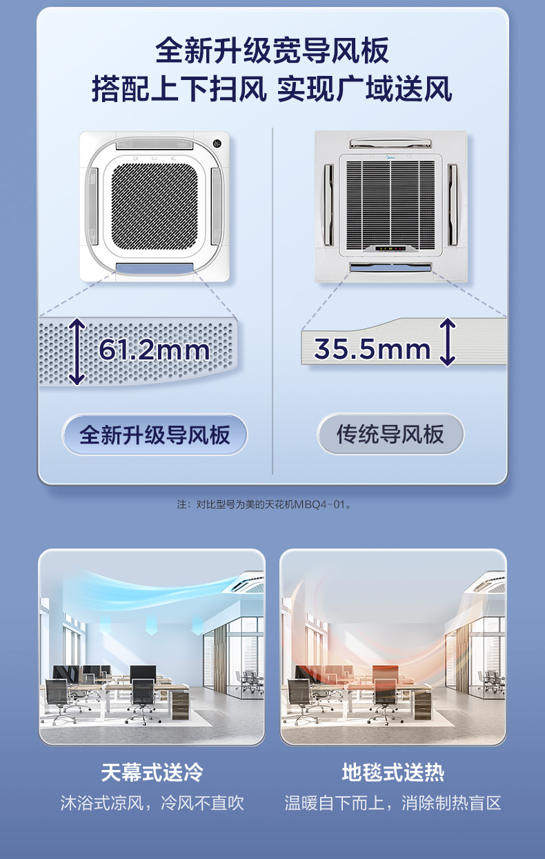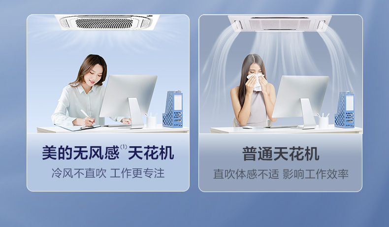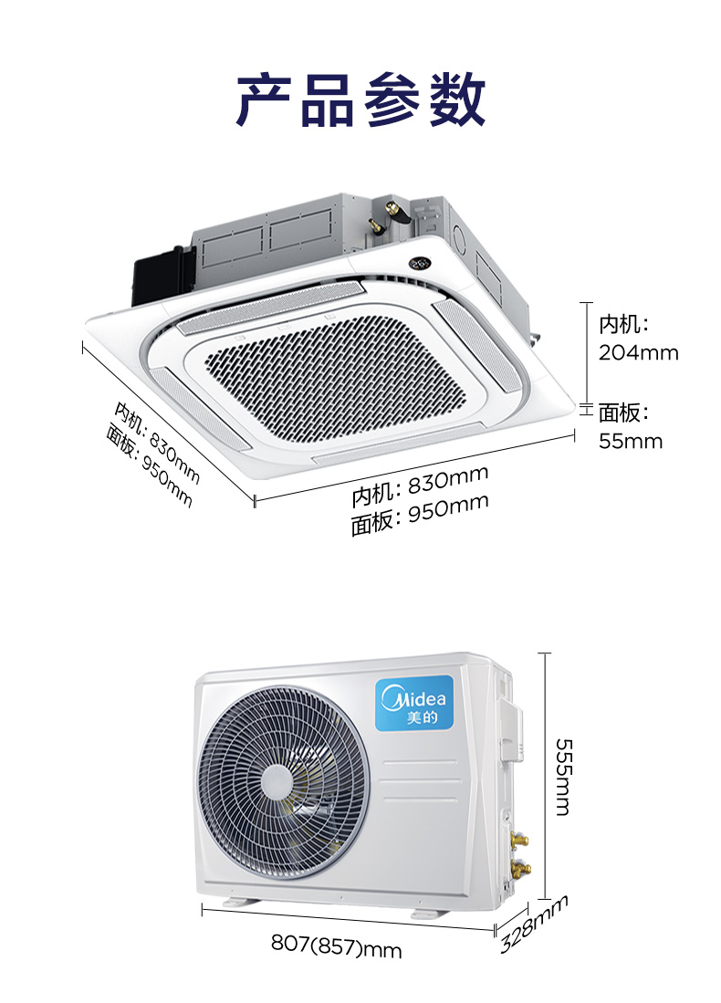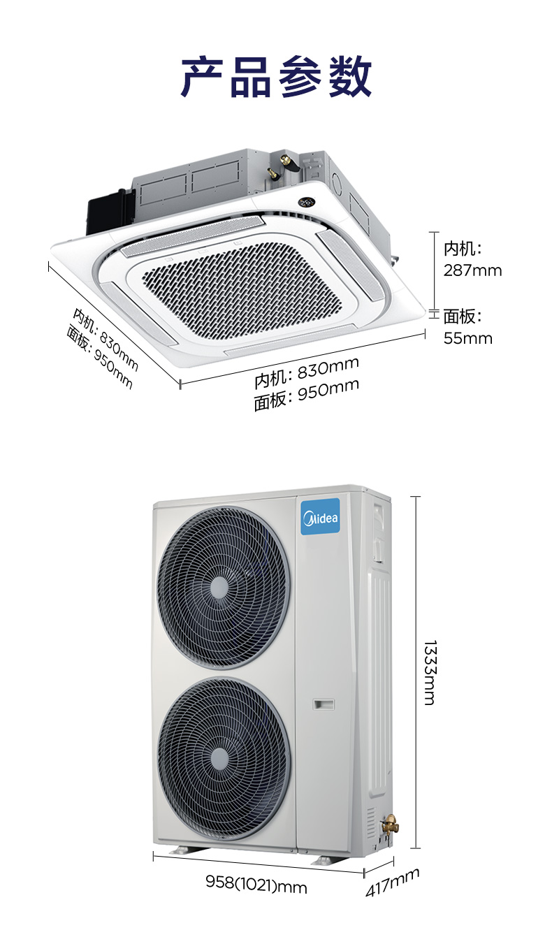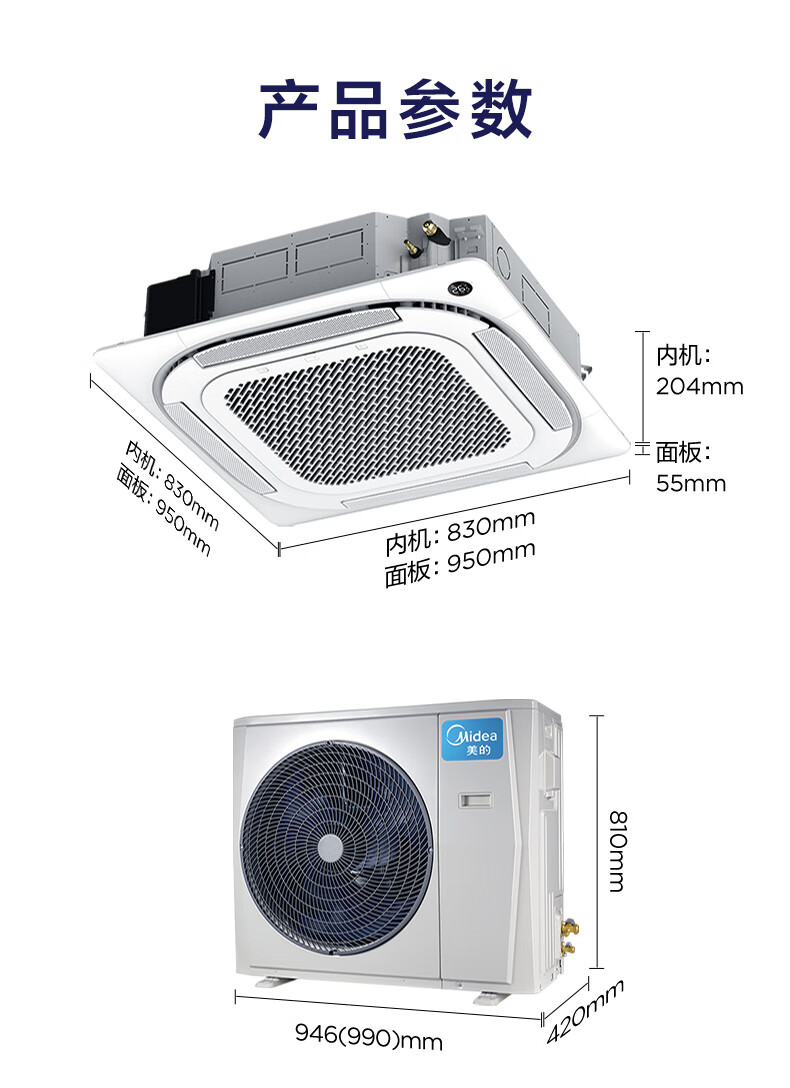 Midea central air conditioner one-to-one ceiling unit, ceiling air conditioner, shop office, embedded patio unit, commercial ceiling unit, new energy efficiency for cooling and heating 5 HP, second level energy efficiency, frequency conversion for cooling and heating, no wind feeling 380V