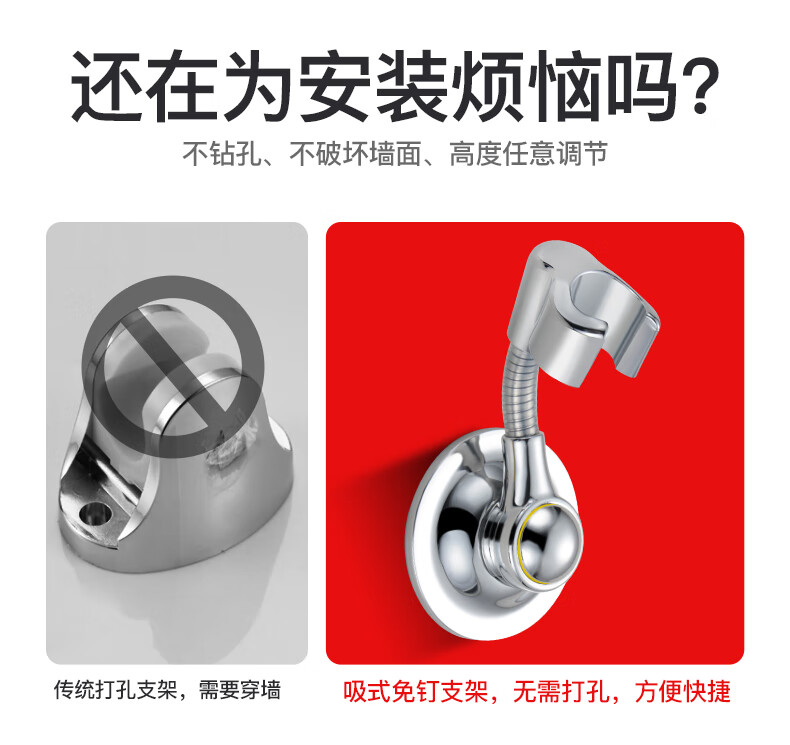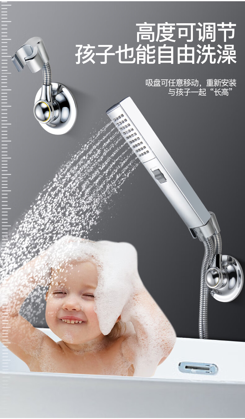 Ziller Kitchen's punch-free press-adsorption shower head bracket can be adjusted universally to fix children's baths. Recommended models include an extended universal button suction cup (can be 90 degrees horizontally universal)