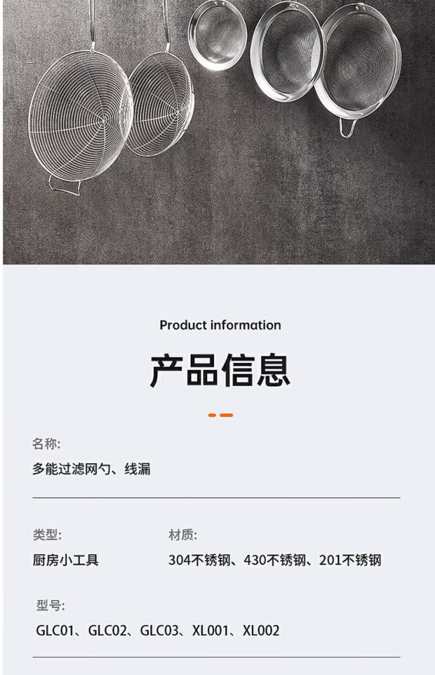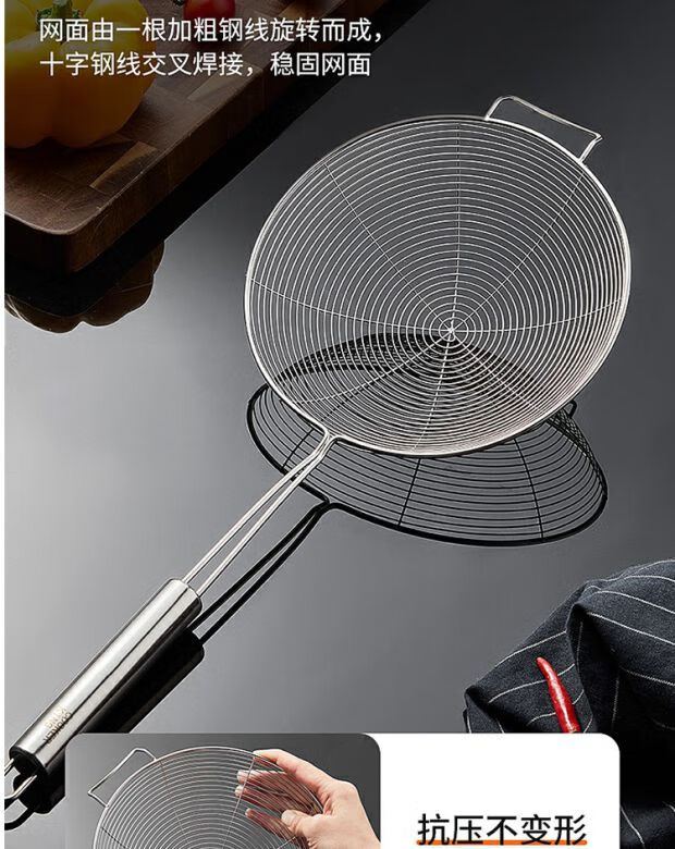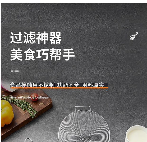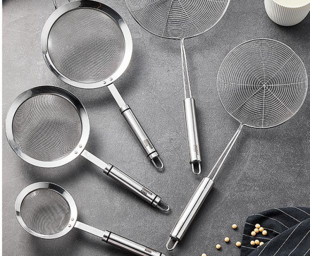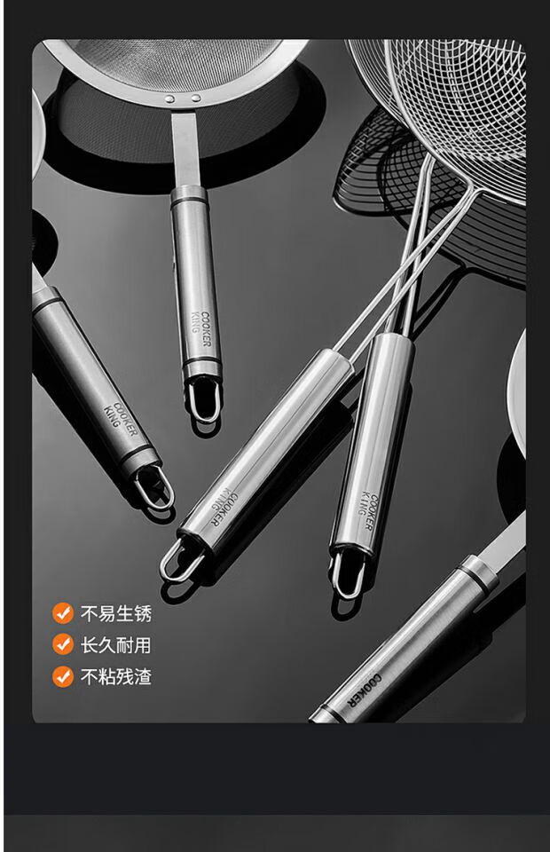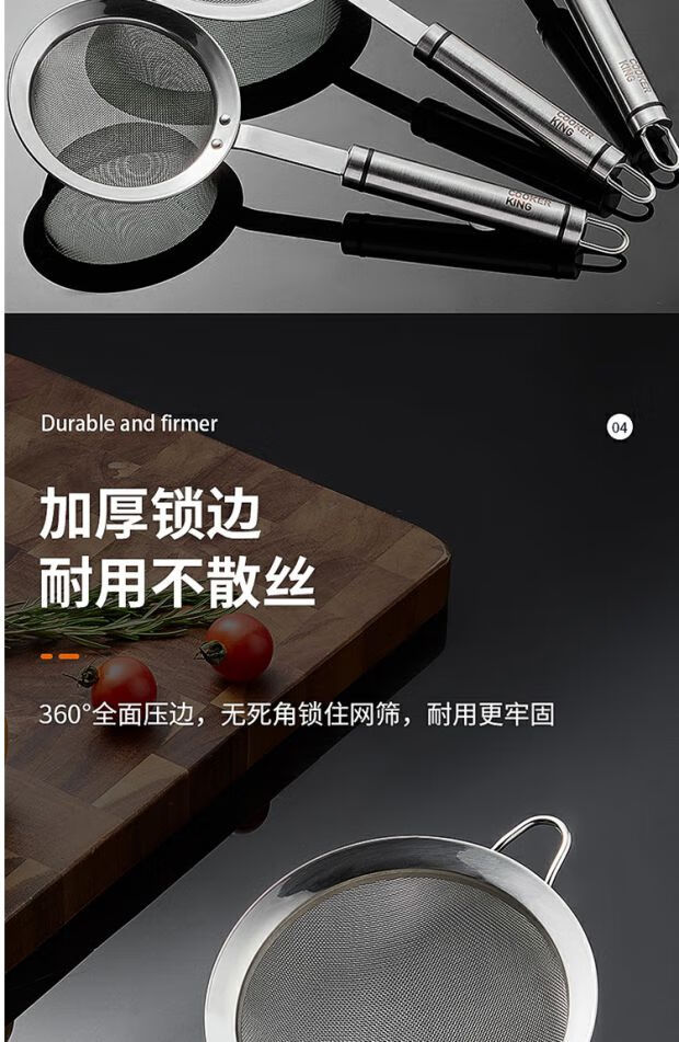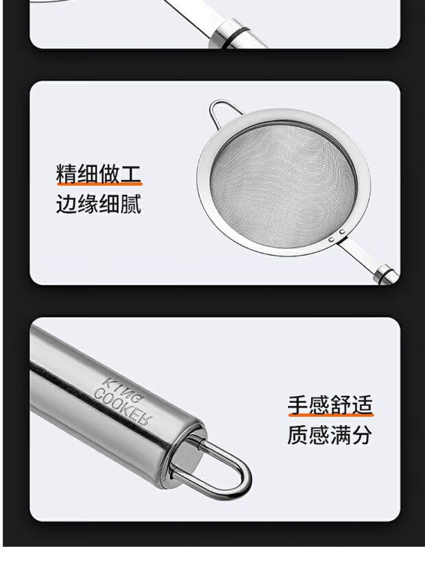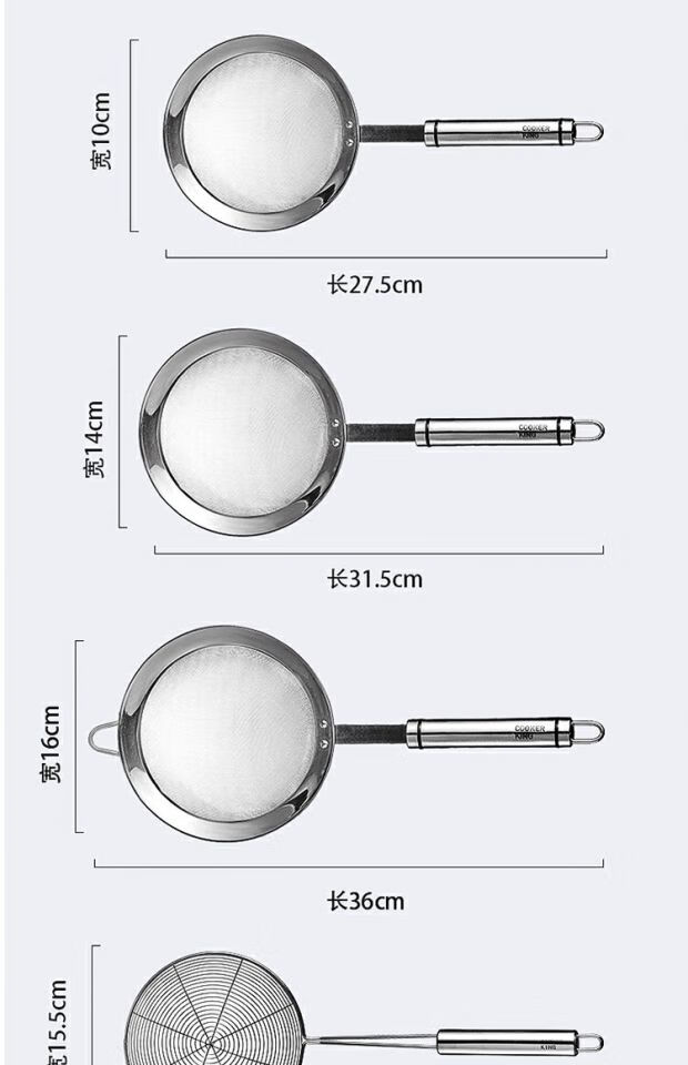COOKER KING 304 stainless steel colander, soy milk filter, household scoop, dumpling oil filter, fence line drain, small size 30 mesh, filter scoop 10cm