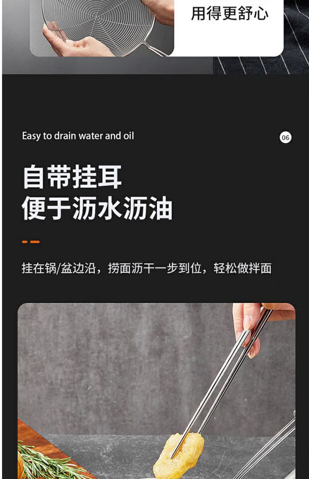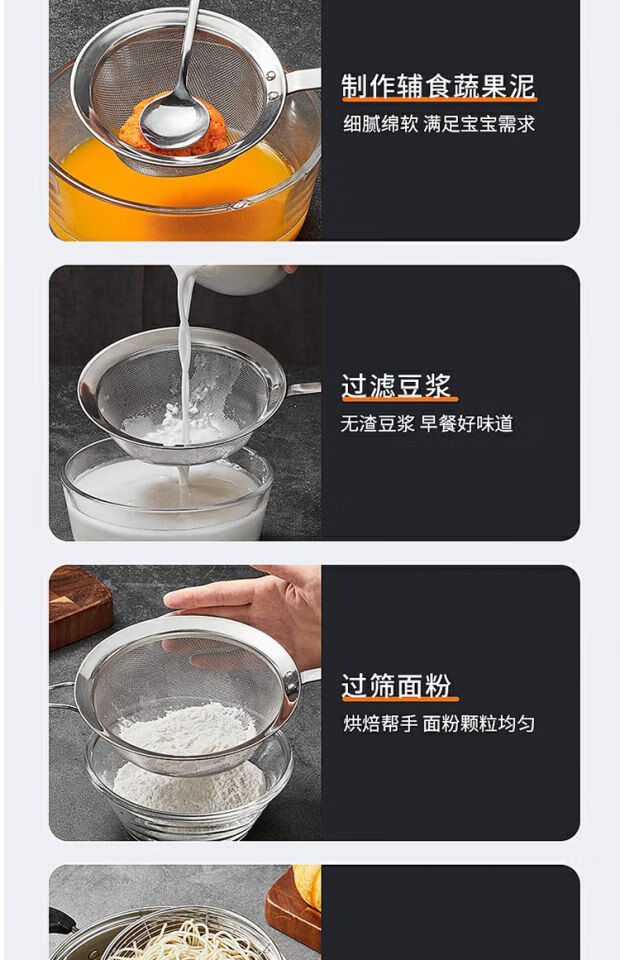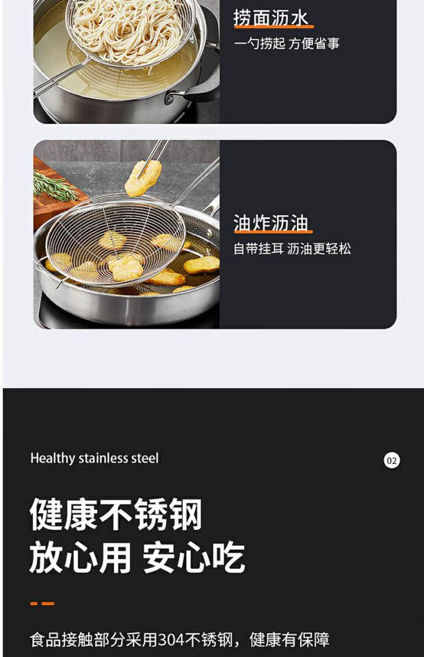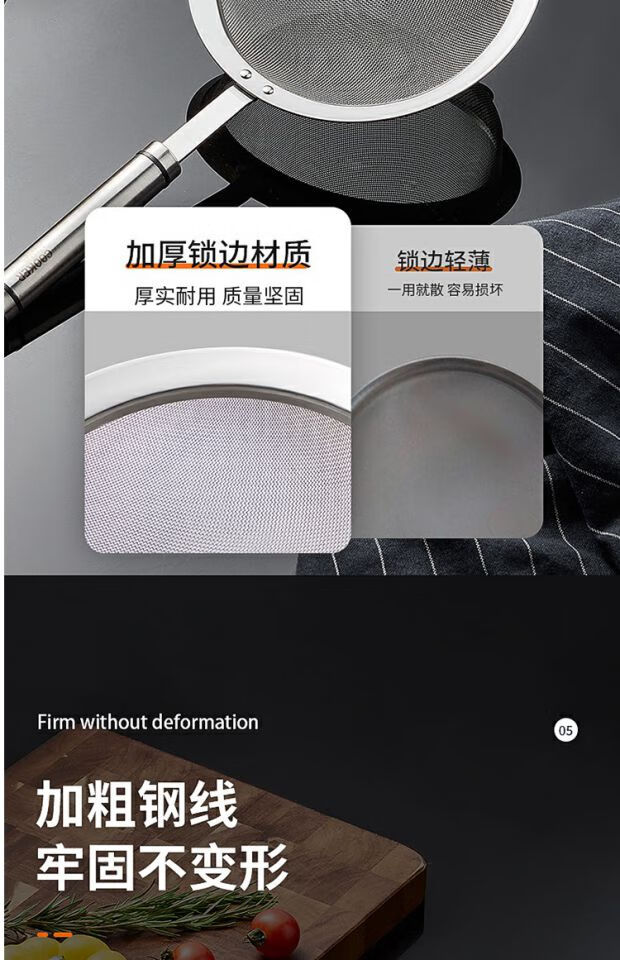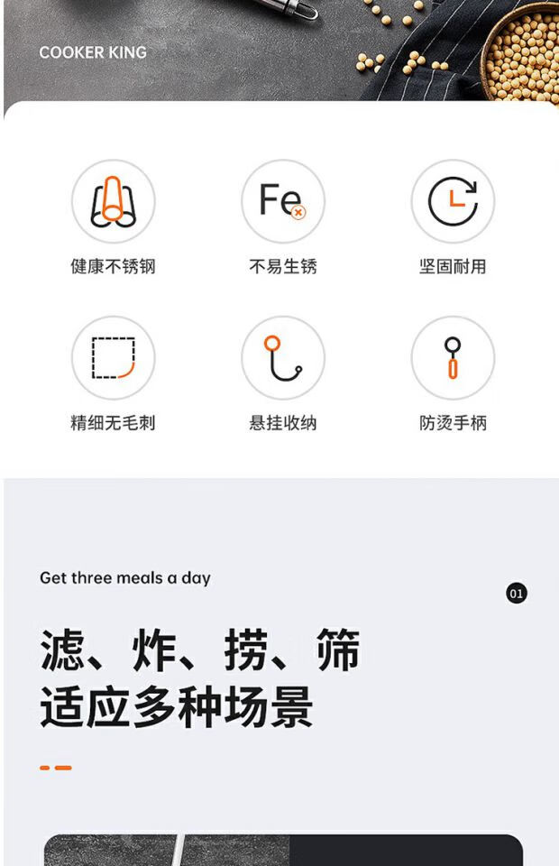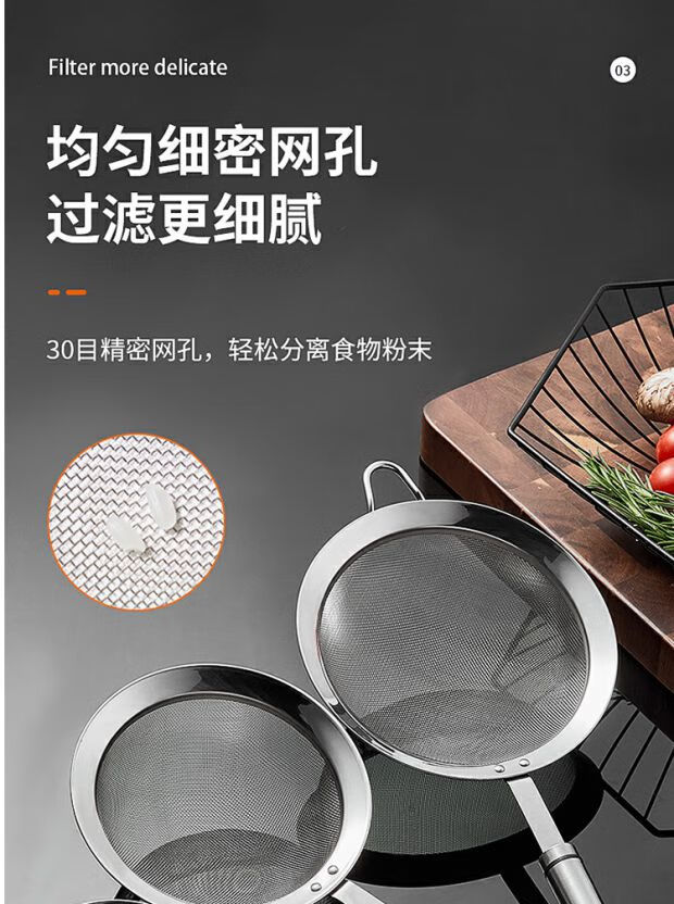 COOKER KING 304 stainless steel colander, soy milk filter, household scoop, dumpling oil filter, fence line drain, small size 30 mesh, filter scoop 10cm