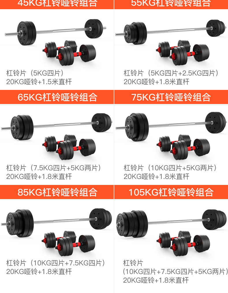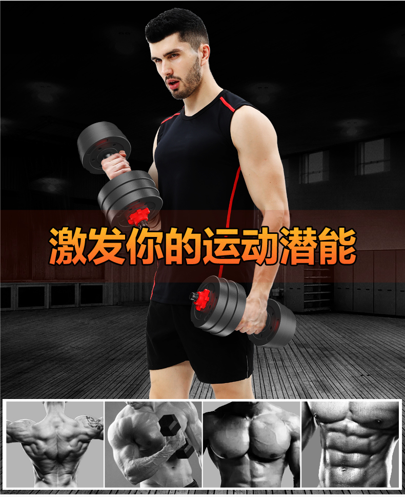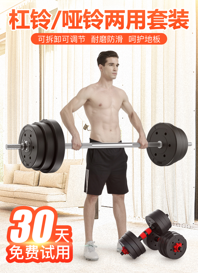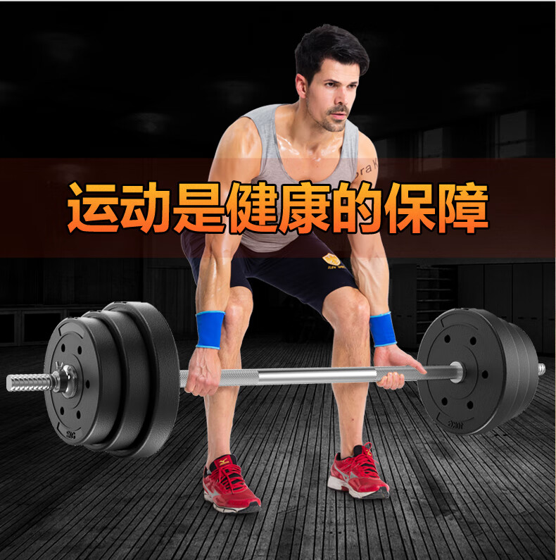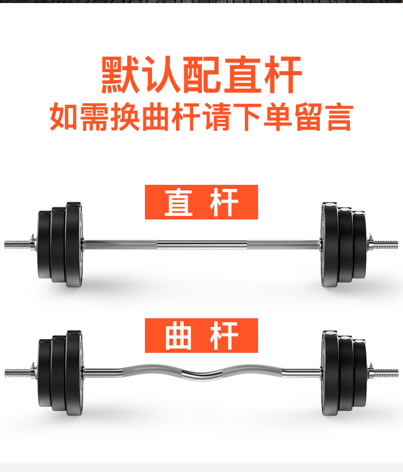 Hongbo men's home weightlifting barbell set environmentally friendly rubber-coated dumbbell combination arm muscle fitness equipment small hole straight bar 10KG dumbbell/can be assembled into a barbell