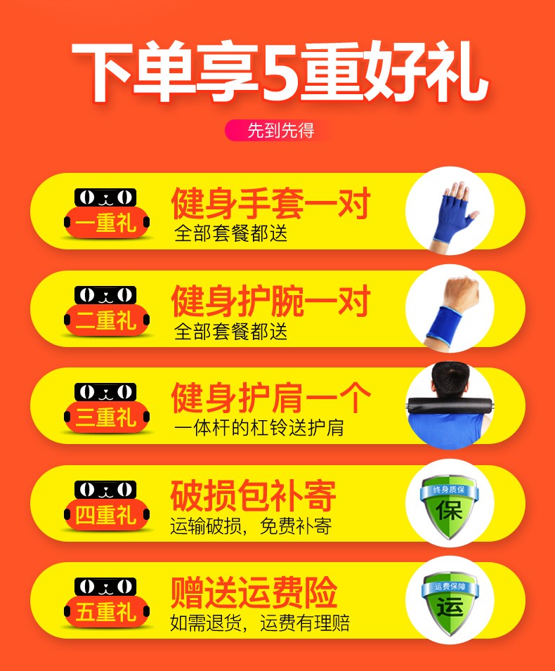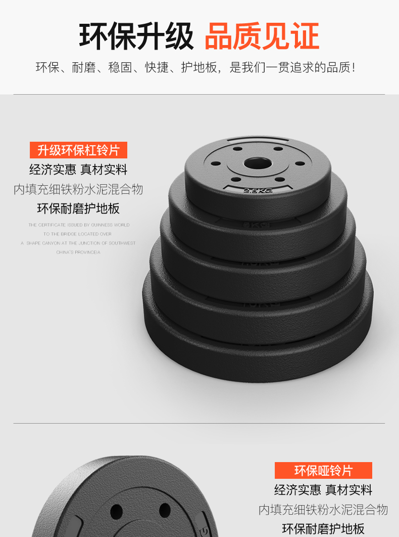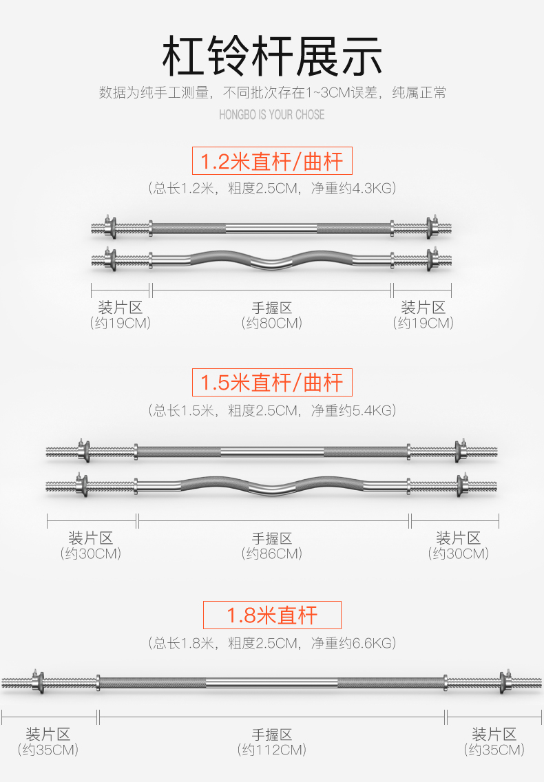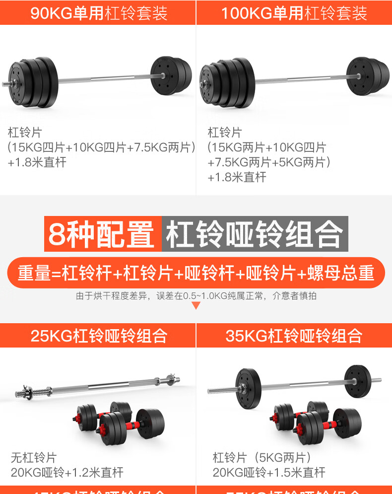 Hongbo men's home weightlifting barbell set environmentally friendly rubber-coated dumbbell combination arm muscle fitness equipment small hole straight bar 10KG dumbbell/can be assembled into a barbell