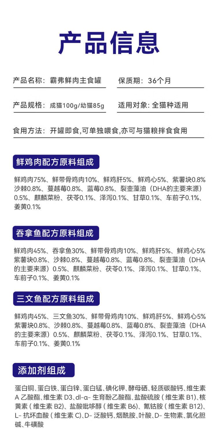McFoody Cat Canned Barf Fresh Meat Staple Food Canned Adult and Kitten General Cat Snacks Wet Food Mixed Pack 100g*6