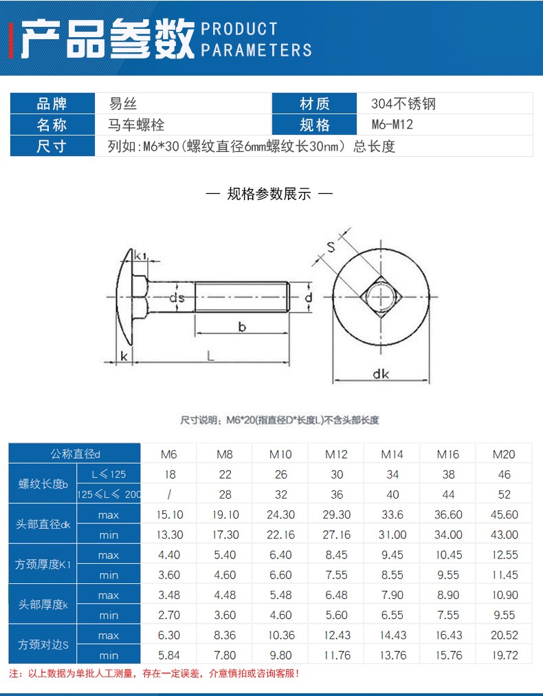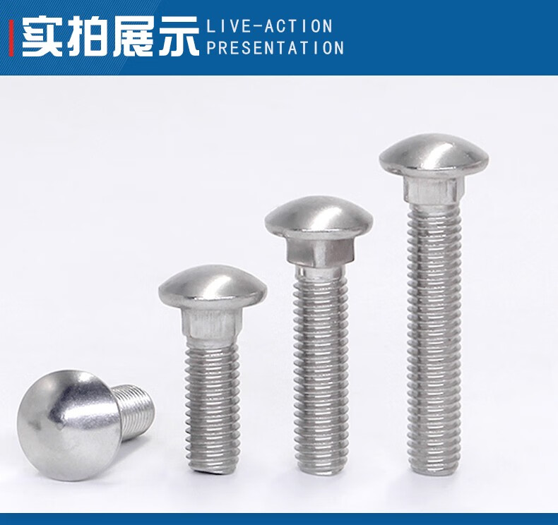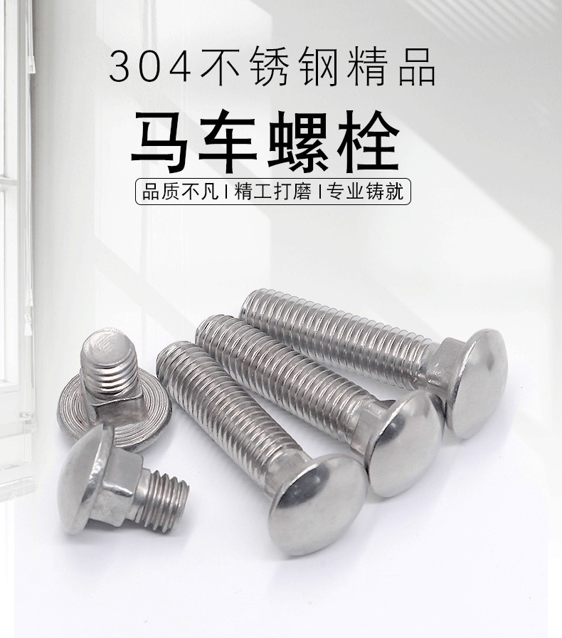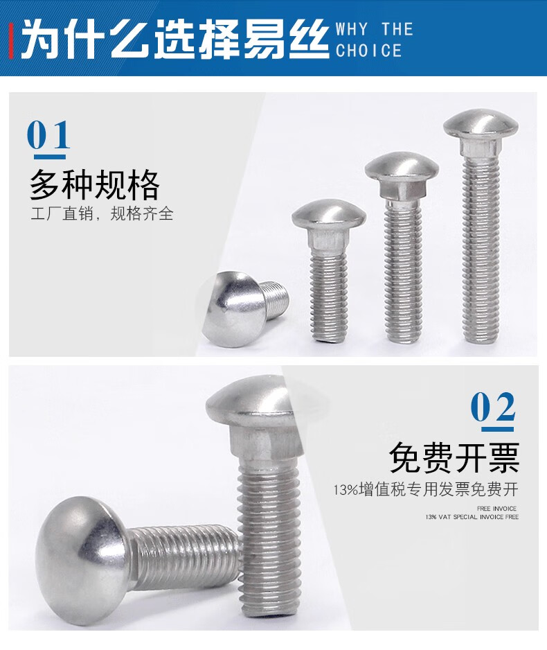 Yisi 304 stainless steel carriage screw large head screw semi-round head square neck bolt shelf screw M6M8M10M12 M6*50 (2 pieces) full teeth