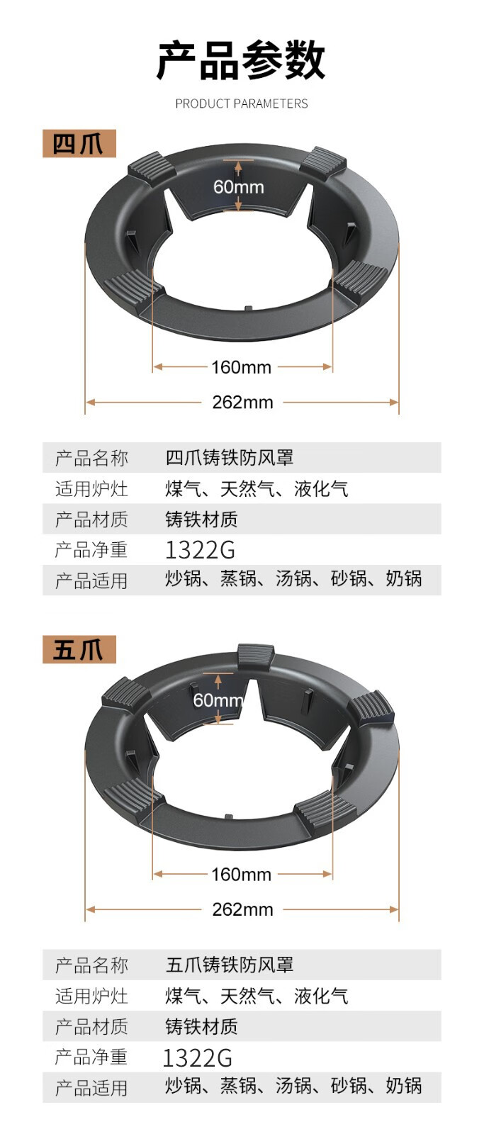 Maixiu cast iron gas stove fire cover gas stove windproof cover energy-saving cover household four-claw five-claw universal energy-saving cover 5-claw model stable and non-slip