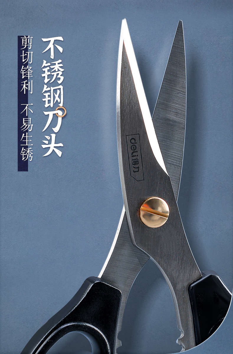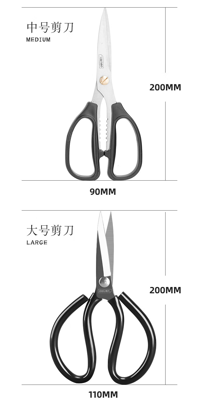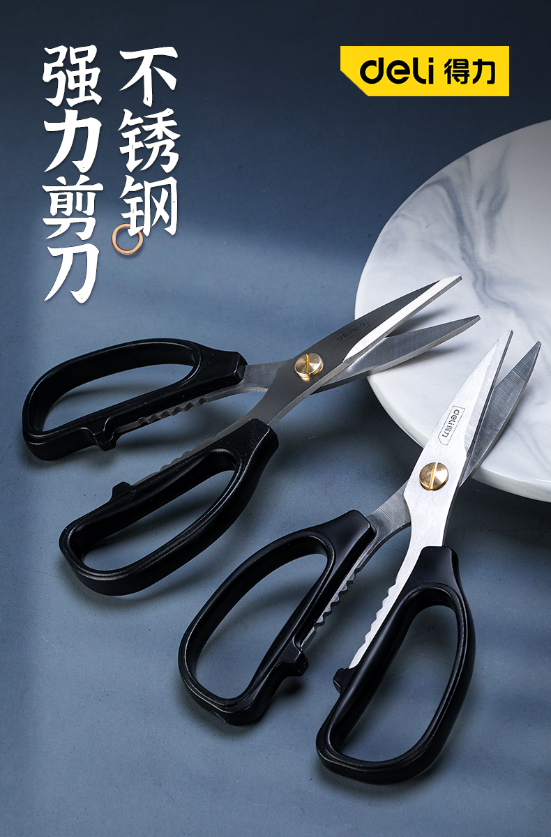 Deli scissors, household stainless steel scissors, civilian tailoring kitchen, strong size scissors, industrial office handmade paper cutting, strong model-200mm-ABS handle