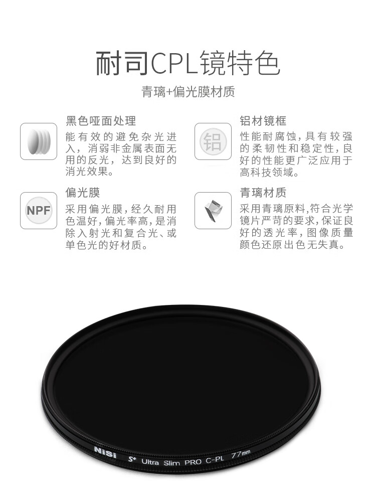 NiSi cpl polarizer 55mm ultra-thin frame high-definition anti-reflective filter polarizer restores color saturation landscape photography suitable for Canon and Sony micro-SLR cameras