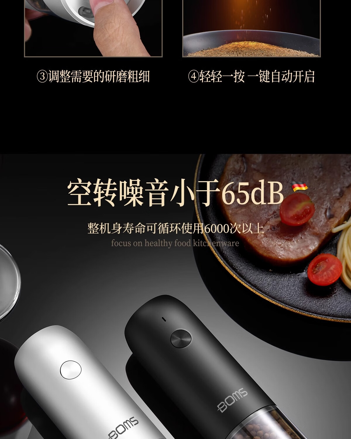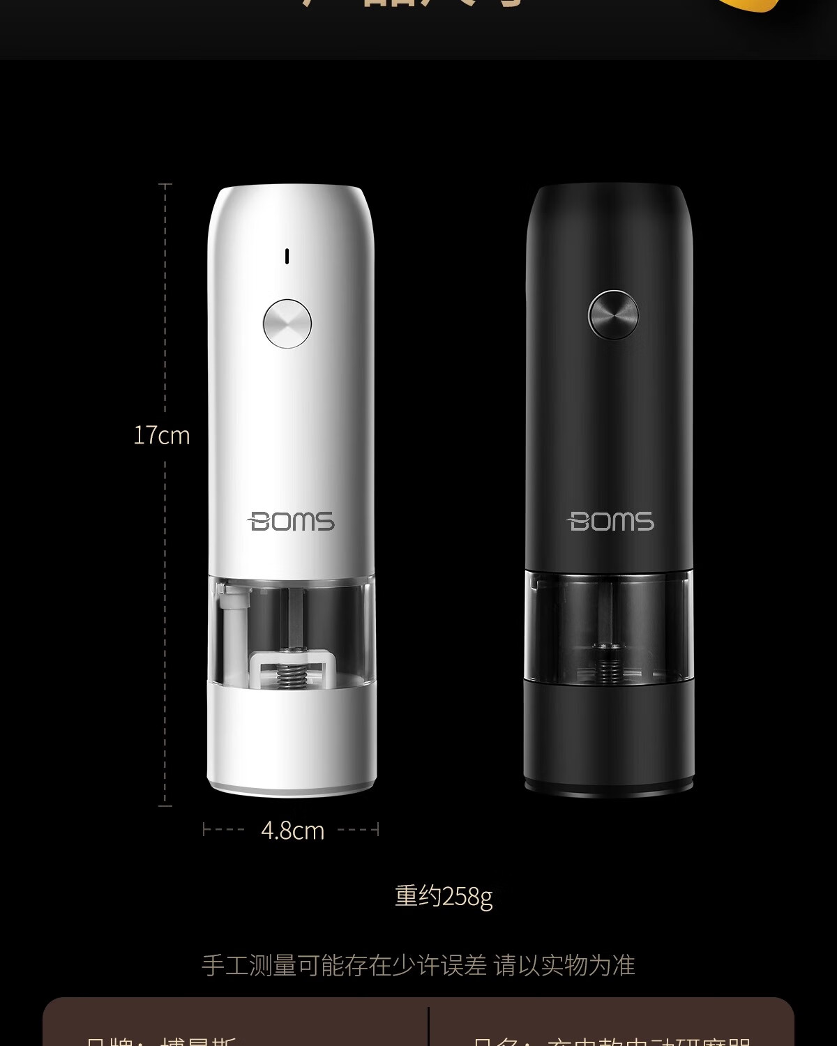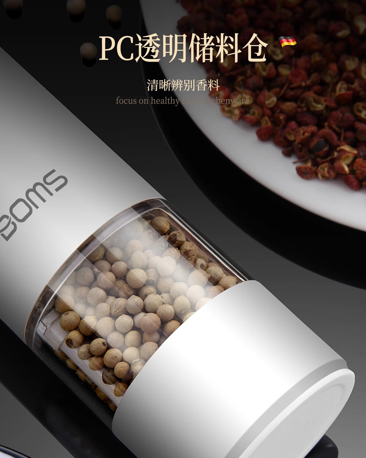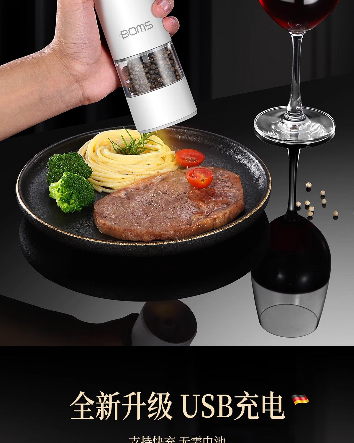 Bomans electric pepper grinder kitchen household sea salt pepper grinder seasoning automatic grinding artifact grinding bottle newly upgraded USB rechargeable grinder white