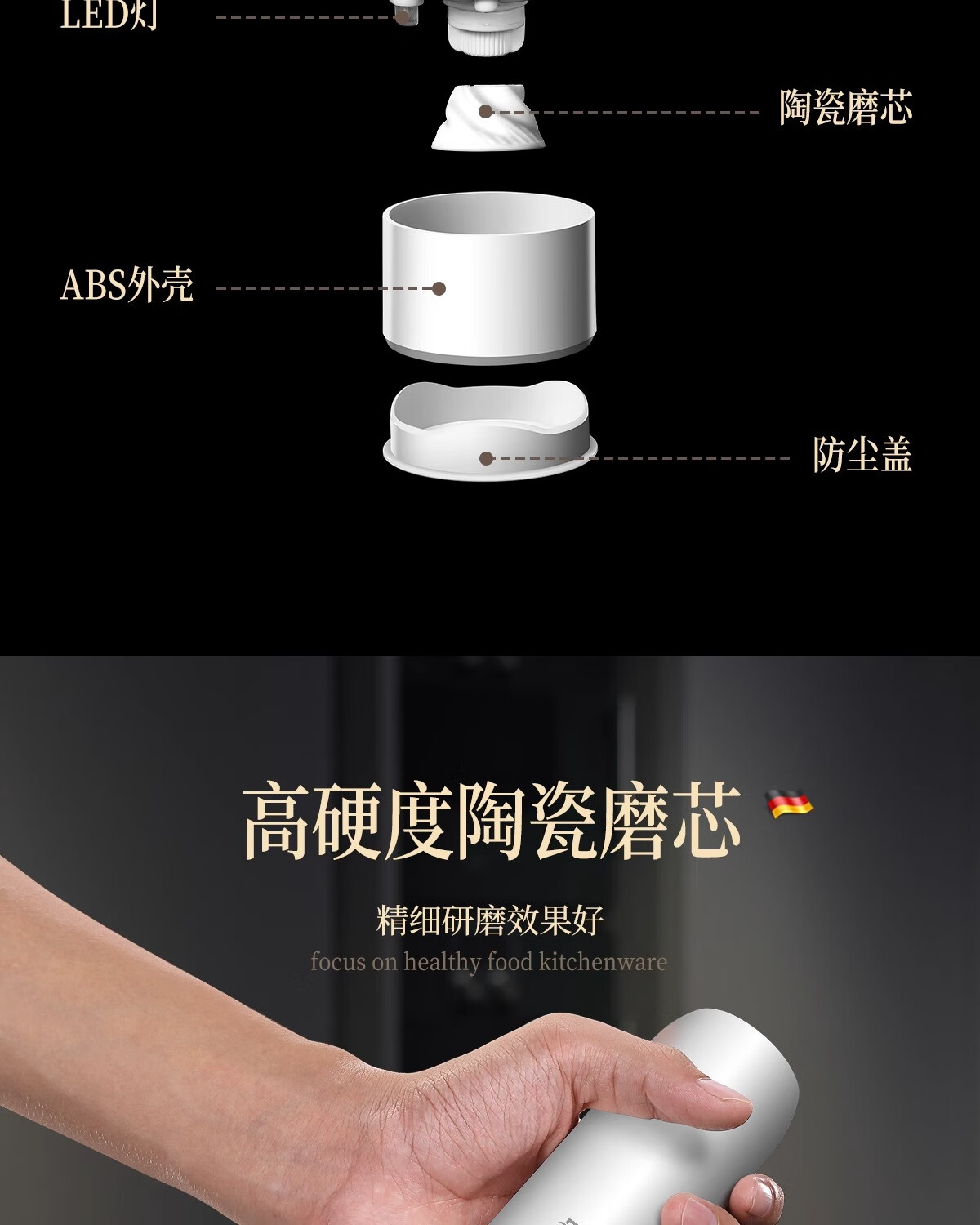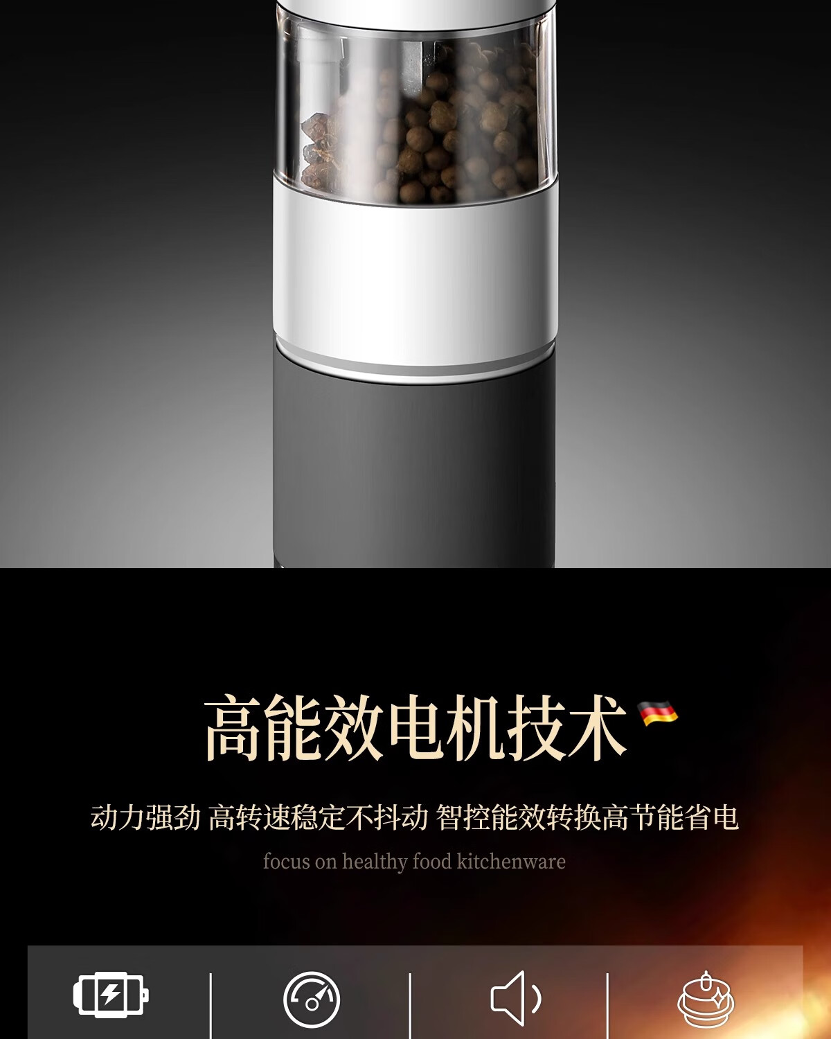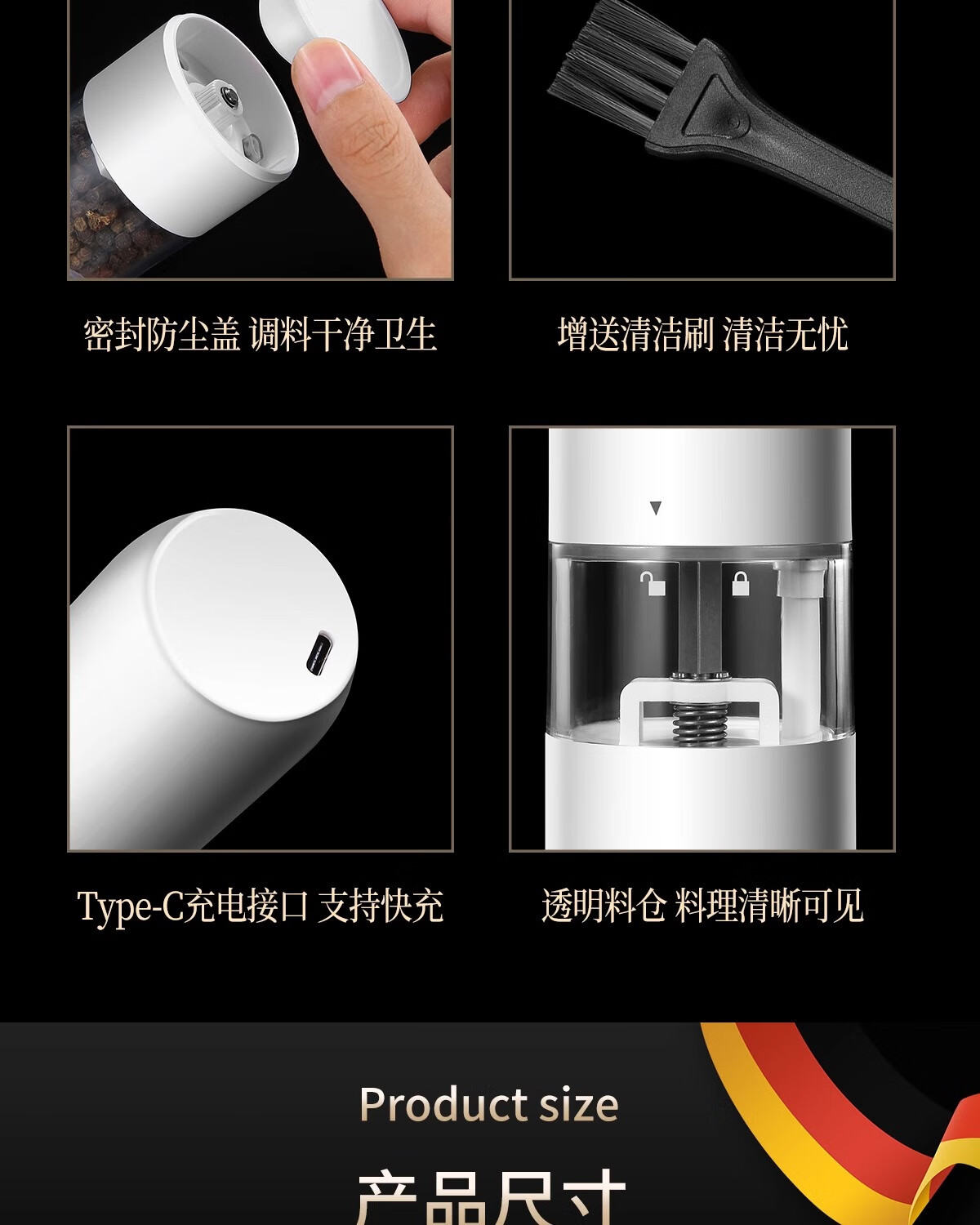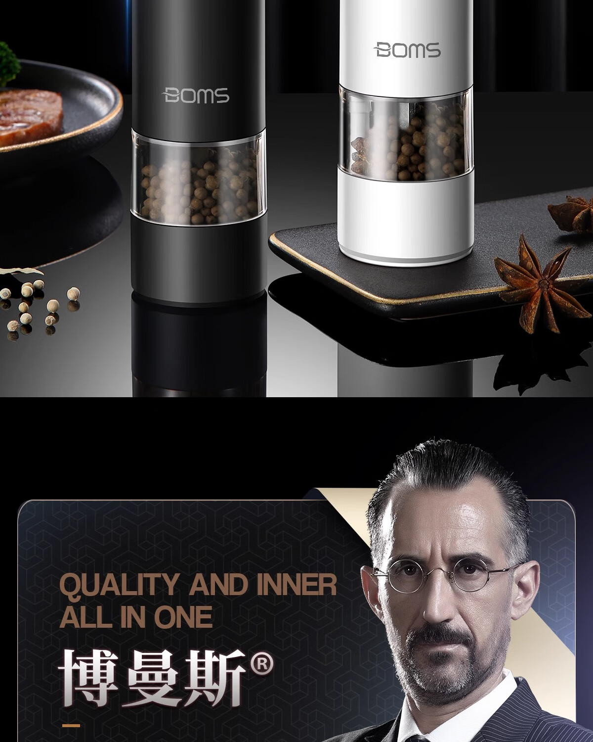 Bomans electric pepper grinder kitchen household sea salt pepper grinder seasoning automatic grinding artifact grinding bottle newly upgraded USB rechargeable grinder white