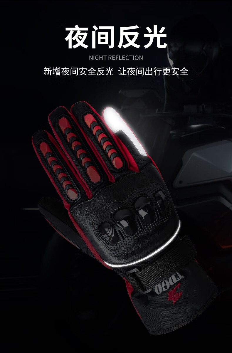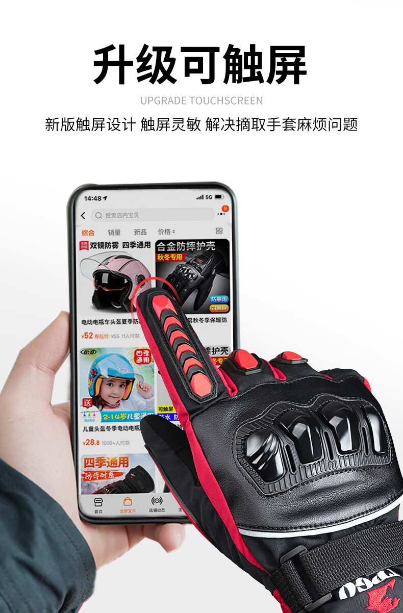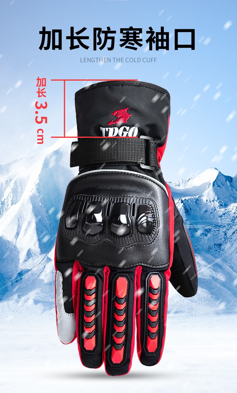 TDGO motorcycle riding gloves autumn and winter waterproof, warm and anti-fall touch screen motorcycle gloves for men, autumn and winter velvet thickened style - red - touch screen XL (suitable for palm width 10-12CM)