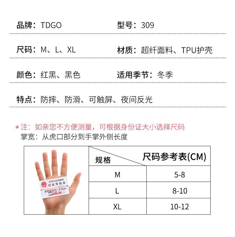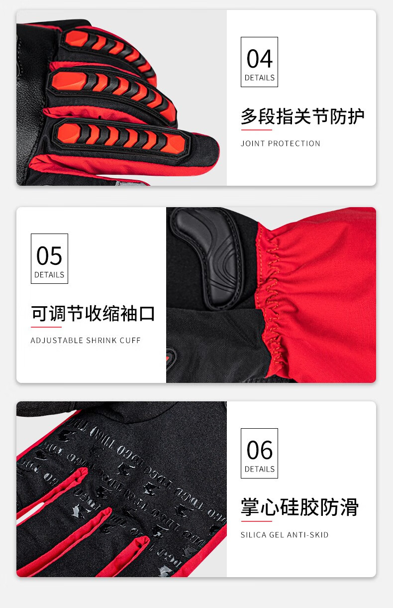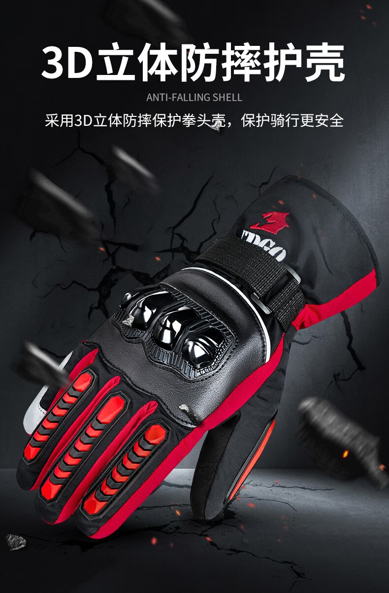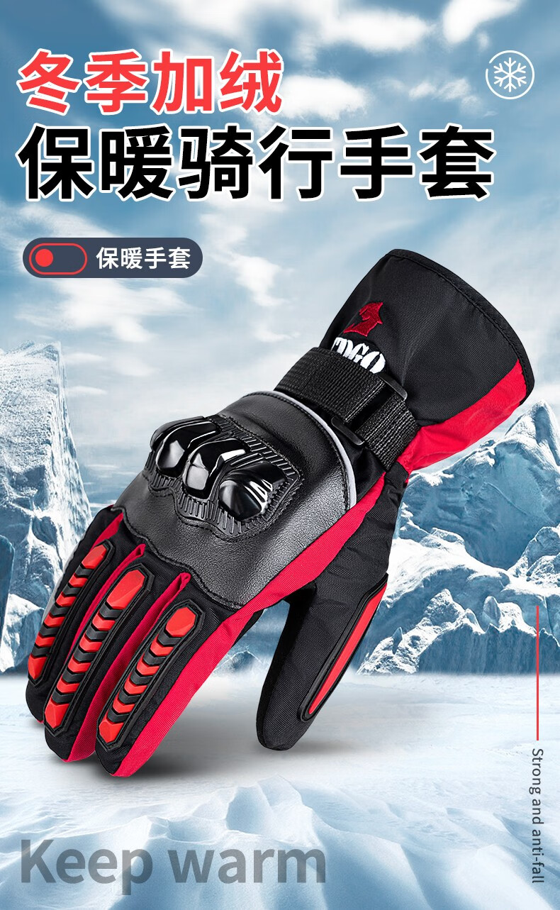 TDGO motorcycle riding gloves autumn and winter waterproof, warm and anti-fall touch screen motorcycle gloves for men, autumn and winter velvet thickened style - red - touch screen XL (suitable for palm width 10-12CM)