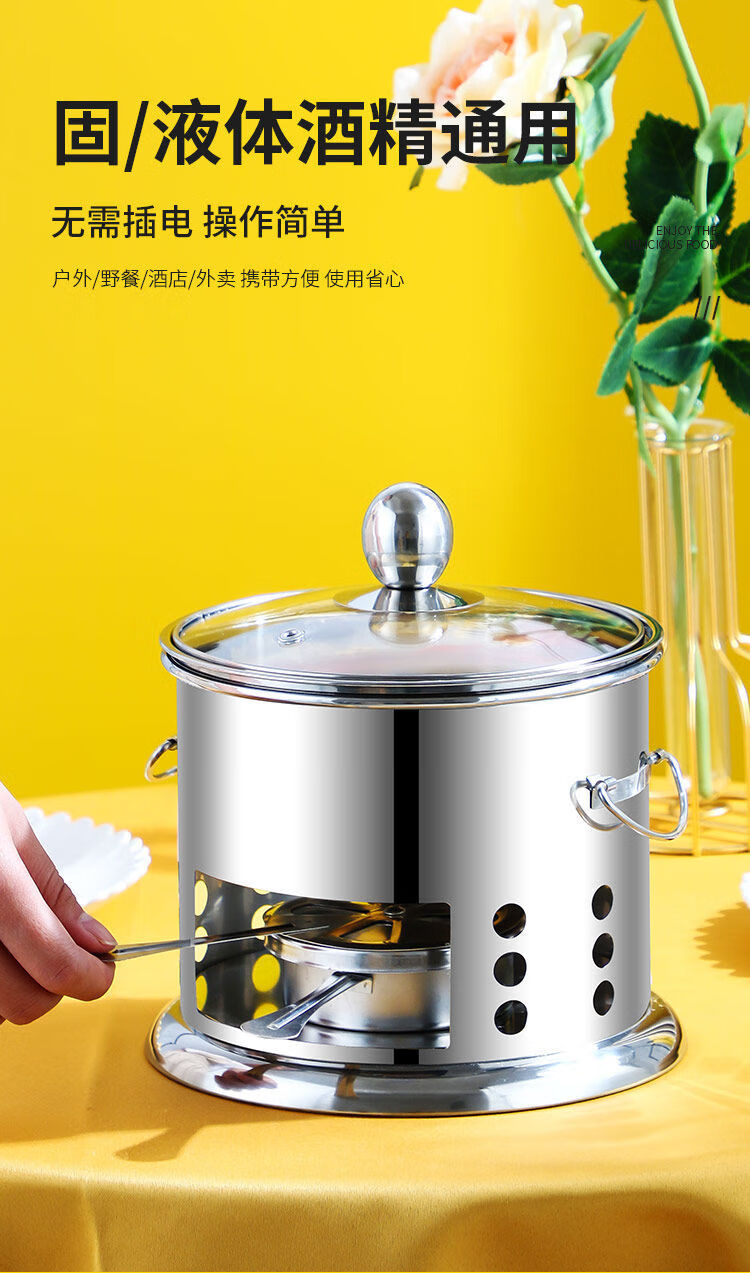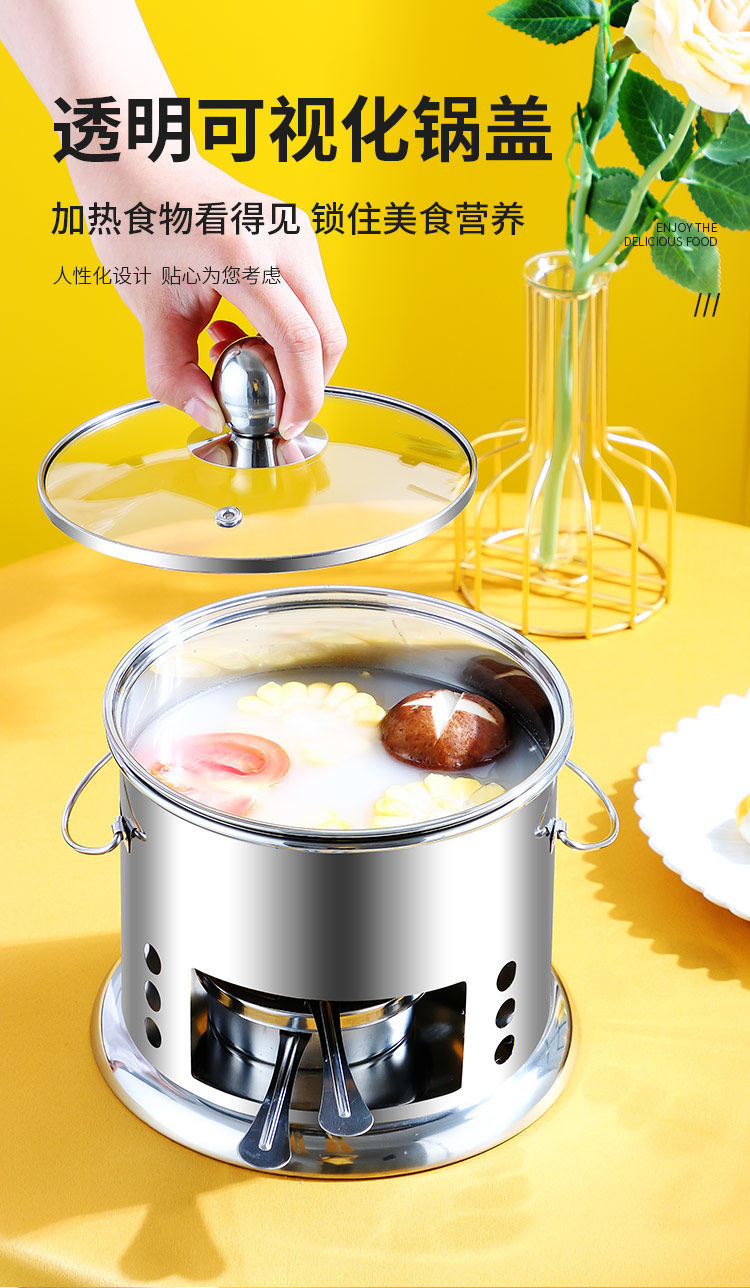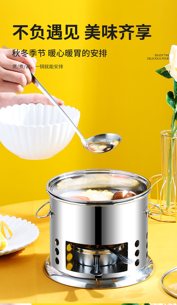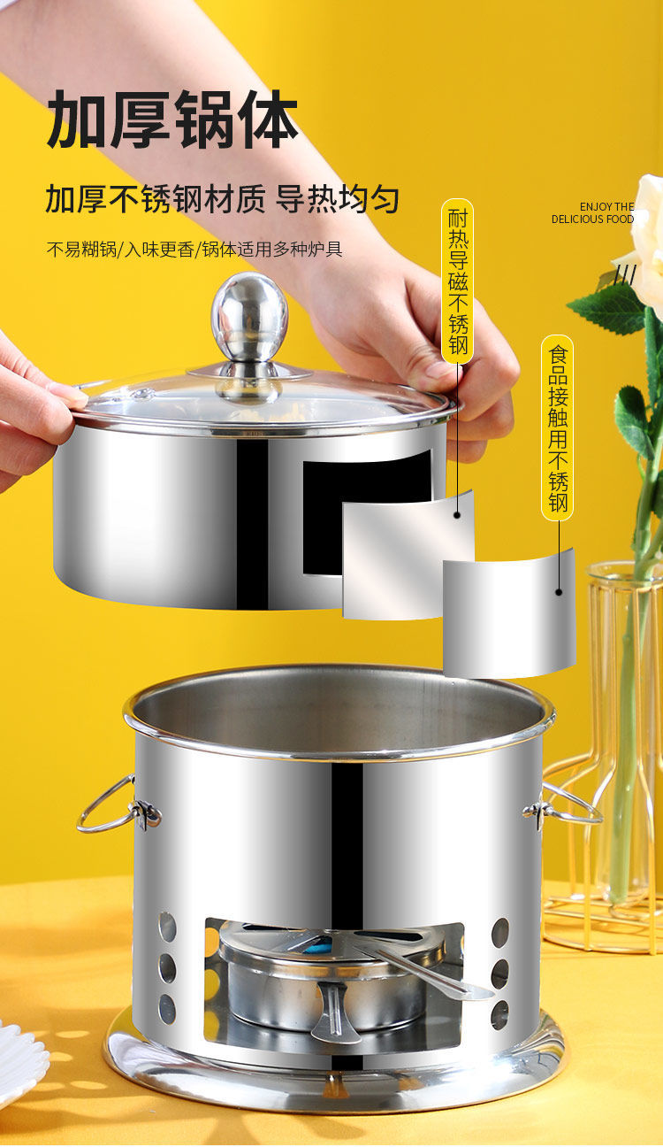 Shenfu alcohol stove small hot pot single double hot pot side stove shabu shabu pot outdoor picnic windproof stove takeaway alcohol pot set stove 16cm