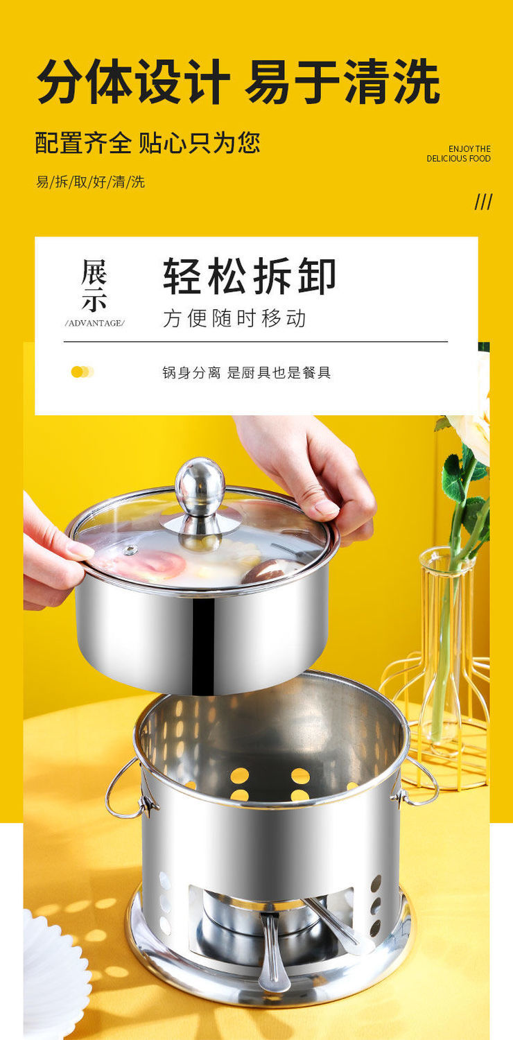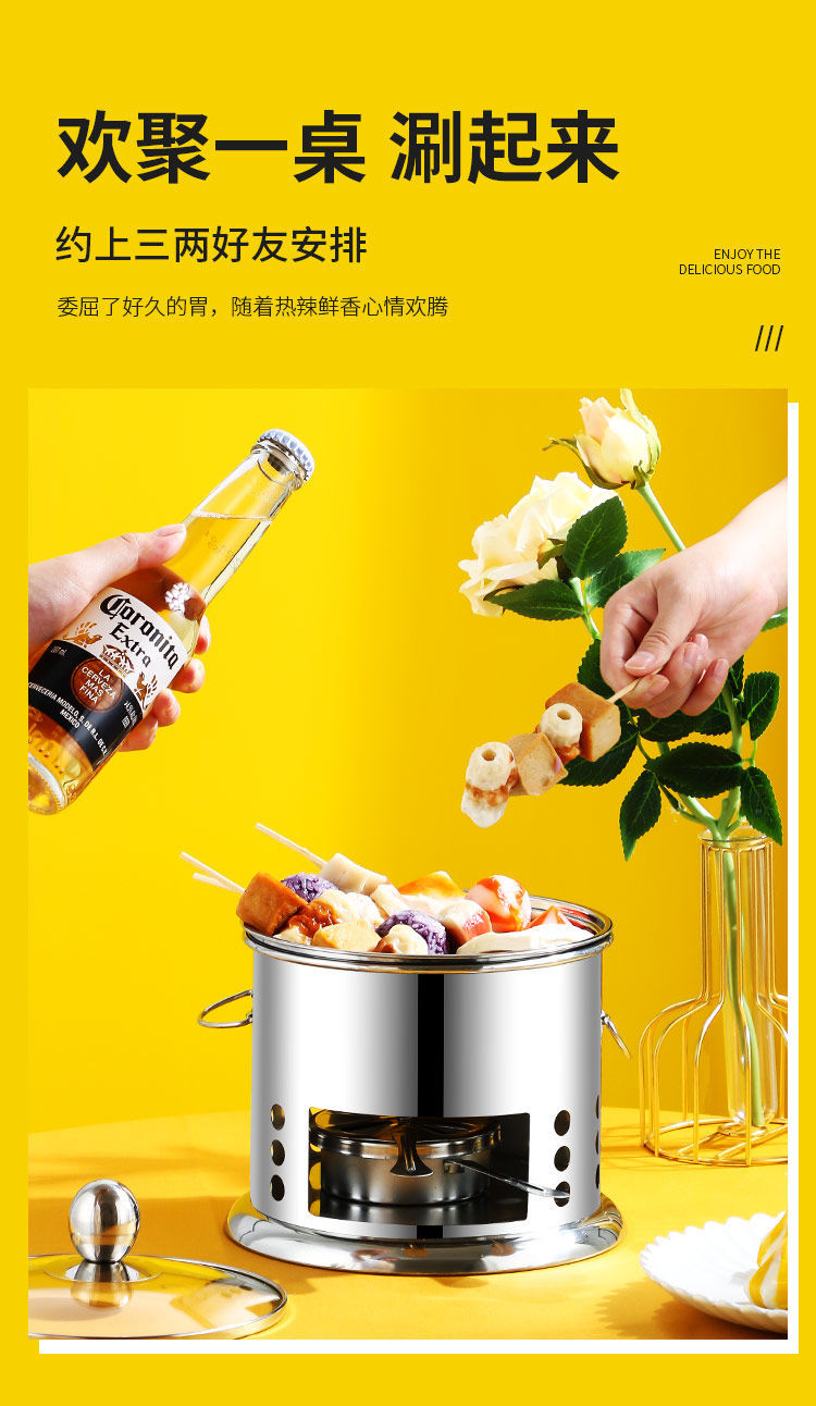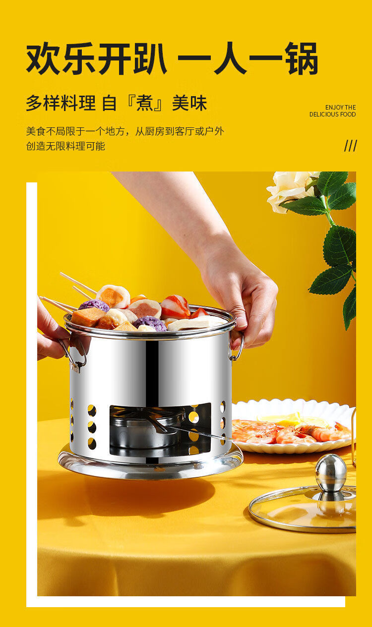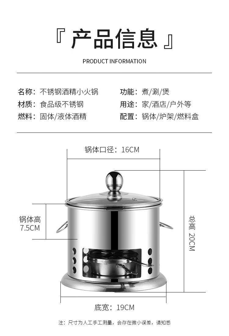 Shenfu alcohol stove small hot pot single double hot pot side stove shabu shabu pot outdoor picnic windproof stove takeaway alcohol pot set stove 16cm