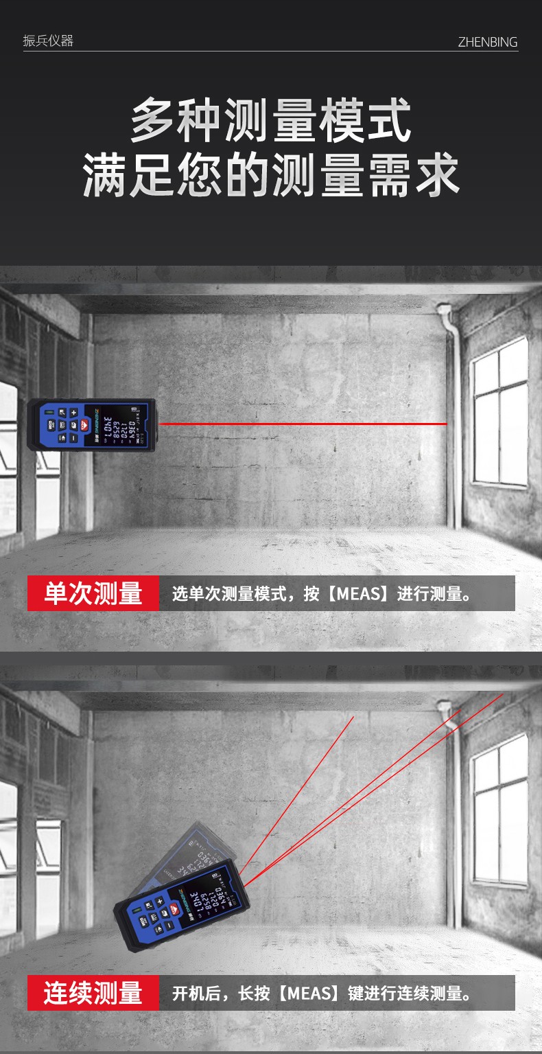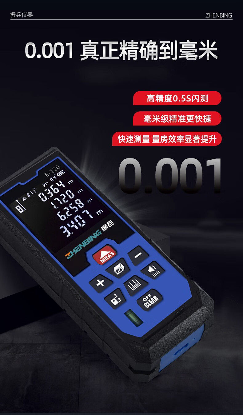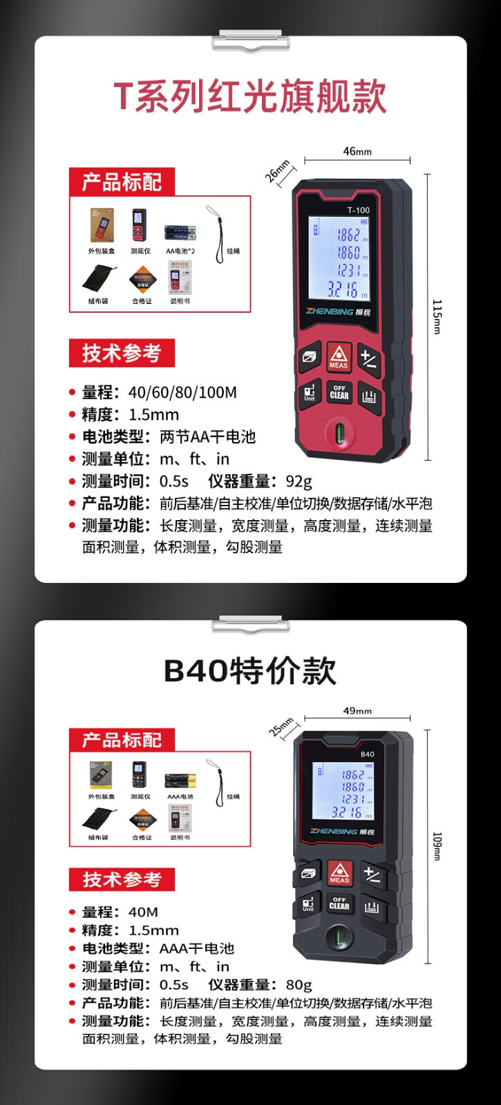 Zhenbing laser range finder handheld high-precision electronic ruler infrared measuring instrument measuring room instrument distance measuring ruler Kaiyun red light 40 meters (universal horizontal)