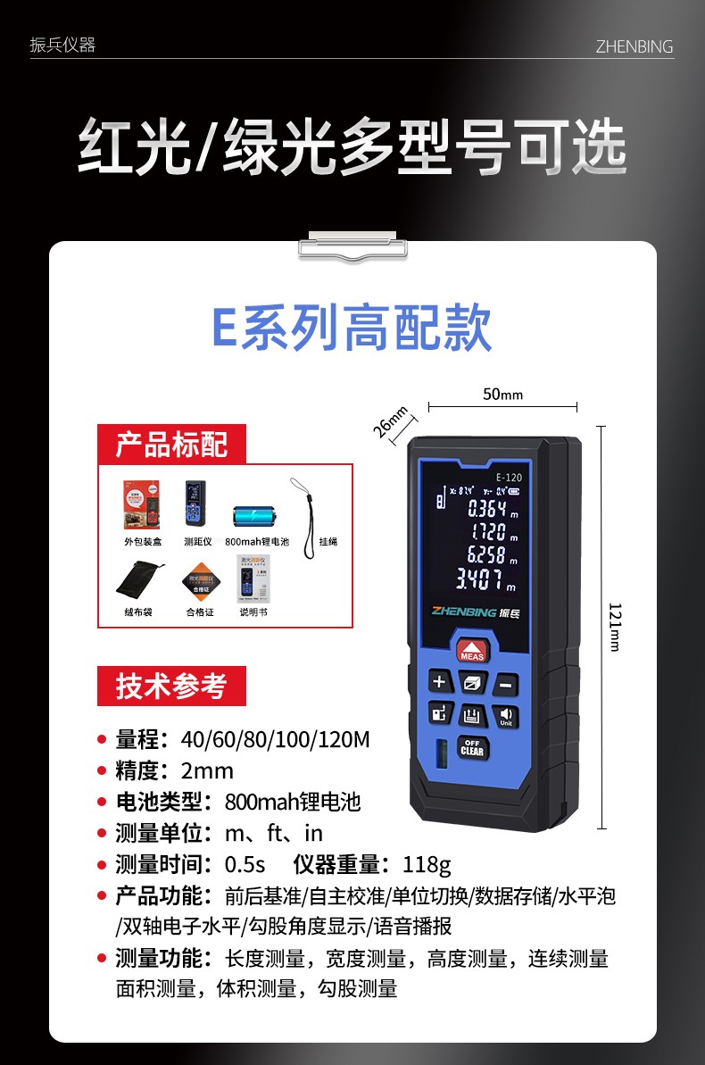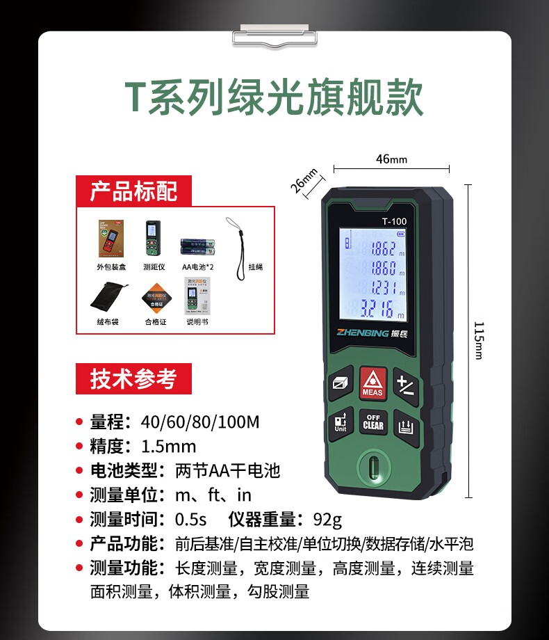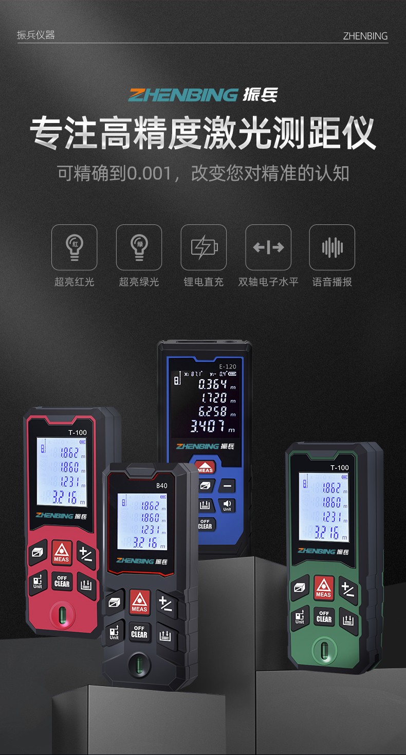 Zhenbing laser range finder handheld high-precision electronic ruler infrared measuring instrument measuring room instrument distance measuring ruler Kaiyun red light 40 meters (universal horizontal)