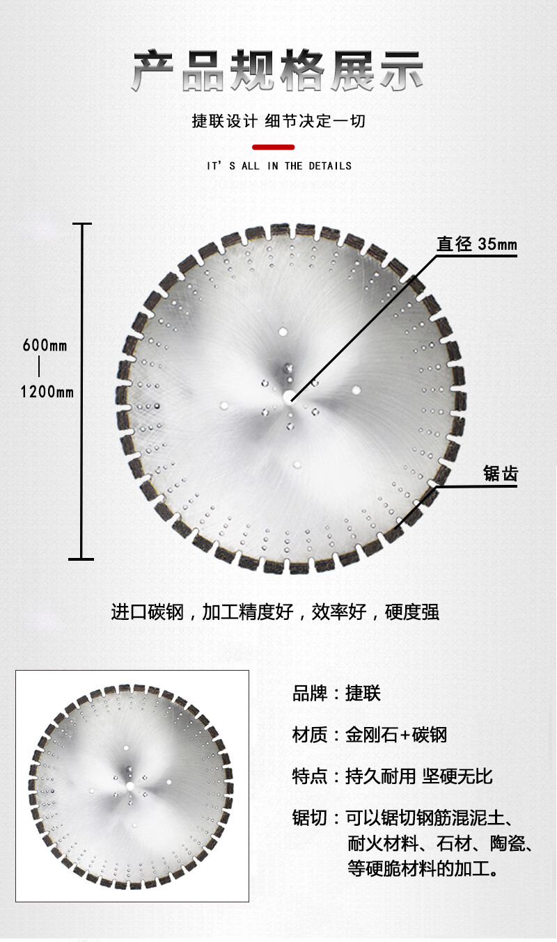 Strapdown wall cutting machine saw blade diamond alloy containing cobalt sharp wear-resistant reinforced concrete wall cutting machine wall saw 800mm