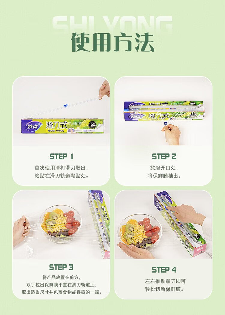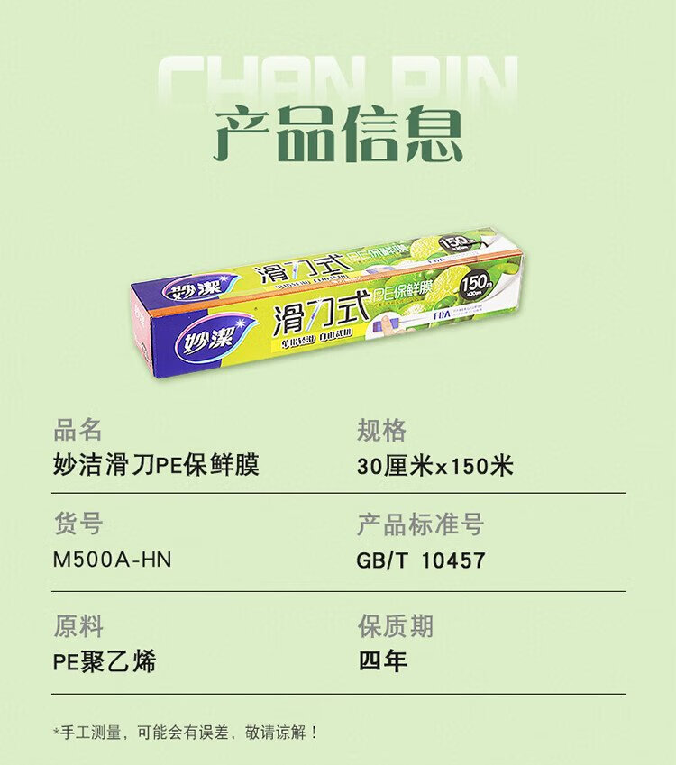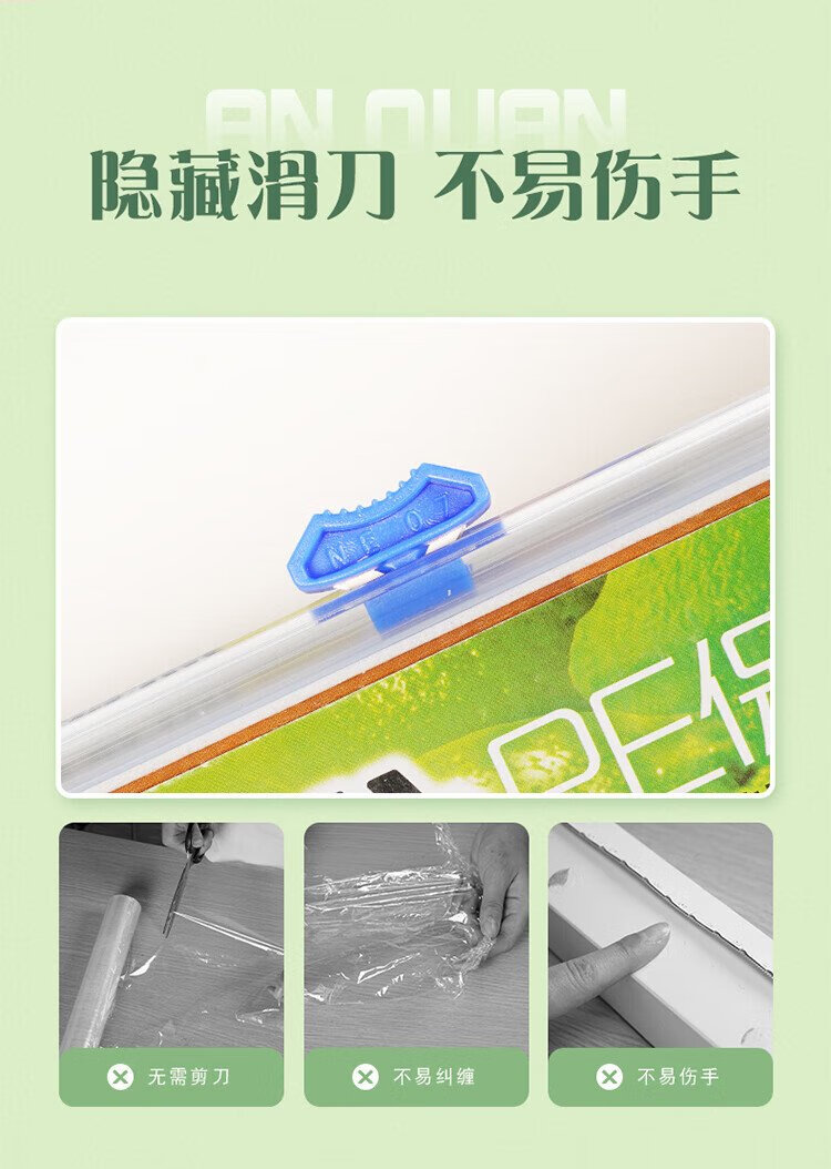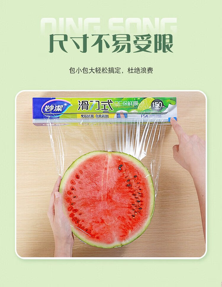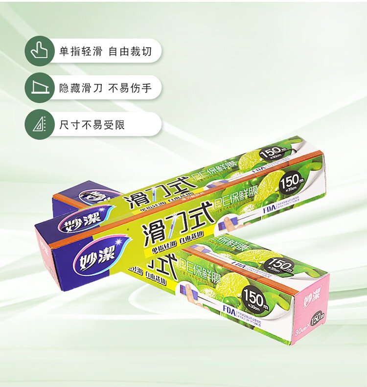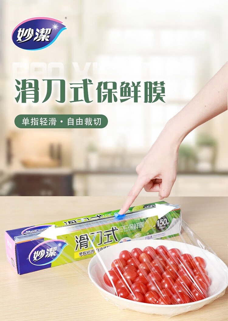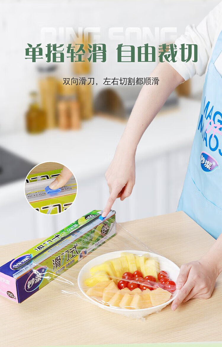 Miaojie cling film sliding knife cutting, drag and slide smoothly, two-way sliding knife, sliding knife cling film 150 meters + refill 150 meters