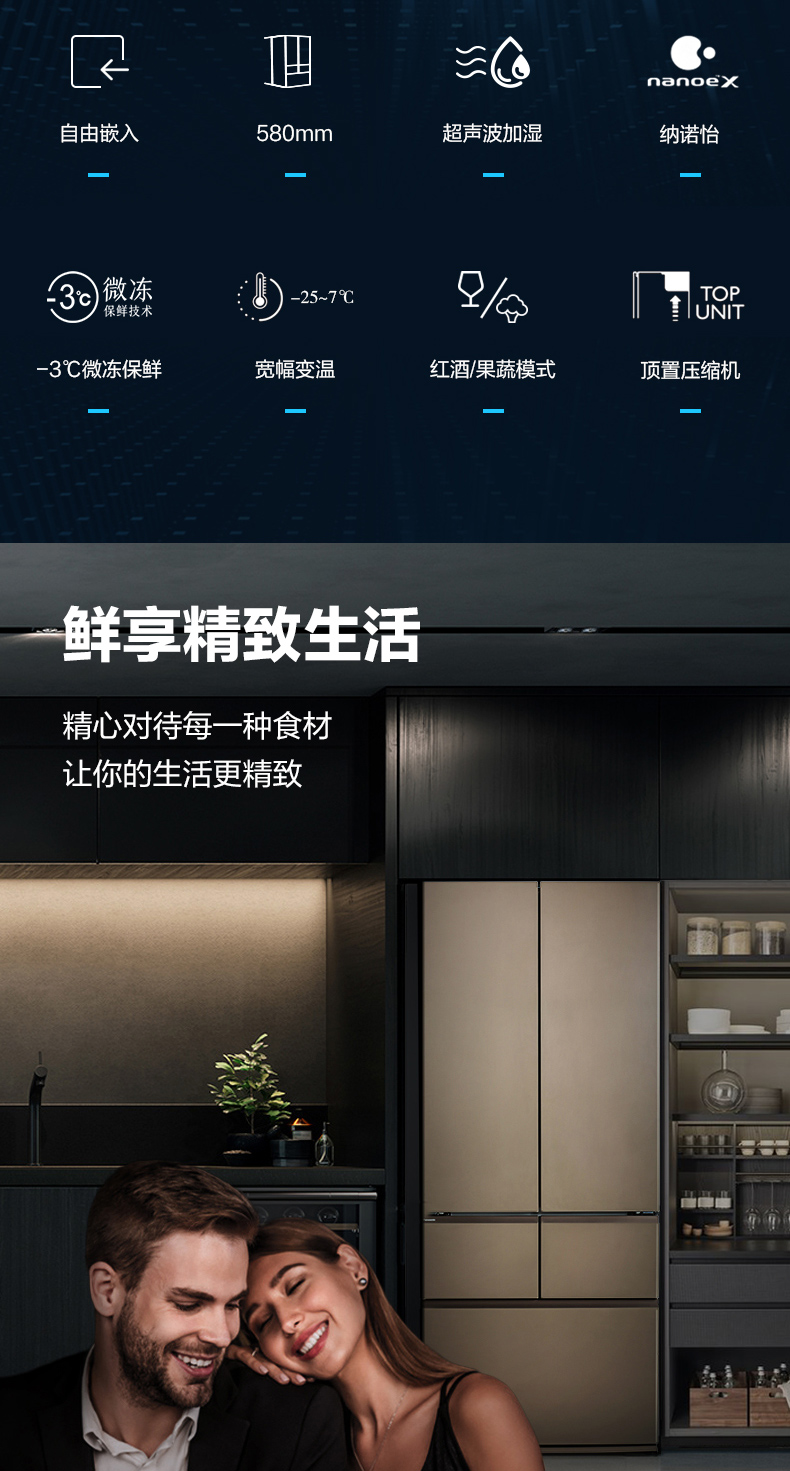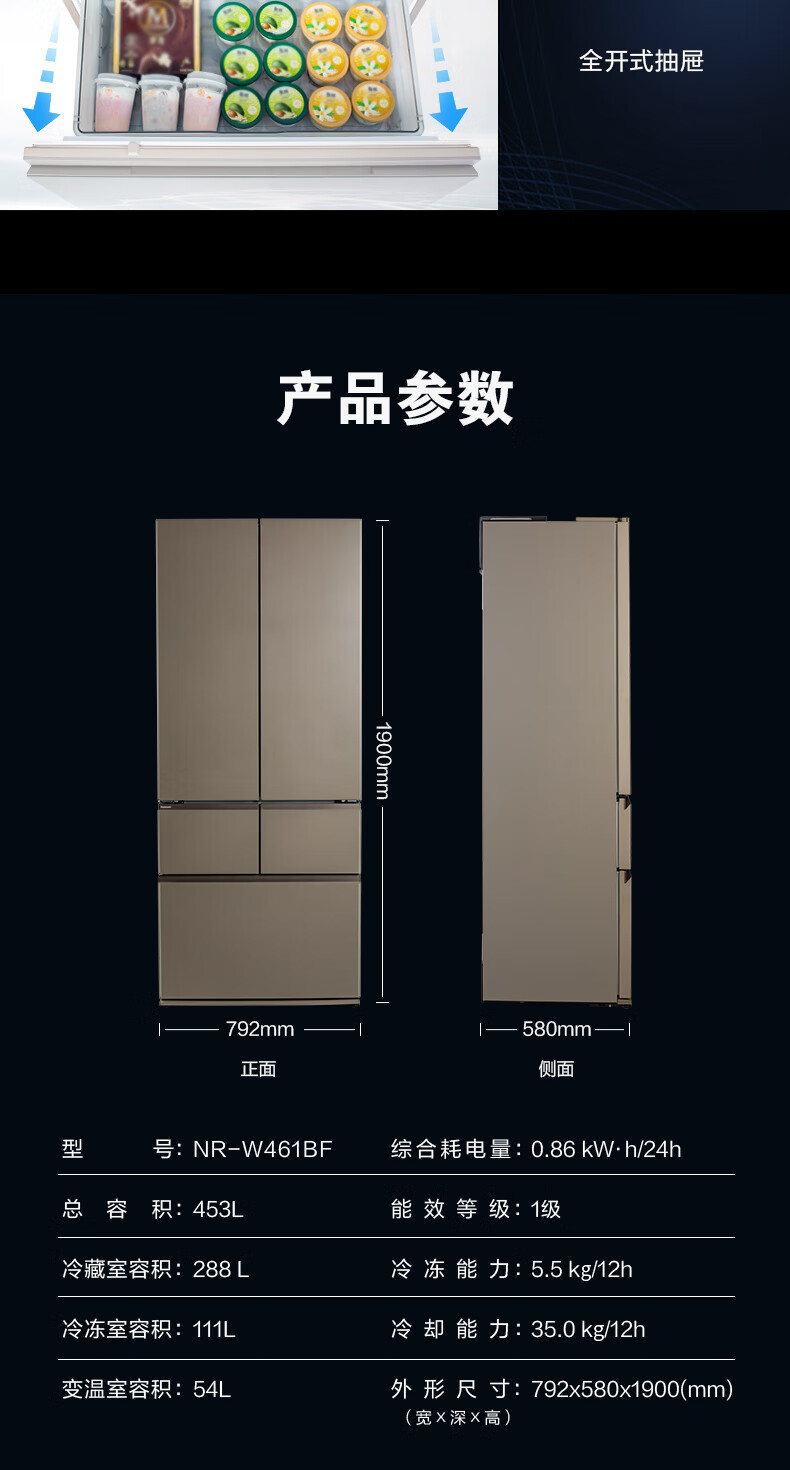 Panasonic built-in ultra-thin refrigerator 58cm 453L multi-door refrigerator Ultrasonic humidification and preservation Nanoyi deodorization and sterilization Pearl white with automatic ice maker NR-EW45TGA-W