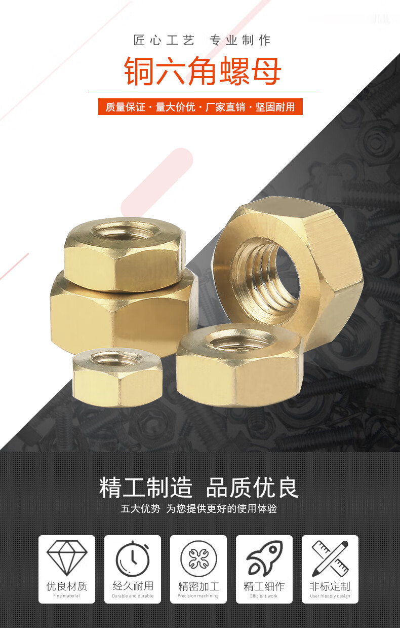 Baodefeng copper hexagonal nut, copper nut, brass screw cap collection, national standard fastener standard parts collection, M1.6 100 pieces
