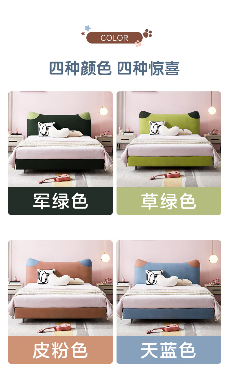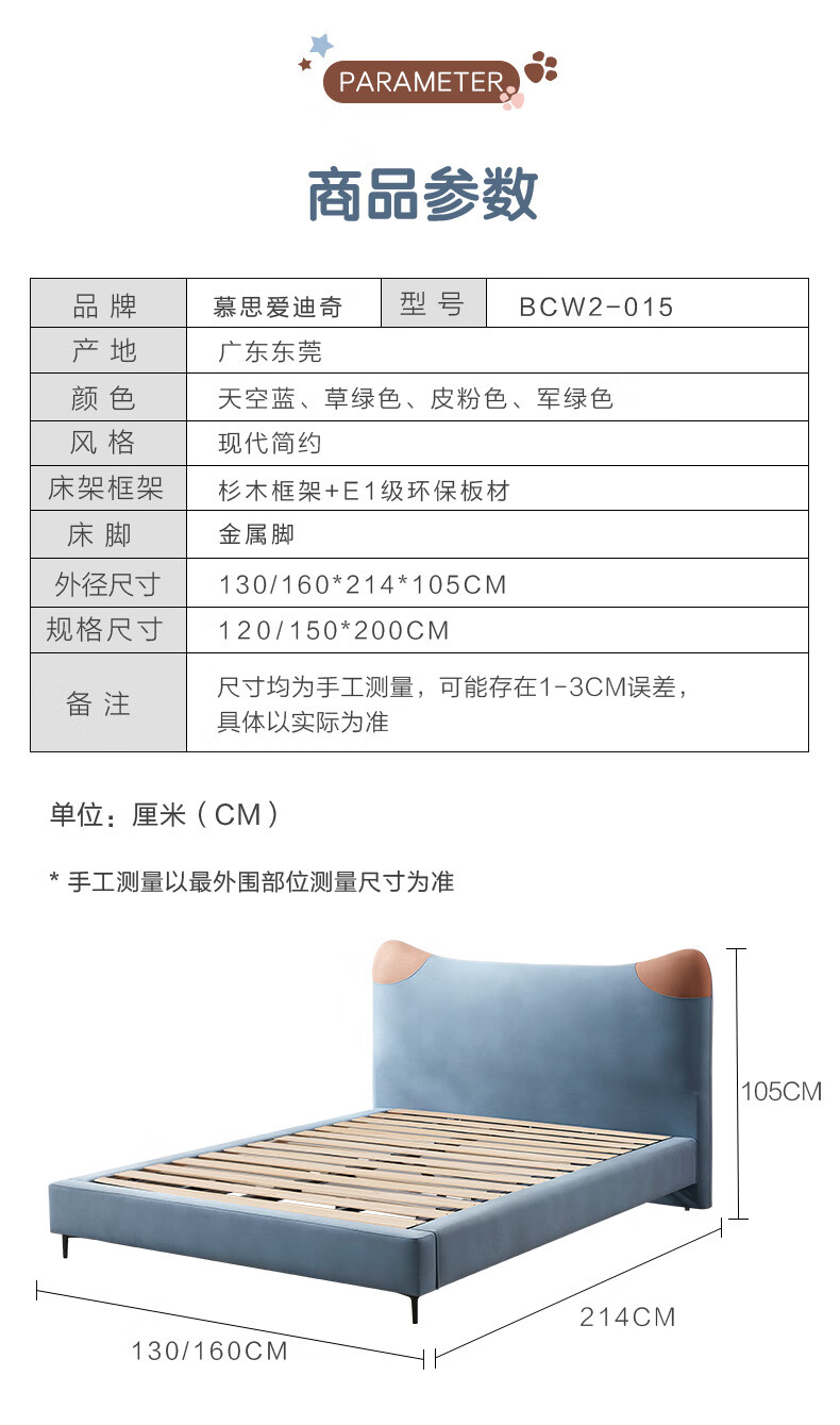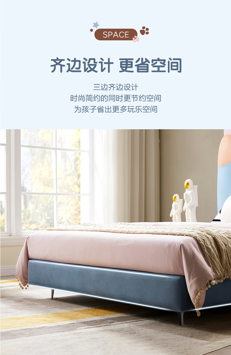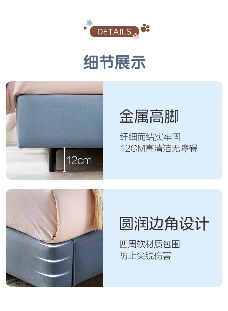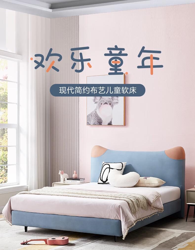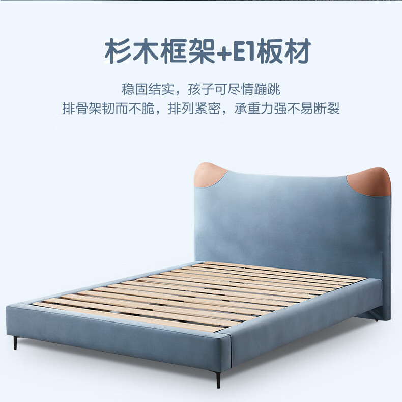 Mousse (de RUCCI) Children's Bed Edici Bedroom Furniture Modern Simple 1.2m Single Bed Technology Cloth Boys and Girls Children's 1.5m Bed Edged Style/Sky Blue Children's Bed-BCW2-015 1500mm*2000mm