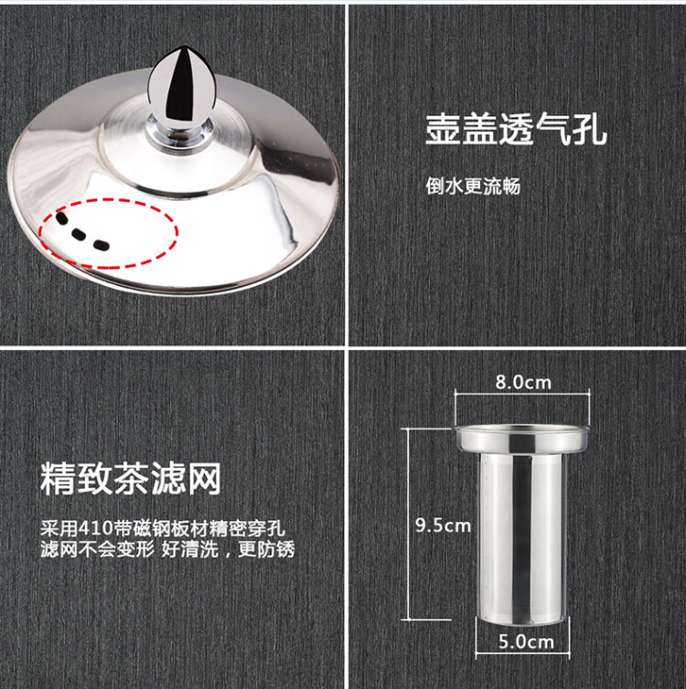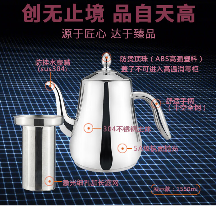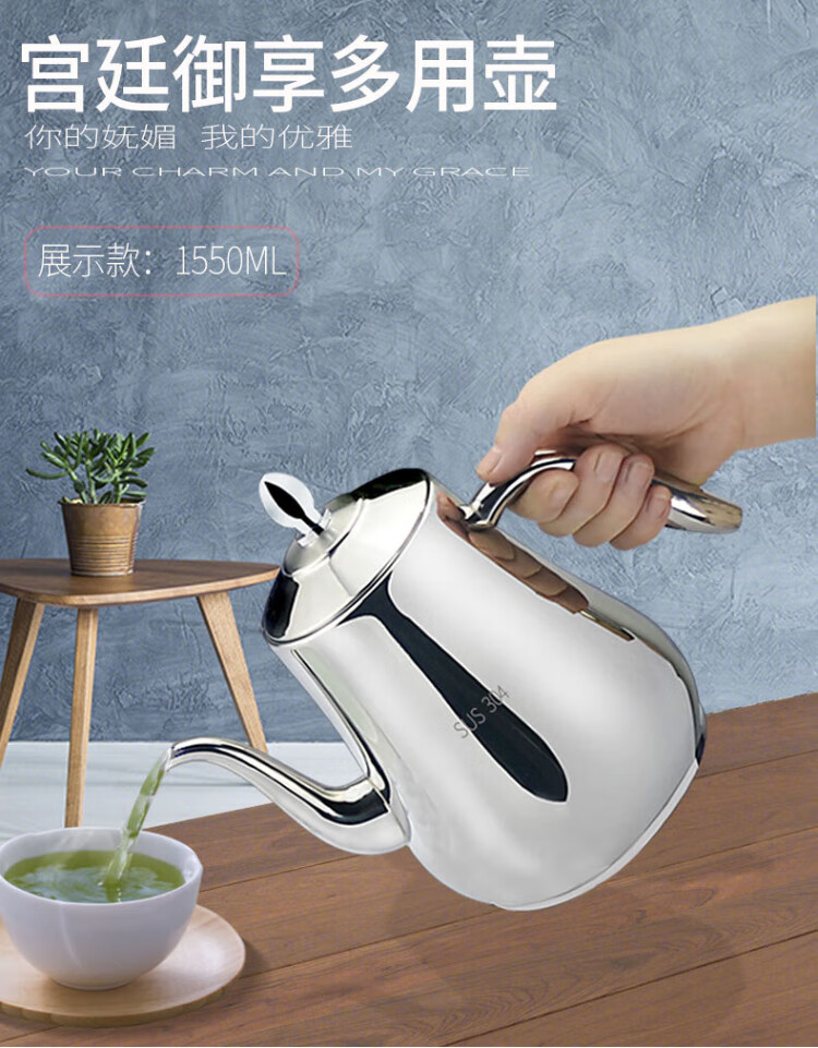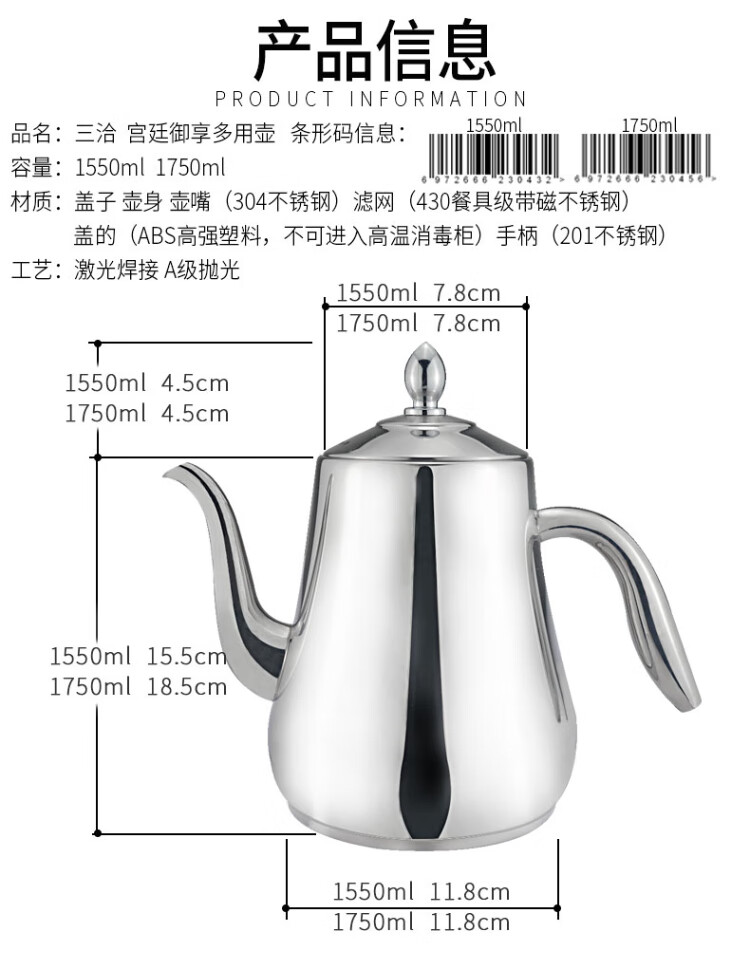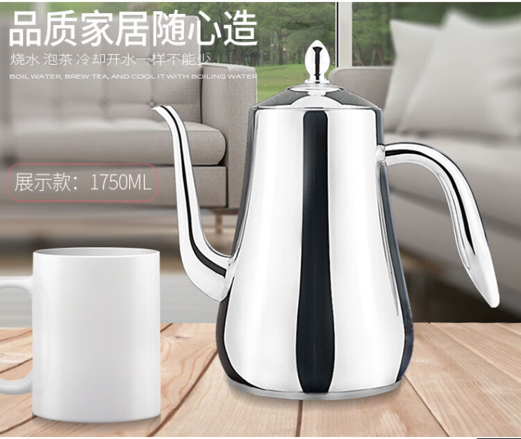 SANQIA 304 stainless steel teapot, induction cooker, kettle, restaurant tea kettle with mesh, household cold kettle, cold boiling kettle, 1.75L without filter, 1750ml