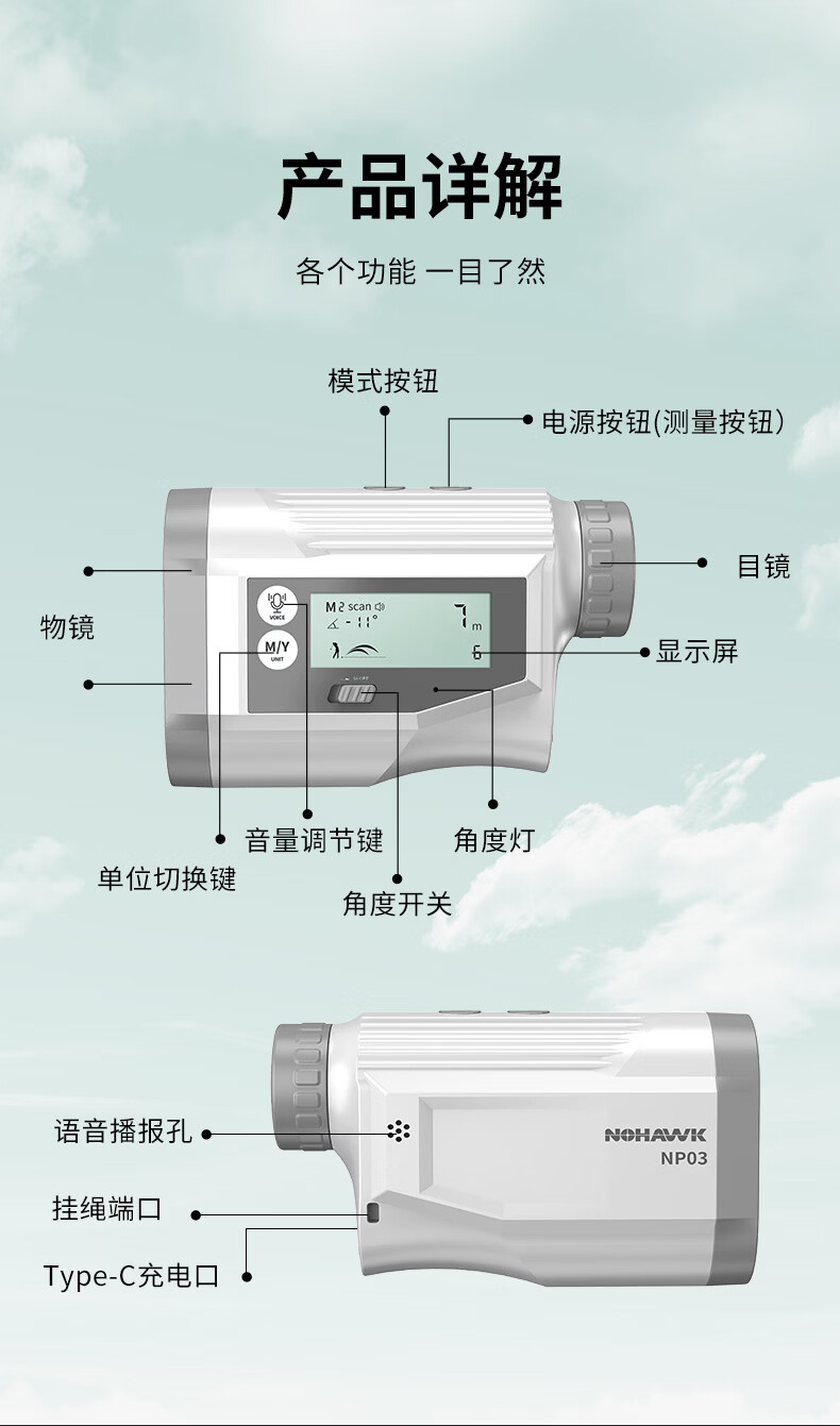 Nohawk outdoor golf rangefinder telescope flagpole locking electronic ruler home outdoor long-distance measuring instrument NKG-600Y golf-specific range measurement/angle + golf + flagpole lock