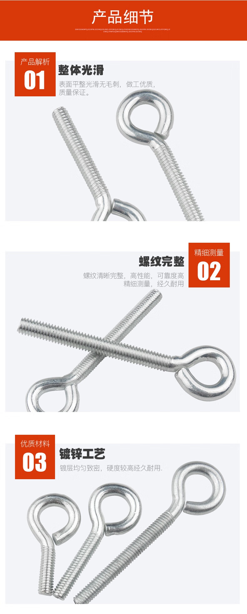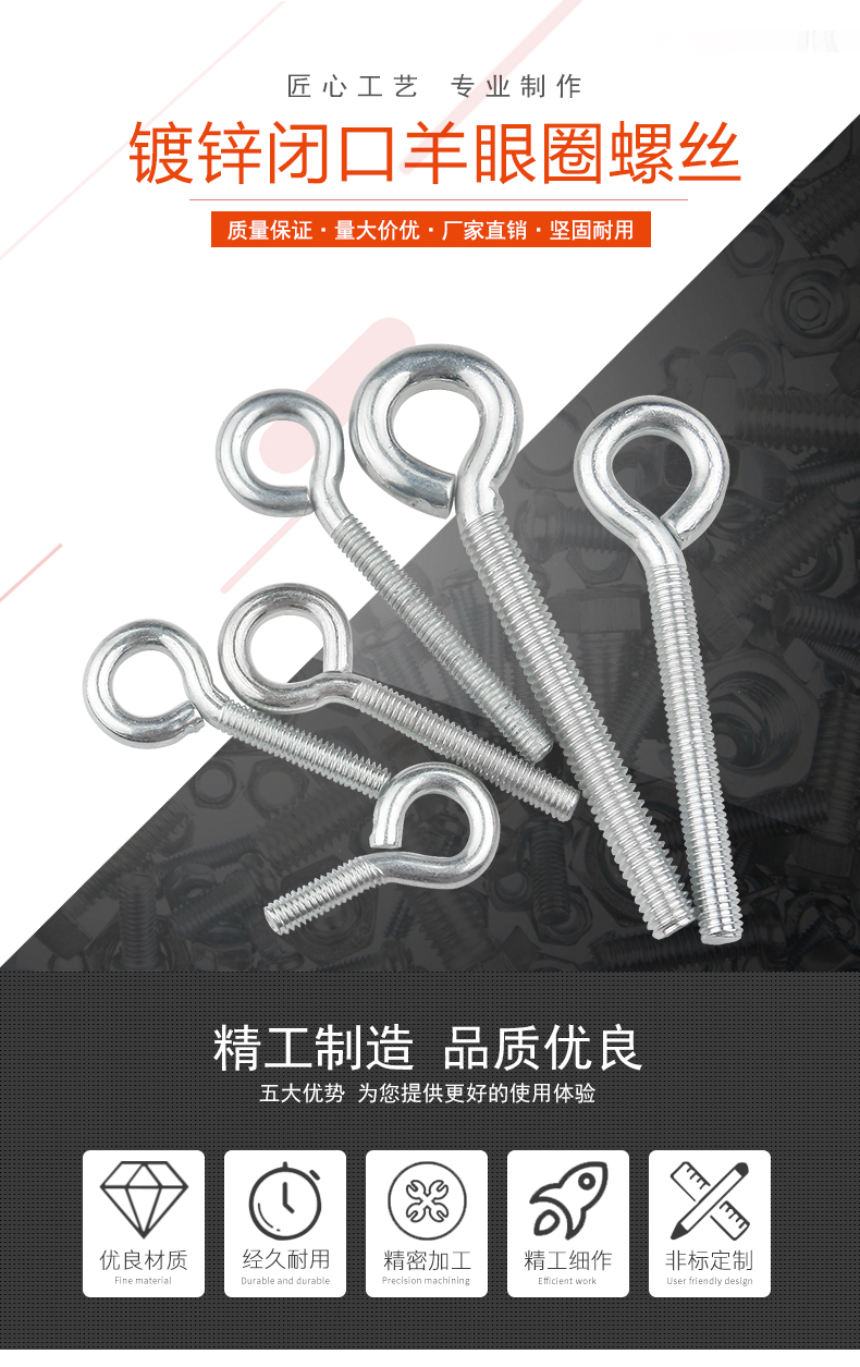 Baodefeng iron white zinc lifting ring screw with ring hook ring bolt nut closed sheep eye machine tooth screw M10X60 1 piece