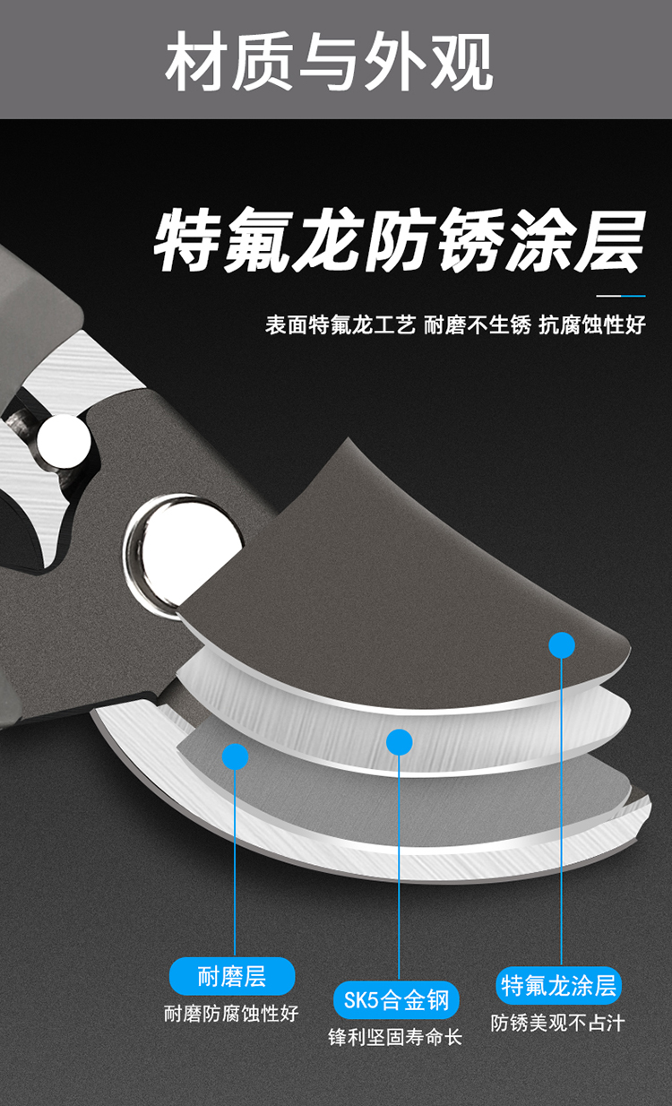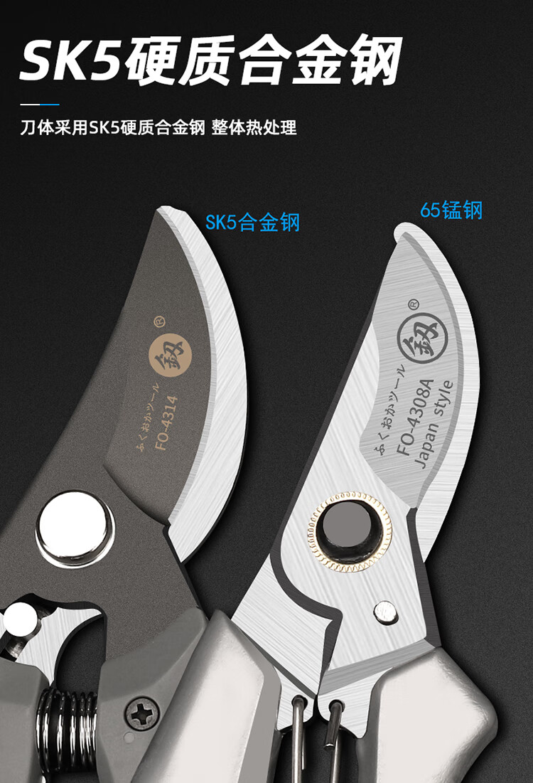 Japanese Fukuoka garden scissors pruning thick branch shears German labor-saving fruit tree flower branch shears fruit picking scissors 200mm powerful pruning shears 4308A