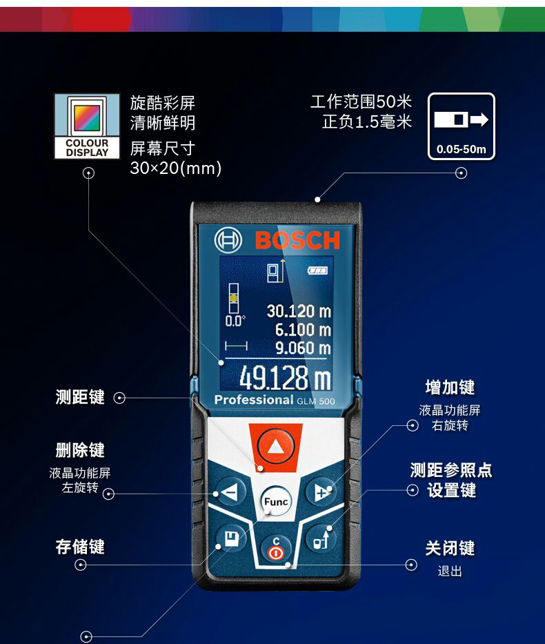 Bosch Laser Distance Meter GLM500 Infrared Distance Meter Doctoral Measurement Room Distance Meter Electronic Ruler Laser Ruler GLM50-23G Green Light Distance Meter 50 Meter Green Diamond