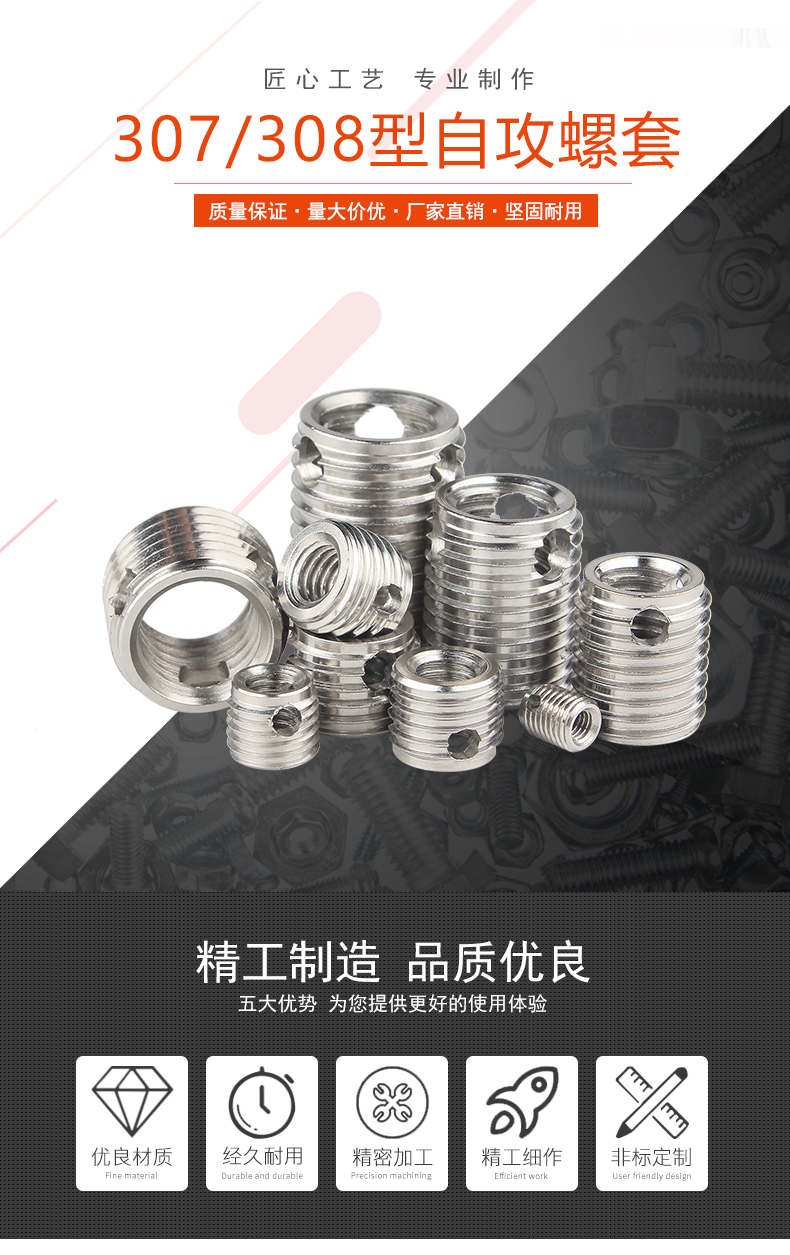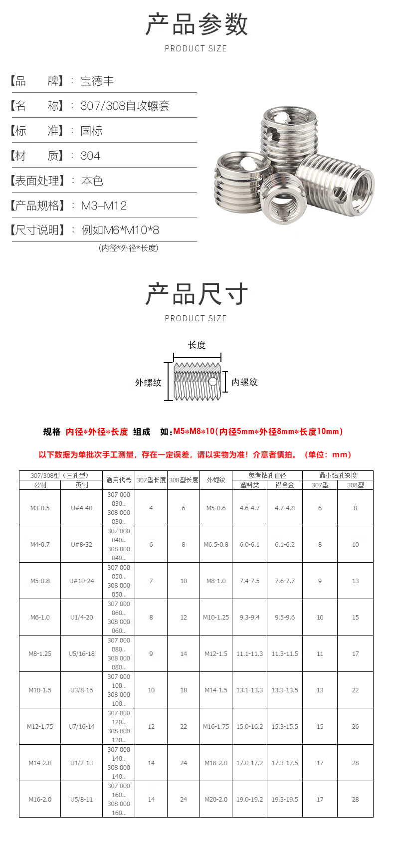 Baodefeng type 307/308 stainless steel self-tapping screw sleeve three-hole brace thread protective sleeve national standard fastener collection 307 type M6X10X8 2 pieces