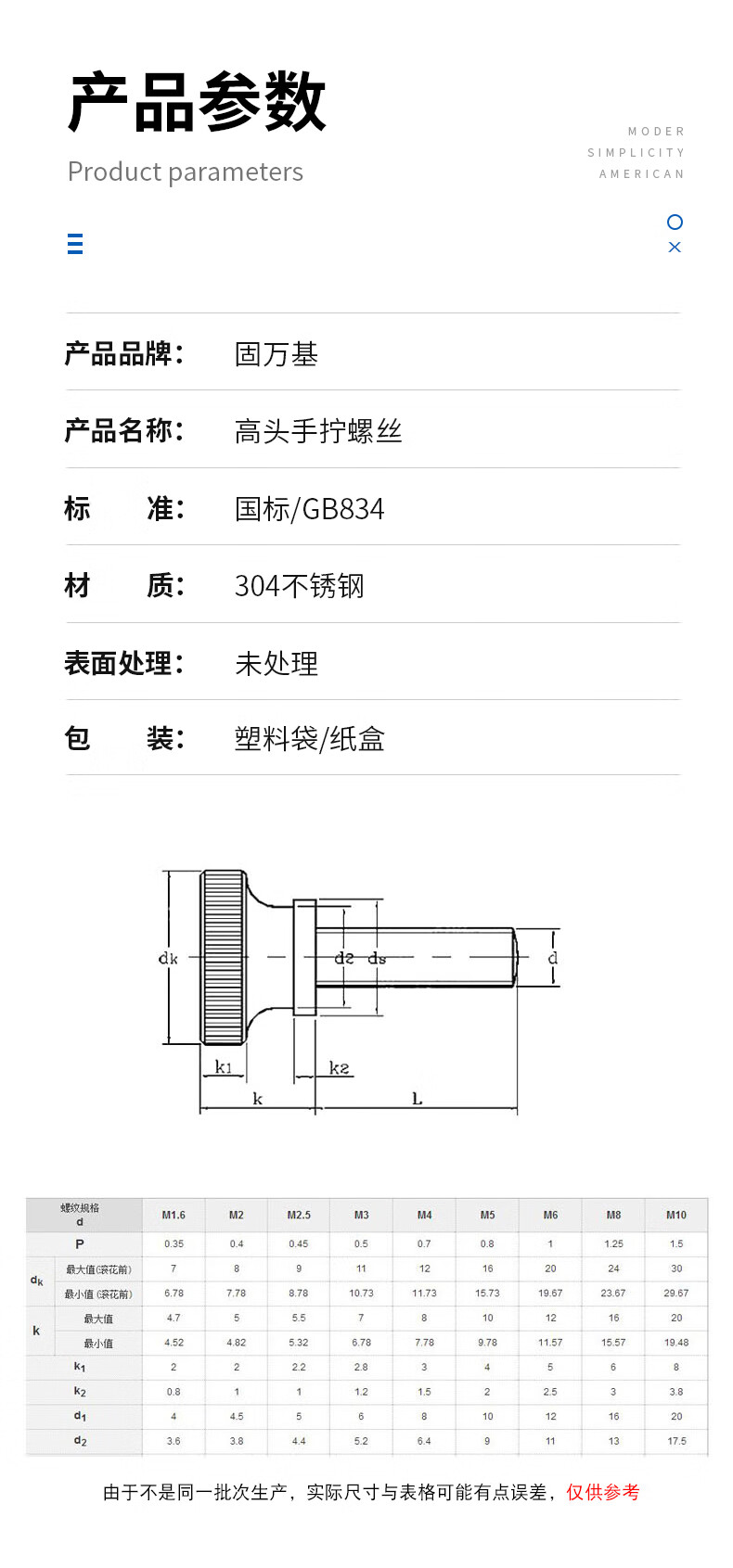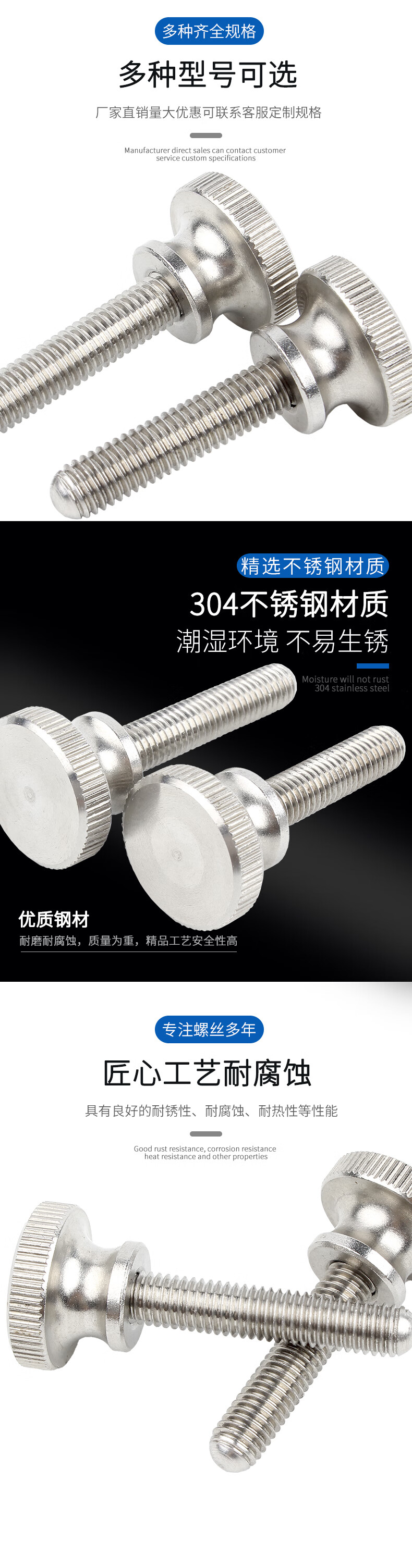 Guwanji 304 stainless steel high head knurled hand screw handle bolt GB834 hand twist handle screw large national standard M2.5x6 (5 pieces)