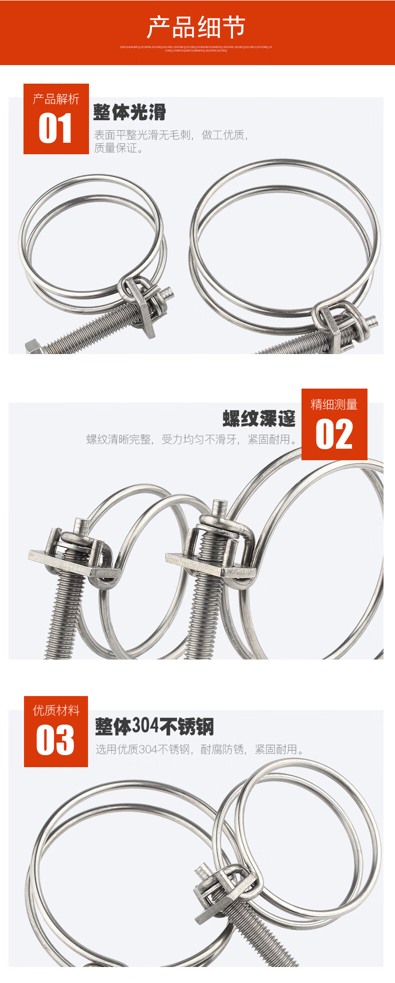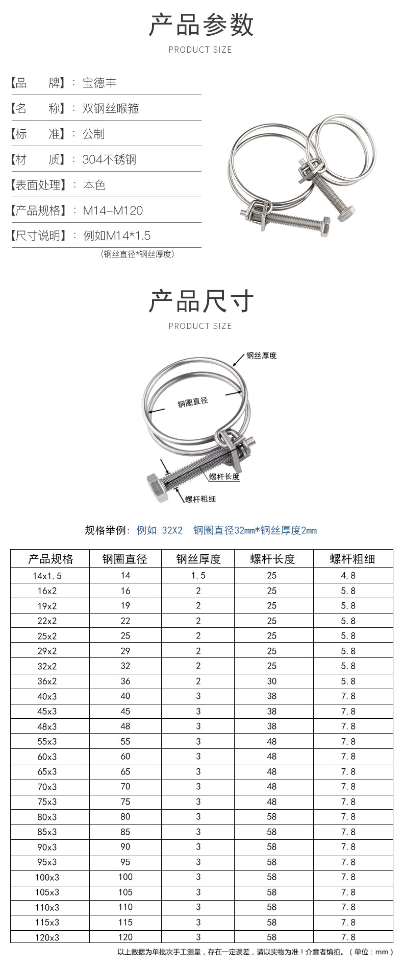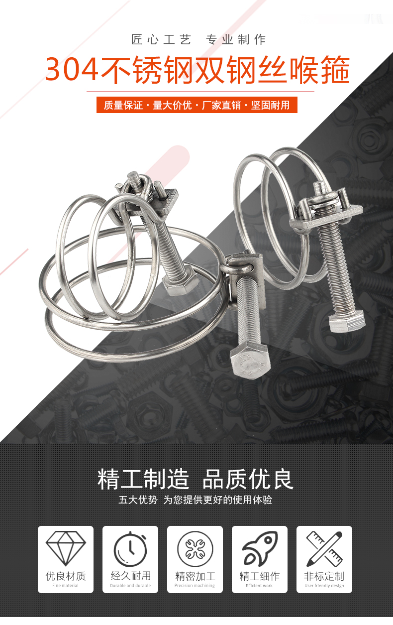 Baodefeng 304 stainless steel double steel wire hose hoop steel wire hoop clamp pipe clamp/pipe clamp water pipe gas pipe clamp hoop 304 material 25X2mm 2 pieces