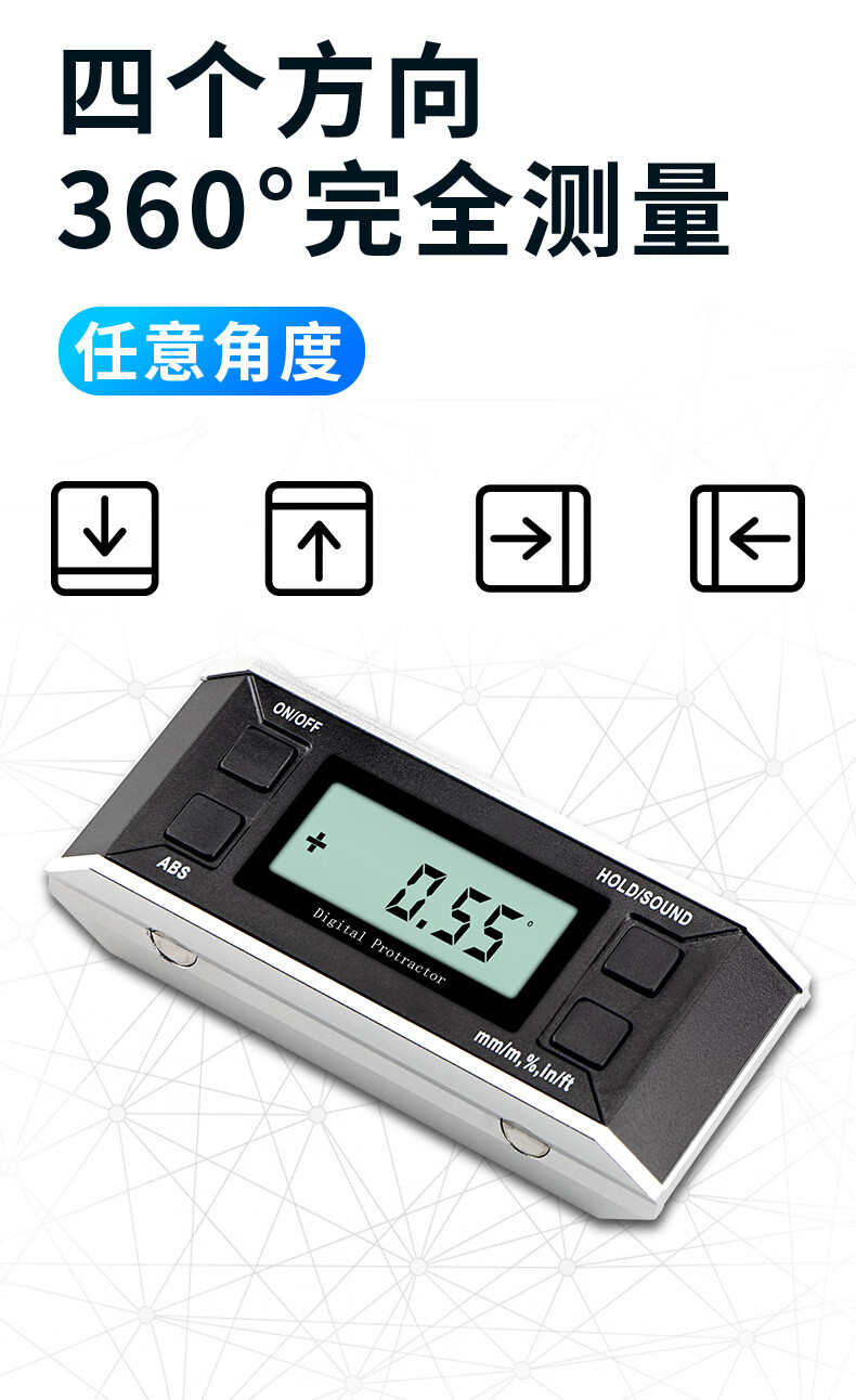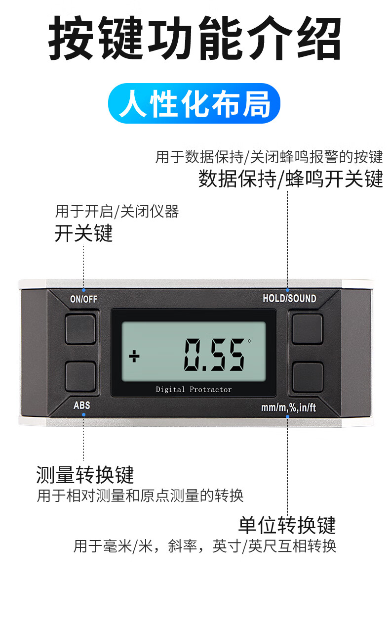 Weidu (WD) digital inclinometer, electronic level, angle leveler, level ruler, slope meter, inclination box, angle ruler with tape backlight